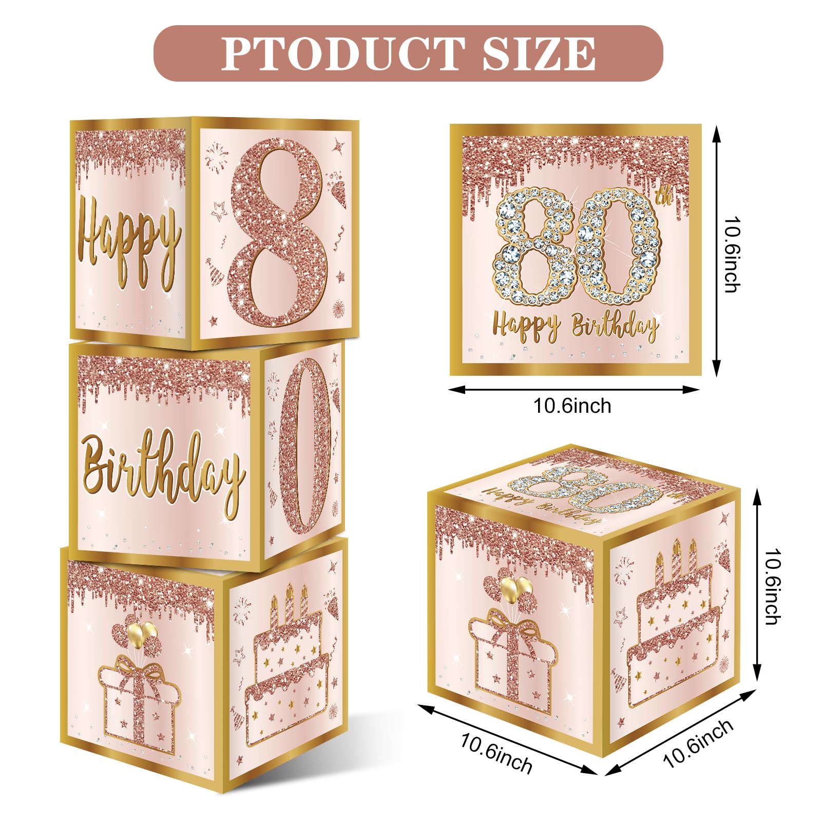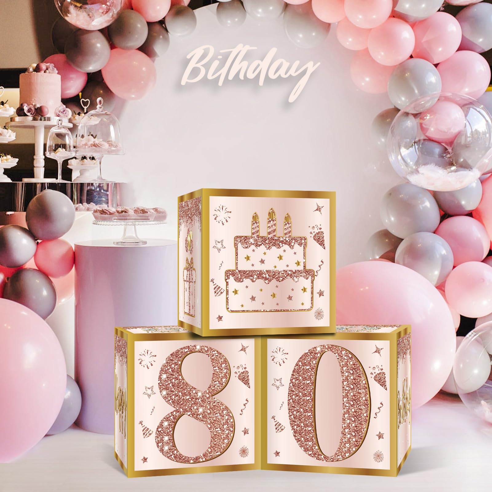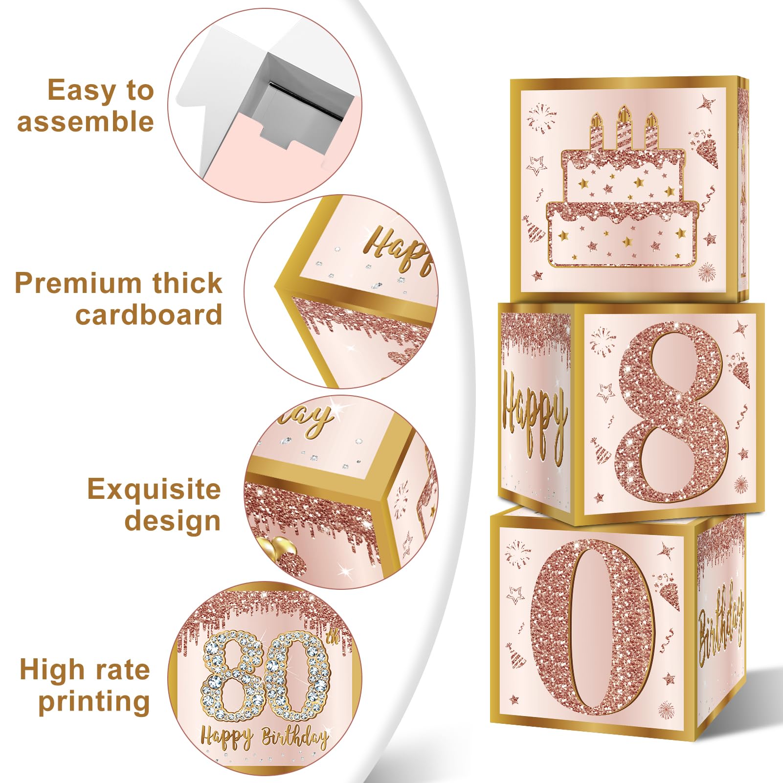 [You Will Get] -3 Pcs pink rose gold 80 birthday balloon boxes, 10.6 inches cube, enough to decorate your 80th birthday party, Make great memories for you and your family! (Note: This set does not include balloons)