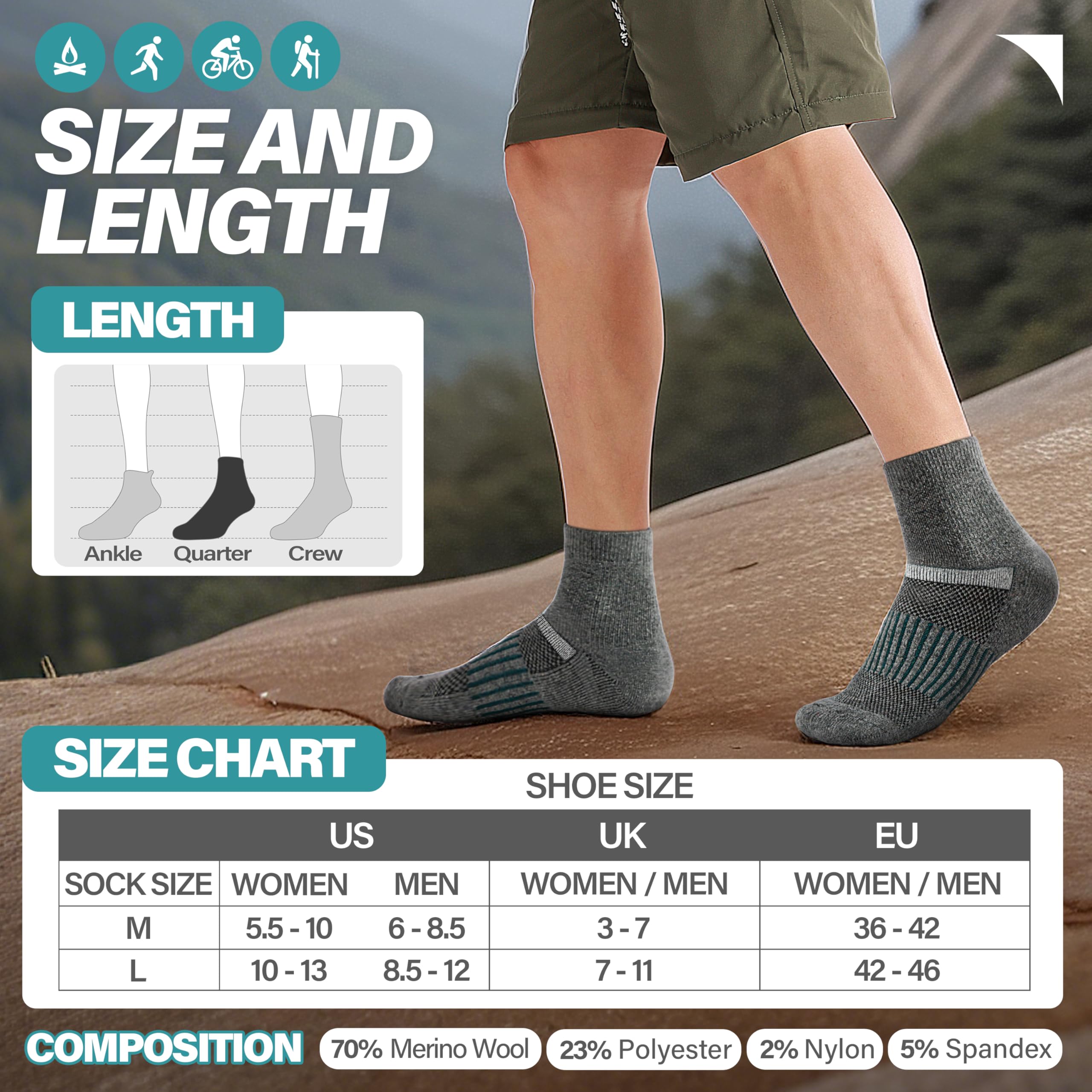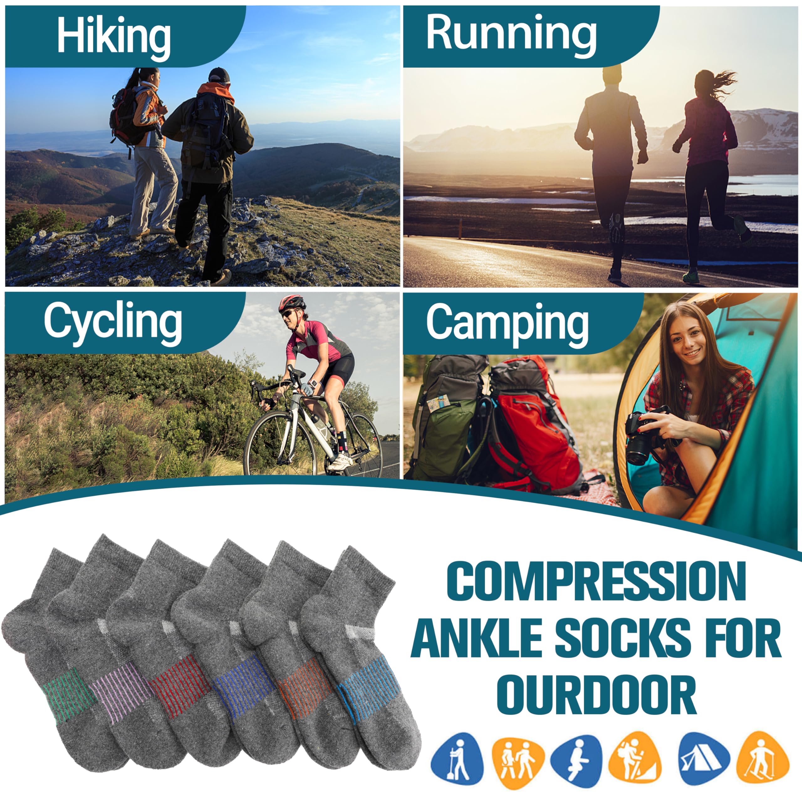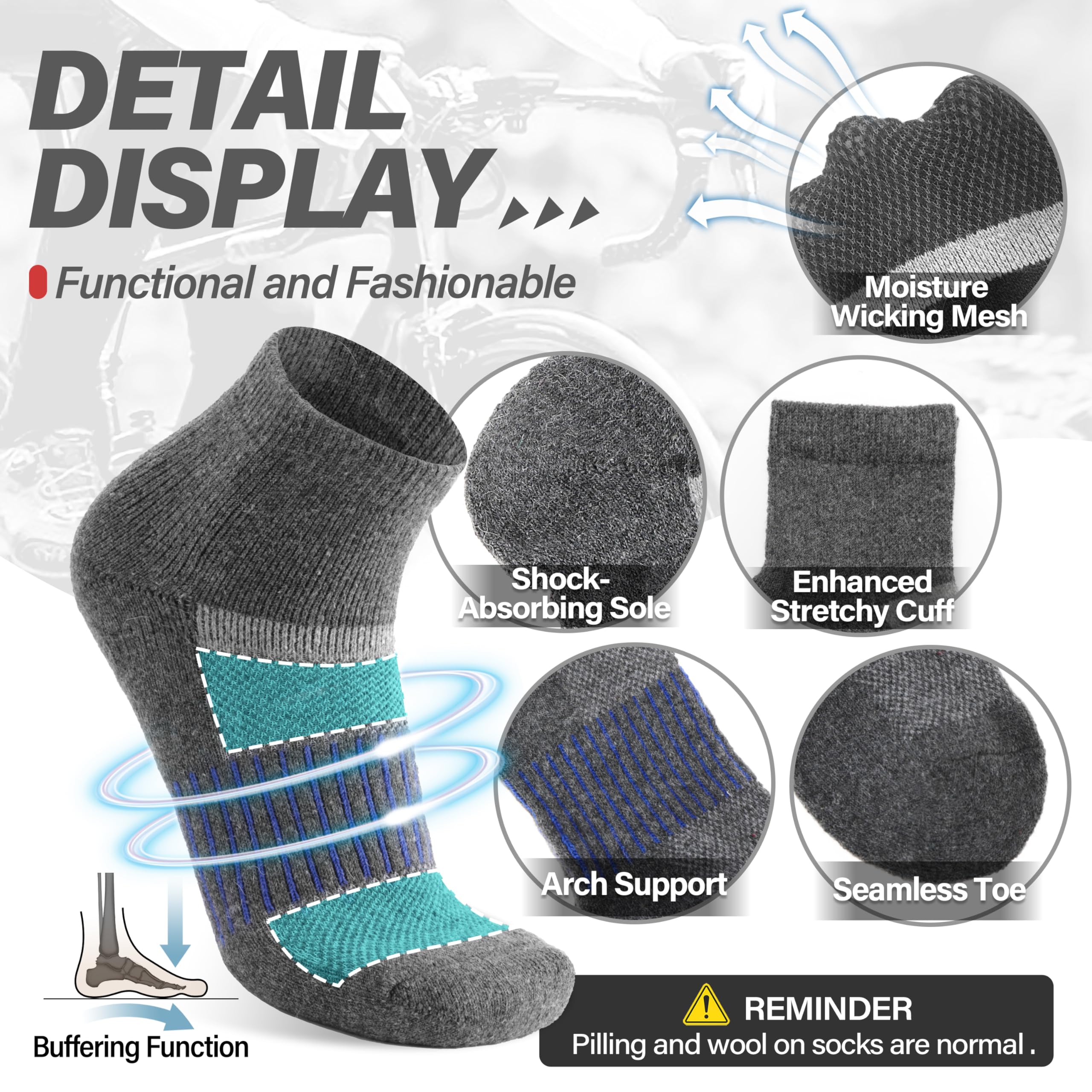 MOISTURE WICKING- By designing with ventilation mesh function, these wool hiking ankle socks are breathable and release heat, which keep feet dry quickly and have great help in odor repelling. They are suitable for hiking, running, outdoor walking , trekking or working.