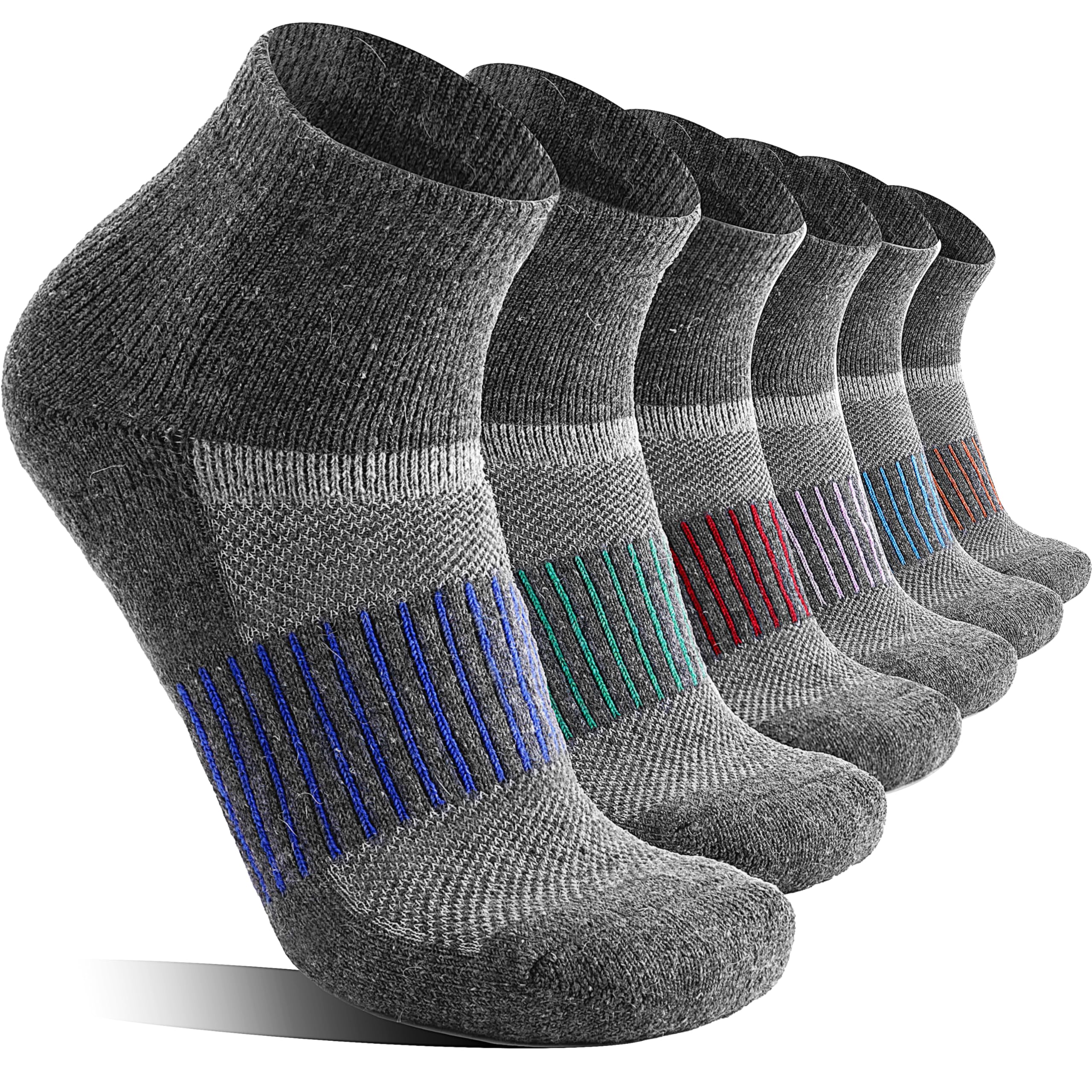 PROTECTION FOR FEET - These womens wool running ankle socks have stretchy cuff and arch support, which can have great compression support to reduce fatigue, protect the Achilles tendon, improve the blood circulation, and keep socks fit snugly. Cushioned sole absorbs shock and reduces risk of blistering. Pull tab resist abrasion and prevent slipping. All of these provide more protection for your feet.