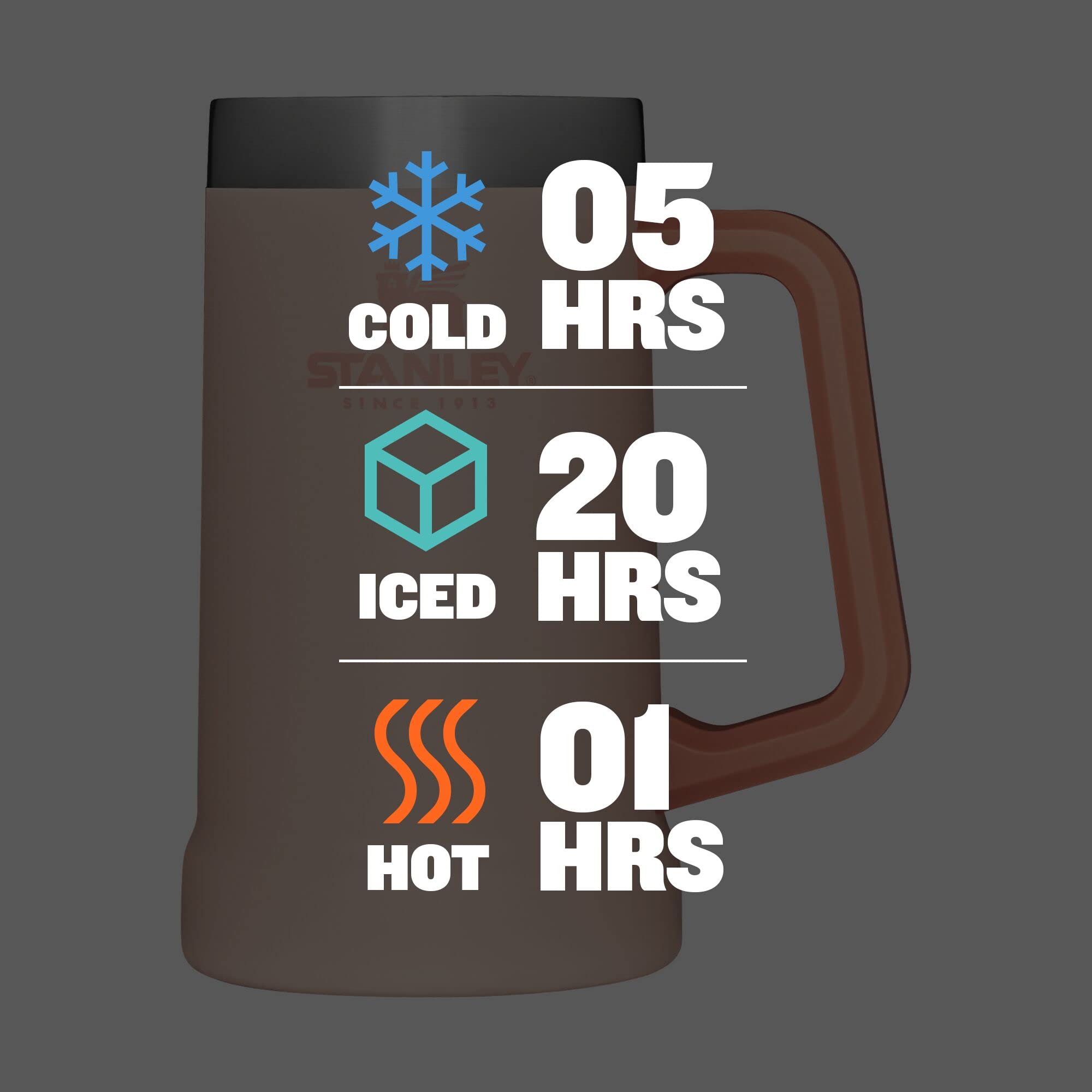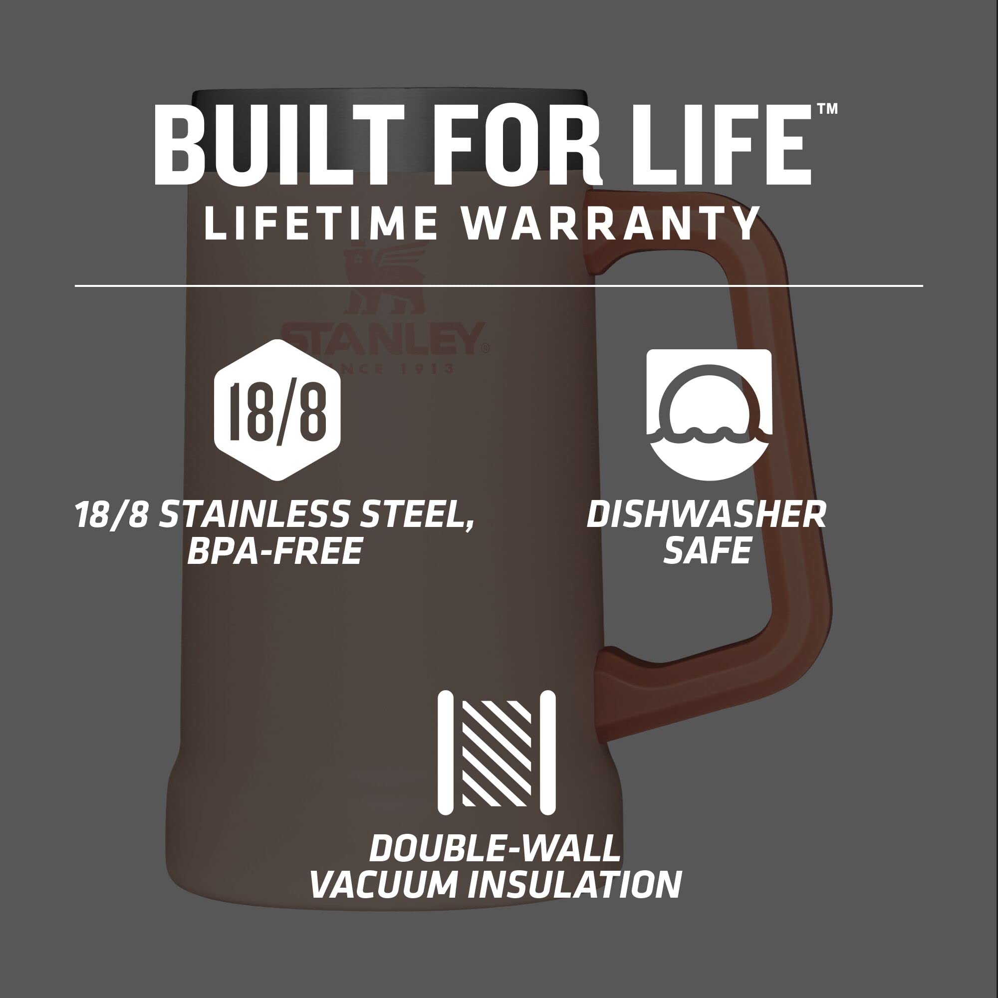 MEET THE RUGGED LEGEND: It’s the insulated beer stein that’s made its way into outdoor folklore. The beer stein cup that’s crossed paths with speeding bullets, category 5 hurricanes, and 4000ft drops and lived to drop jaws another day. It’s the Stanley Adventure Beer Stein! Made of 18/8 stainless steel and crafted to last a lifetime, this is more than just a mug – it’s a rugged heirloom. Whatever you throw at it, this legend will handle it