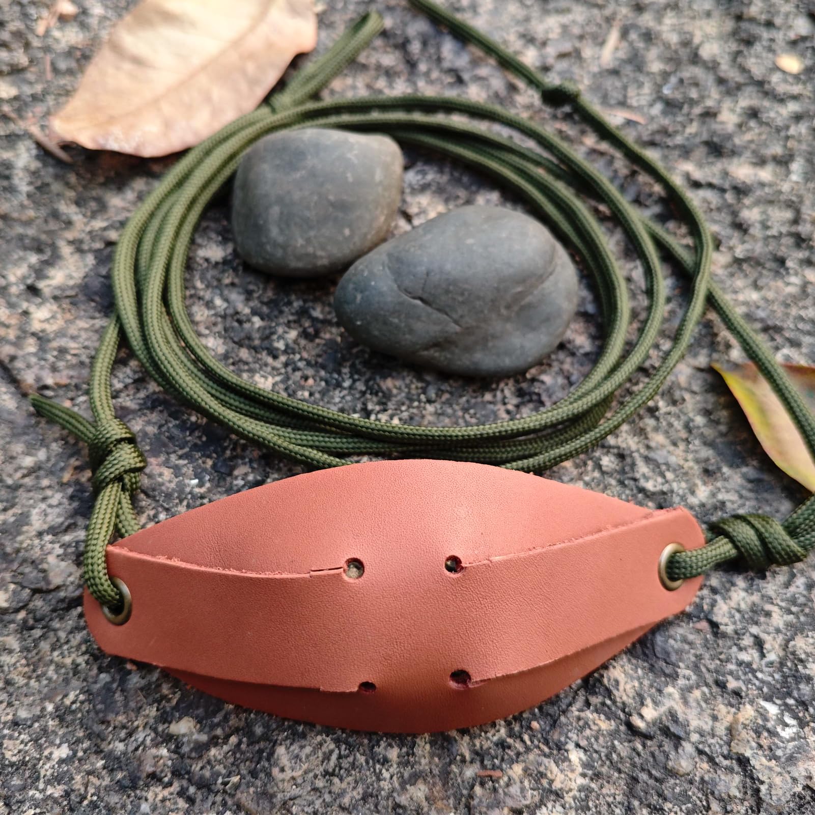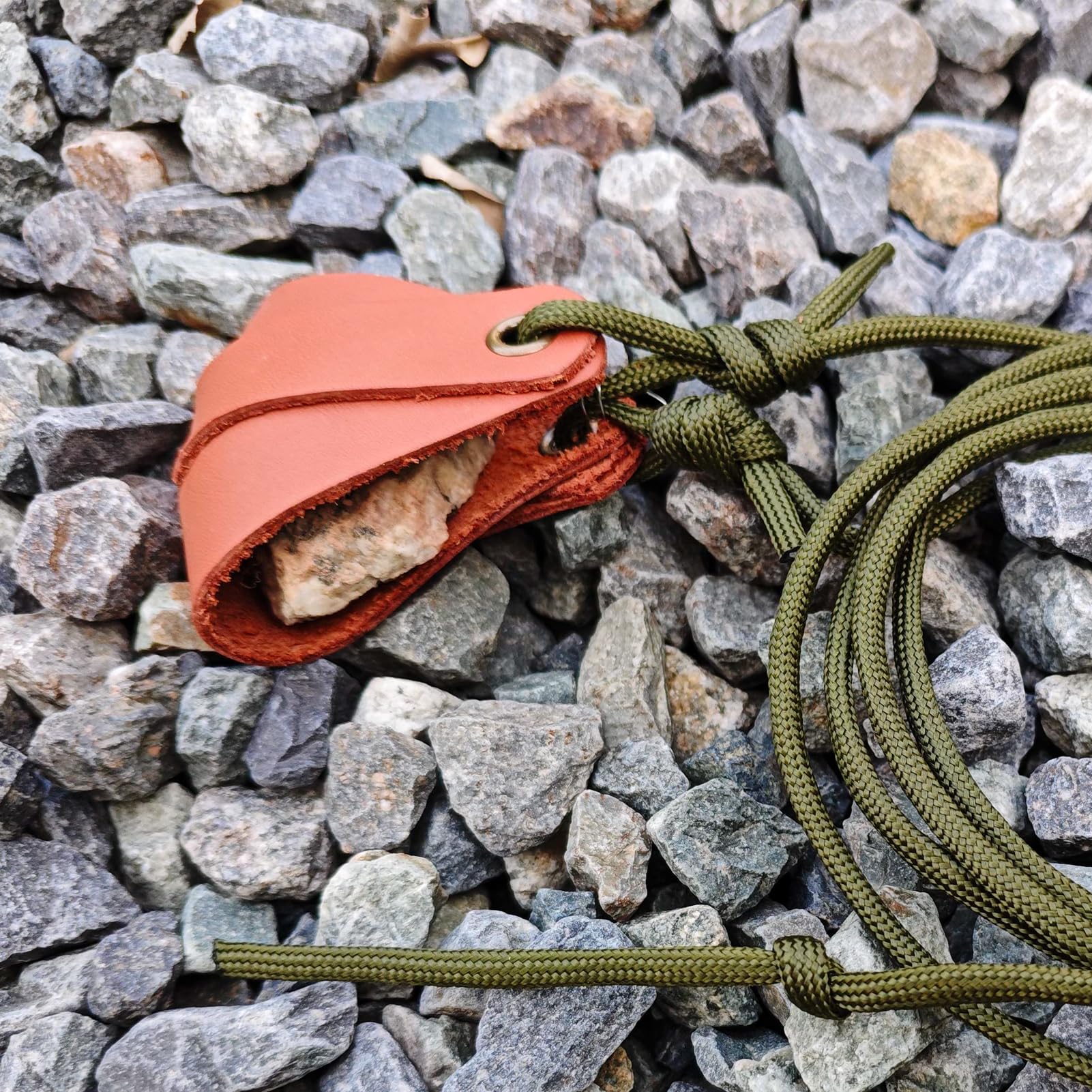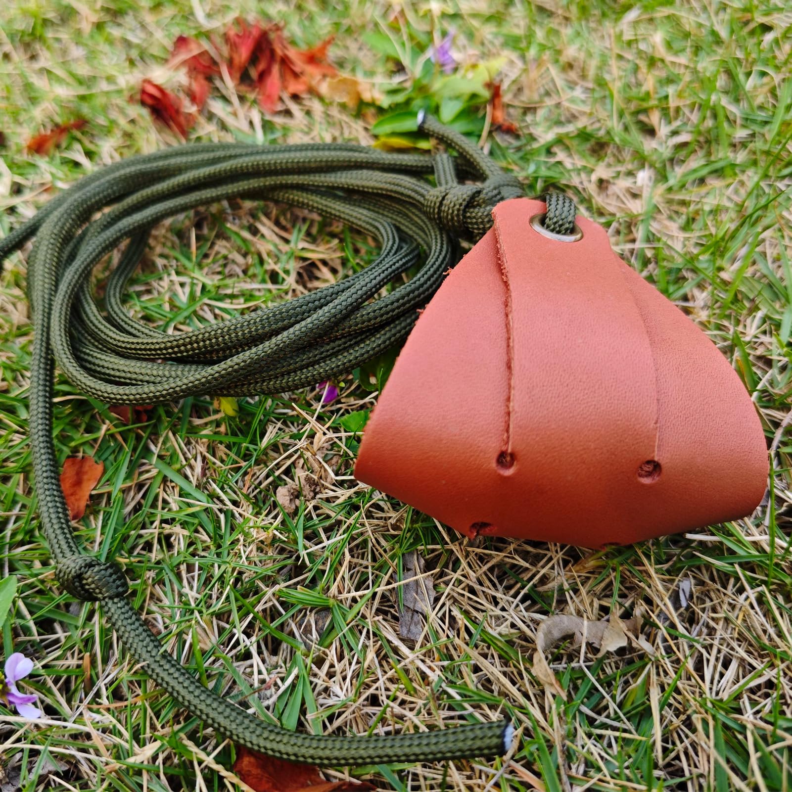 This shepherd sling combines low stretch, high strength paracord for enhanced throwing power