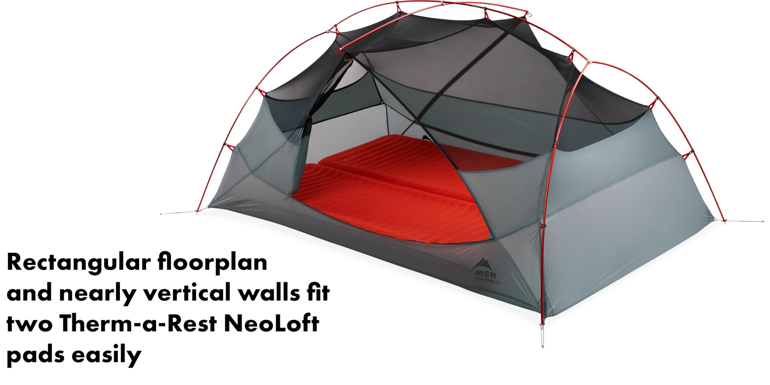 True rectangular floor plan and nearly vertical walls fit modern, thick rectangular sleeping pads with ease, even those over 4 inches thick