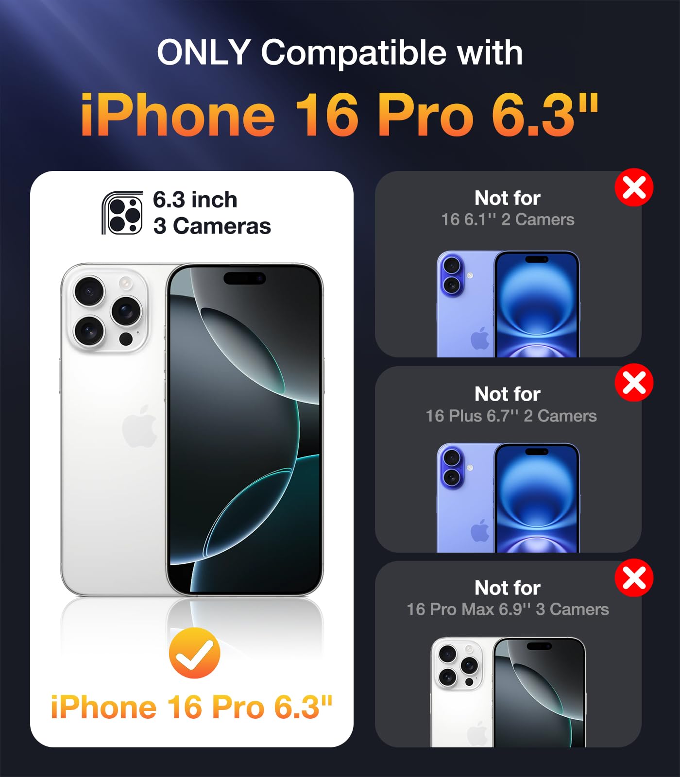 【Compatibility and Support】Compatible with iPhone 16 pro 6.3". If you have any questions about purchase, please feel free to contact us, we will bring you high quality after-sales service.