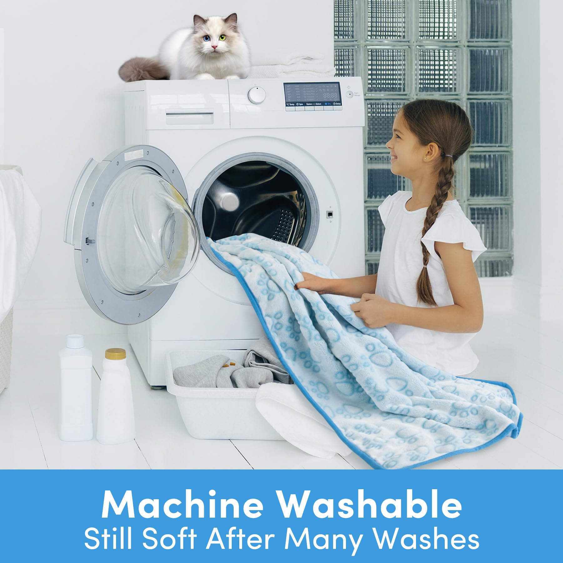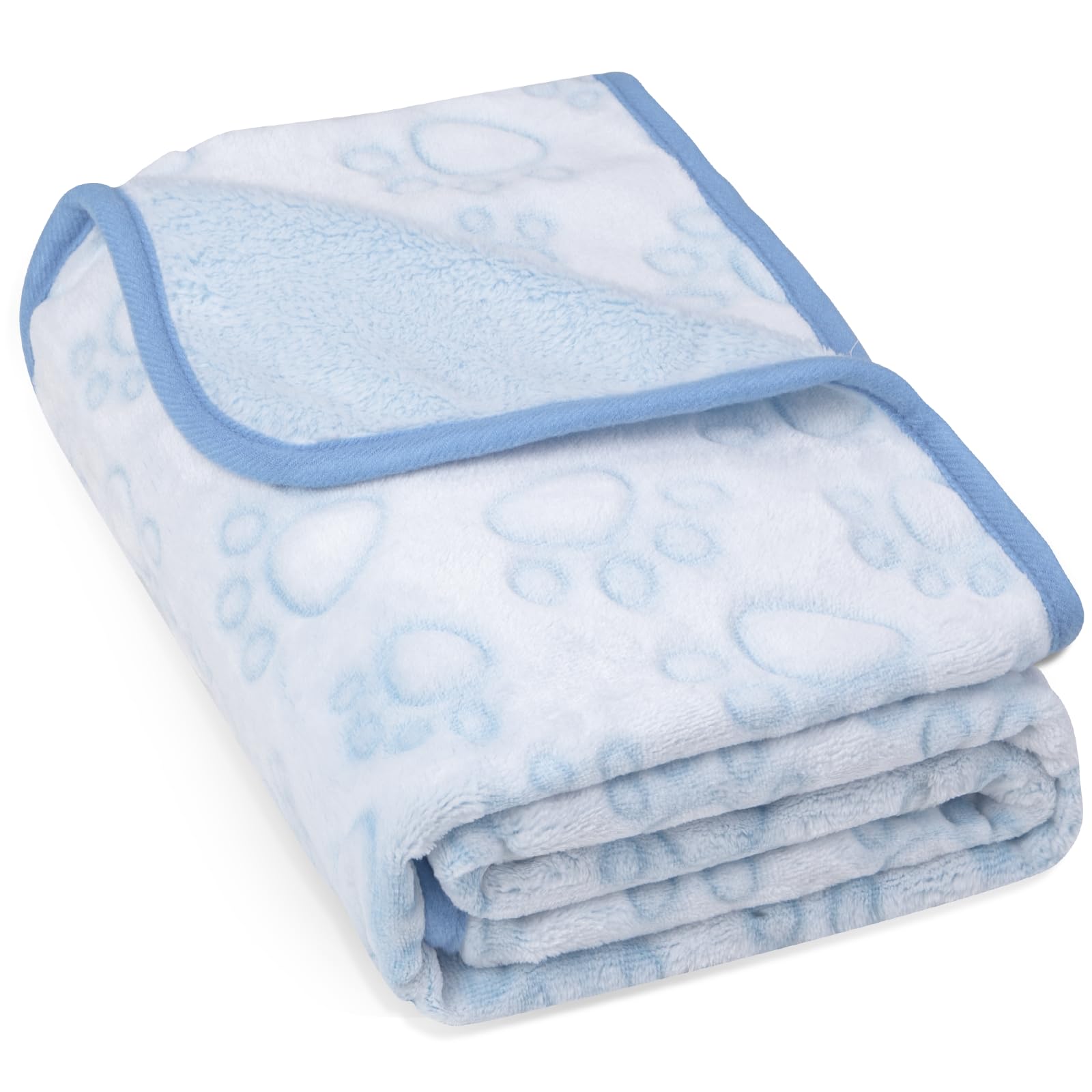 🥇PREMIUM MATERIAL FOR PETS ONLY: Super Soft & Warm comfy fleece for your pets, exclusive cute paw prints design on the top, lovely solid blue color on the back, no fear of peeing, bitting, chewing and tearing. Your dog will love this dog products!