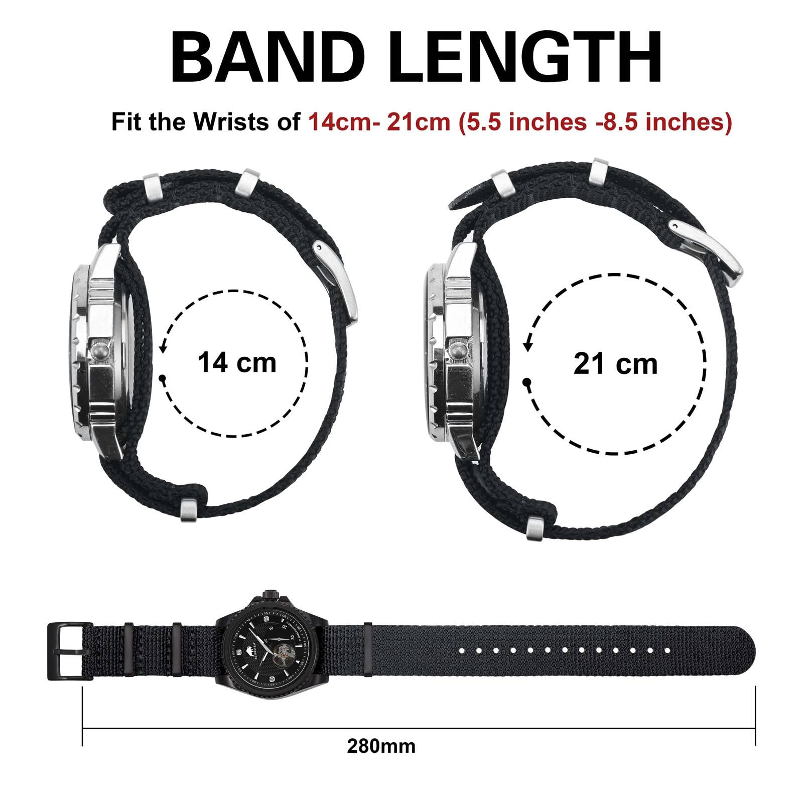 Band Length: The watch strap has a total length of 280mm and is suitable for a wrist range of 14cm-21cm (5.5 inches -8.5 inches)
