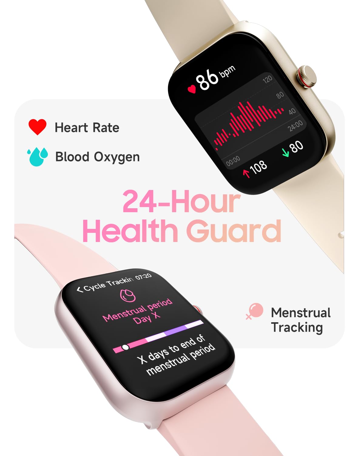 Crystal-Clear Visuals & Customizable: Immerse yourself in vivid visuals on the 1.91" HD screen. Choose from over 100 watch faces on the VeryFit app or personalize your watch with your own images. Show off your unique style and personality with a smart watch women that feels truly yours.