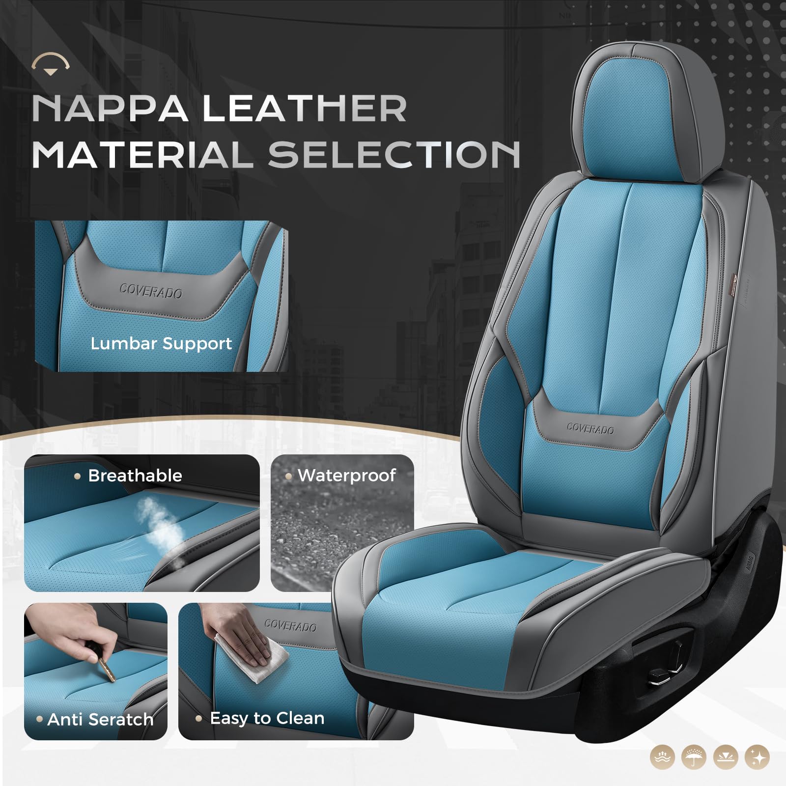 LUXURY DESIGN - Car seat protector is designed by 3D modeling, the seat covers with lumbar support are stylish and modern that adding a touch of fashion and luxury to your car interior. With high-quality NAPPA Leather, the covers will enhance your sense of touch