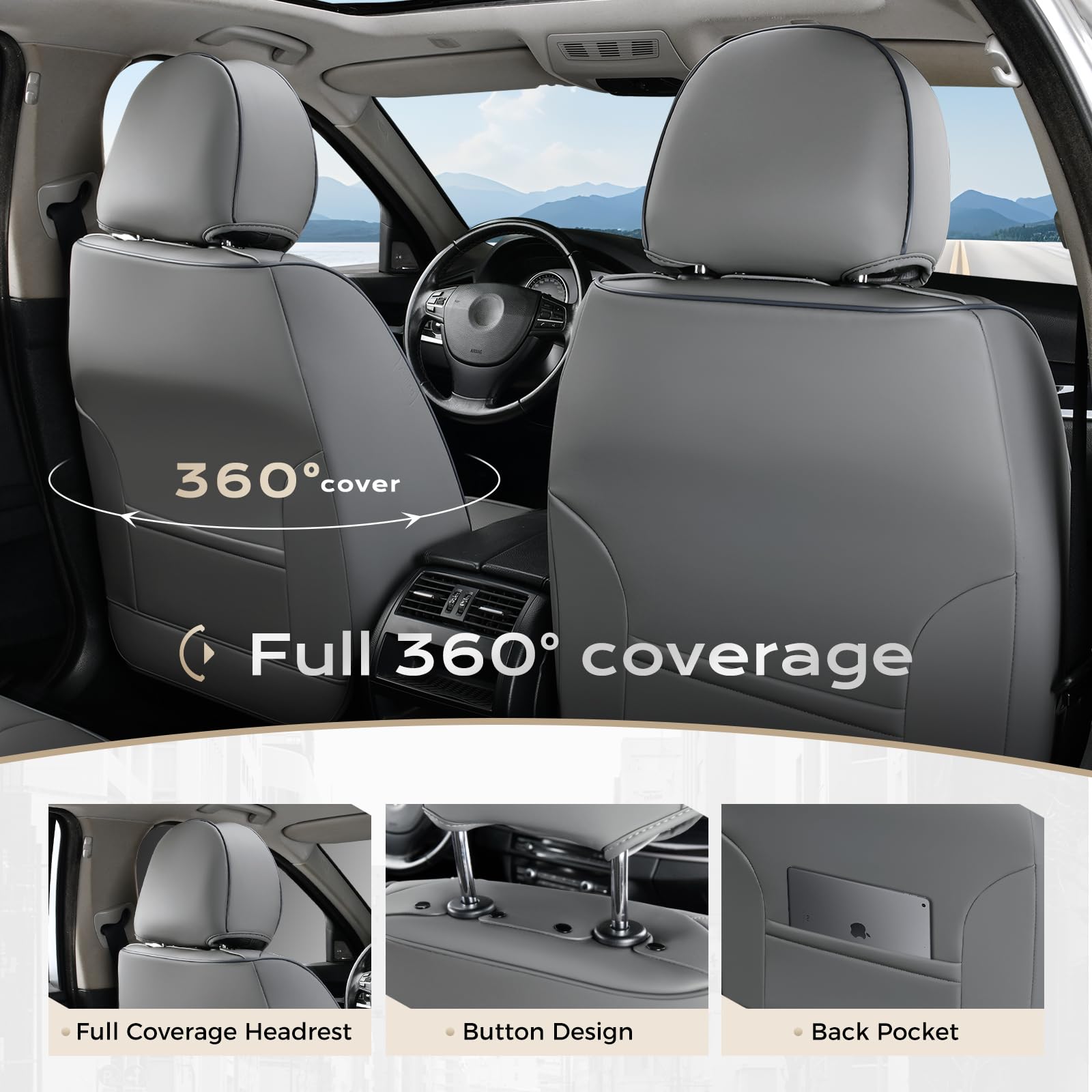 MAINTAIN FUNCTIONALITY - The waterproof seat covers are engineered around the car, keeping the seat's full function and control, such as airbag, seatbelts, armrests and seat adjustments. Separate headrest covers allow easy headrest adjustment for optimal comfort and safety