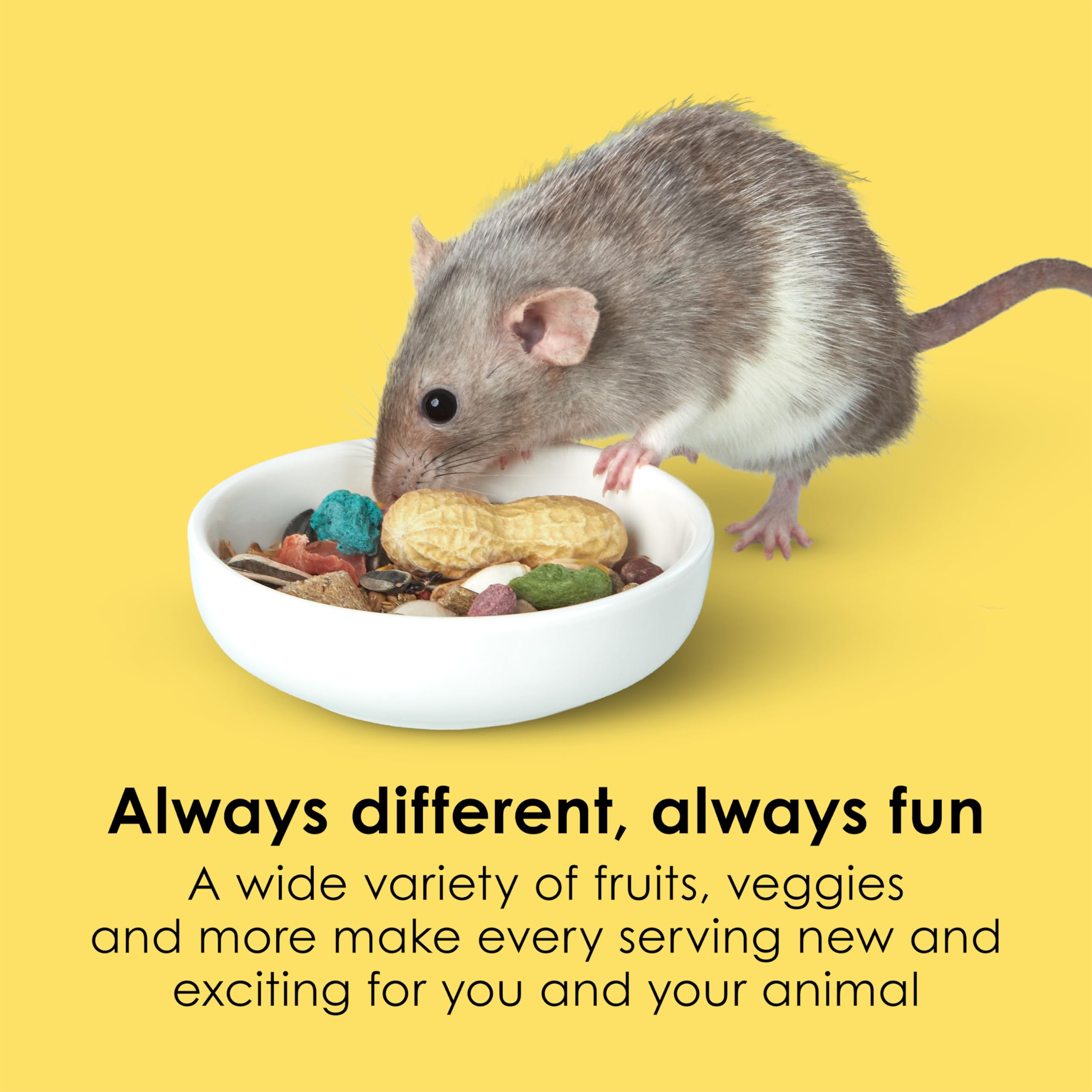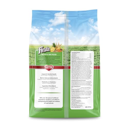 It’s a party at feeding time with Kaytee Fiesta! Kaytee Fiesta Mouse & Rat Food is a fun-filled, complete diet your animal will love, all while getting the nutrition they need to thrive. Filled with an exciting variety of ingredients, shapes and textures, this mouse and rat food blend engages your animal at feeding time and stimulates their natural foraging instincts. Kaytee Fiesta Mouse & Rat Food was formulated by small animal nutritionists so that your animal is getting necessary nutrition in every bite. This is a nutritionally fortified gourmet diet made of a premium blend of fruits, vegetables, seeds and grains offering maximum variety and stimulation for your mouse and rat. The textural variety keeps every bite interesting while supporting their dental health through chewing. While they’re loving their meal, you’ll love watching them work through the party of ingredients, shapes and surprises. This blend provides your pet with natural antioxidants for their overall health and immune support as well as prebiotics and probiotics to help with their digestive health. Sharing your life with a pet is more than just enjoyable, it’s enriching – and Kaytee believes feeding time can be the same. With over 150 years of nutritional experience, it’s no wonder why Kaytee is at the heart of every healthy feeding routine.