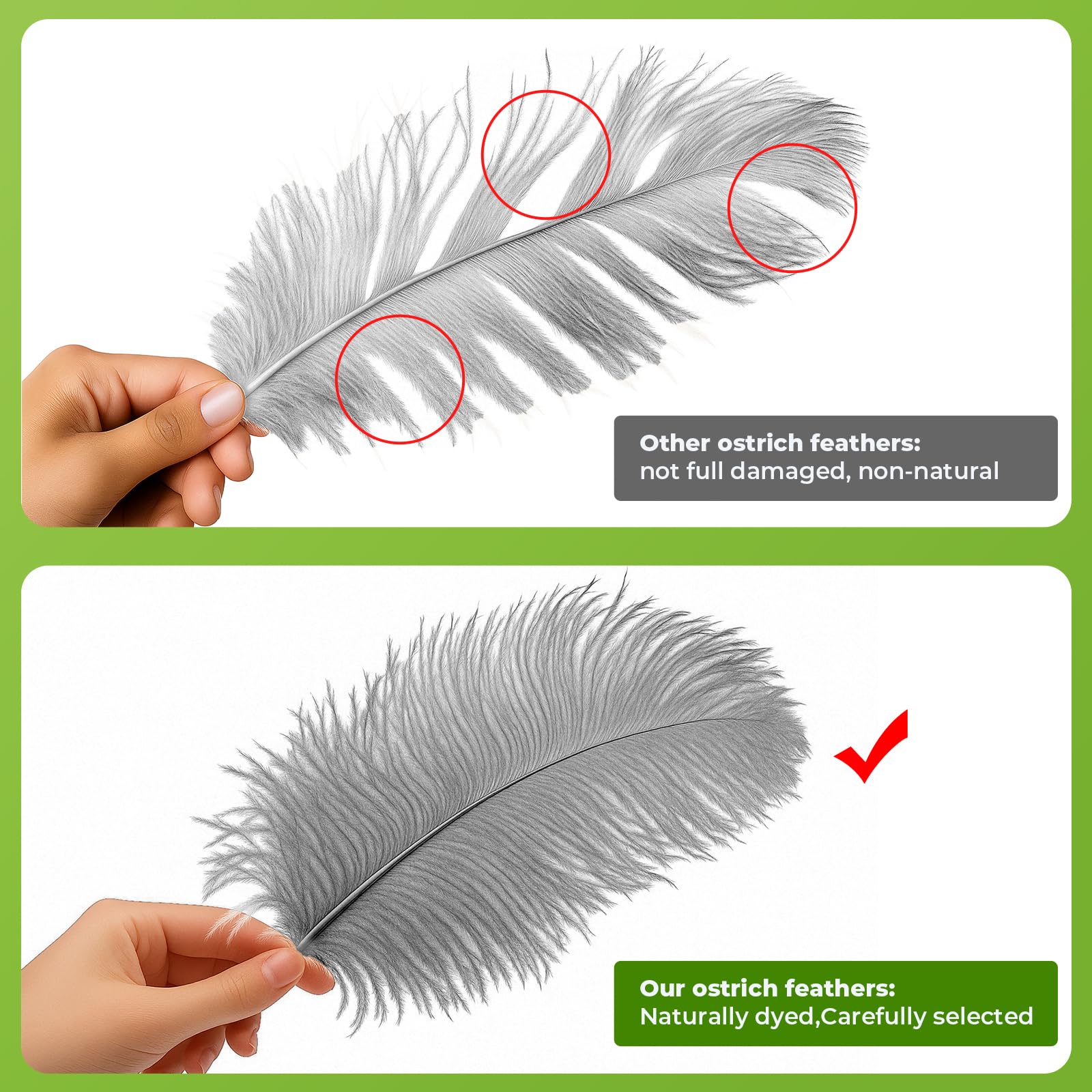 ❤Cruelty-Free Feathers: 100% genuine natural Ostrich Feathers Plumes. All the feathers lost naturally. No plucking needed and no ostriches were harmed.