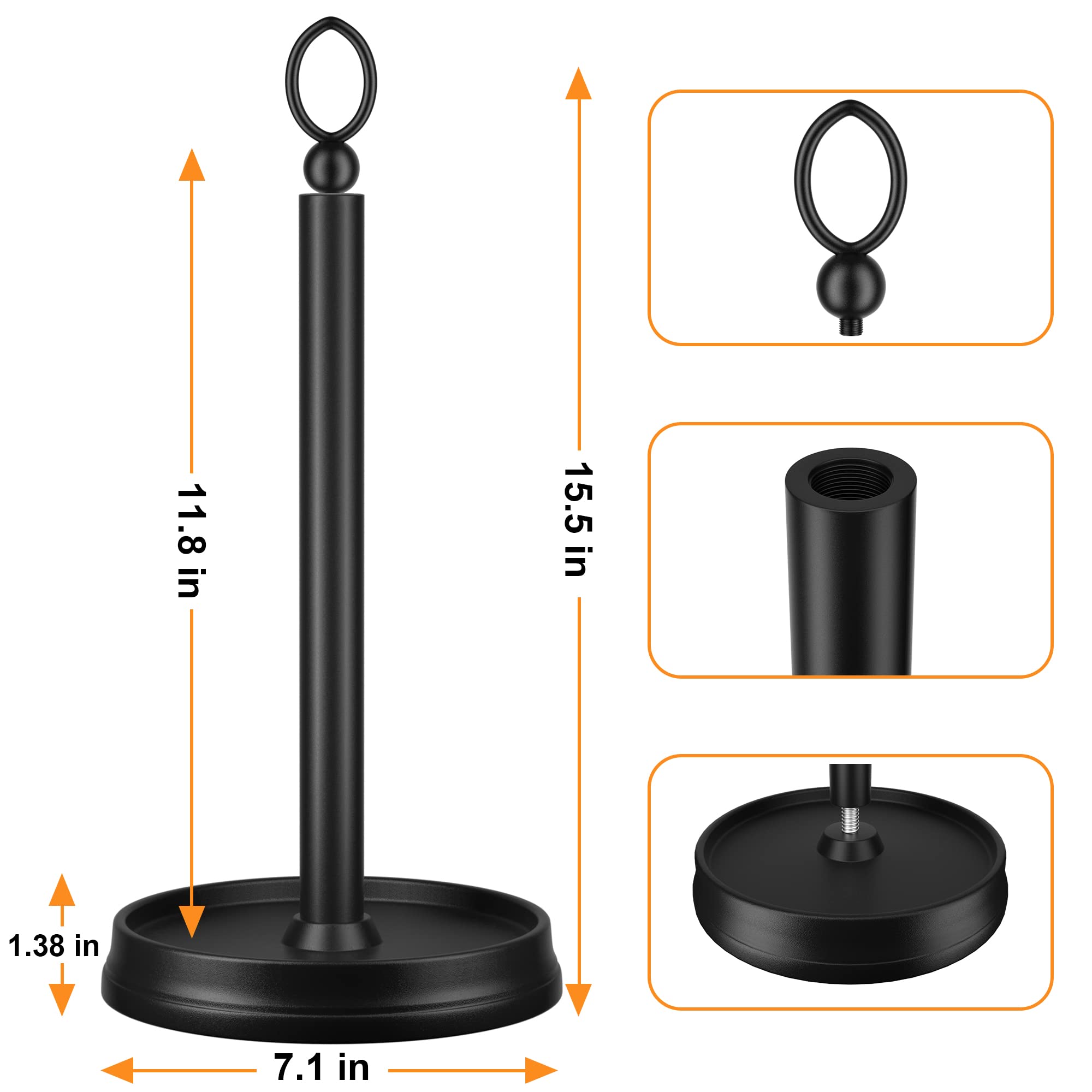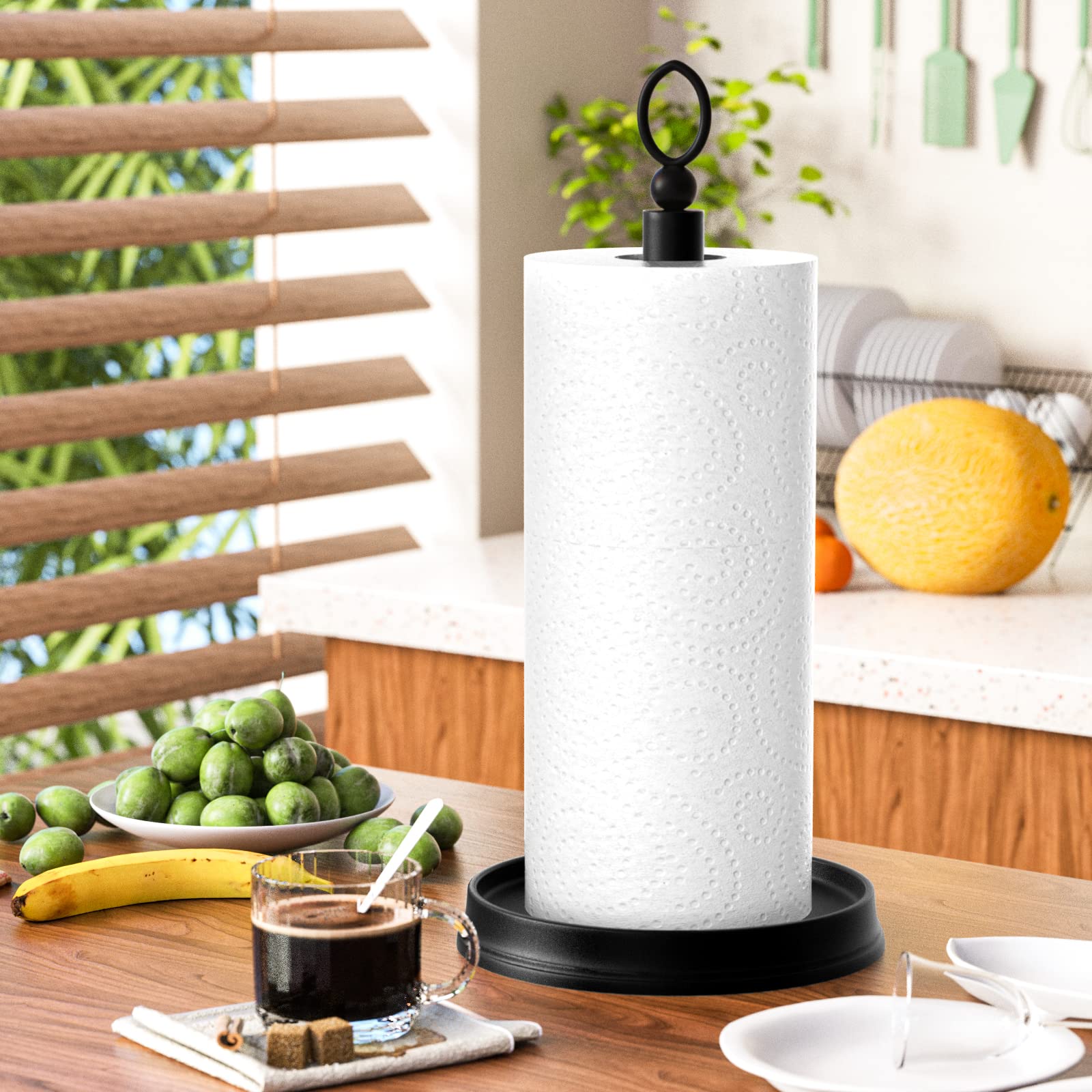 Space Saving: Measuring 7.1" x 7.1" x 15.5", this compact paper towel holder fits any kitchen or dining table. The circular base is stable, making it easy to grab paper towels without drilling