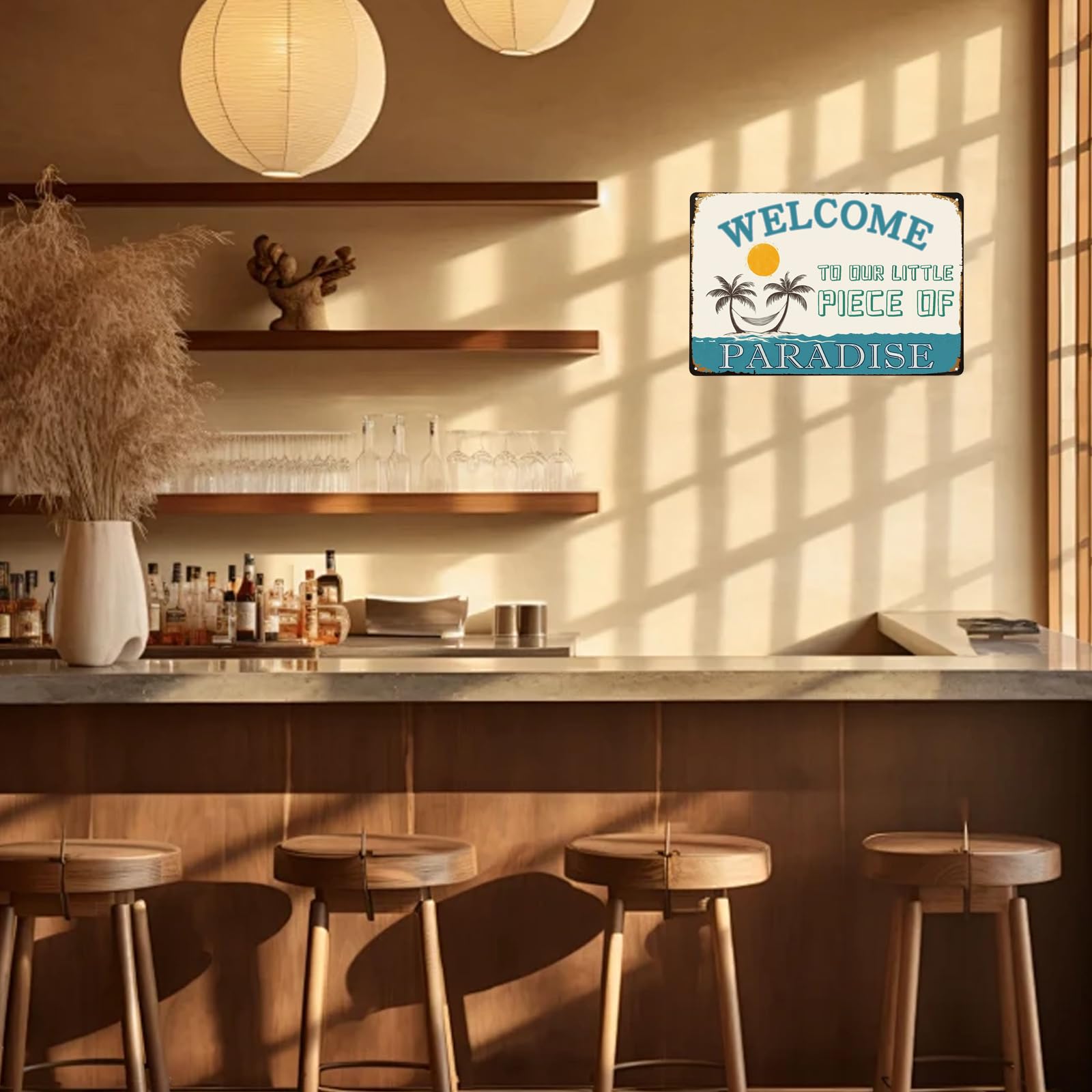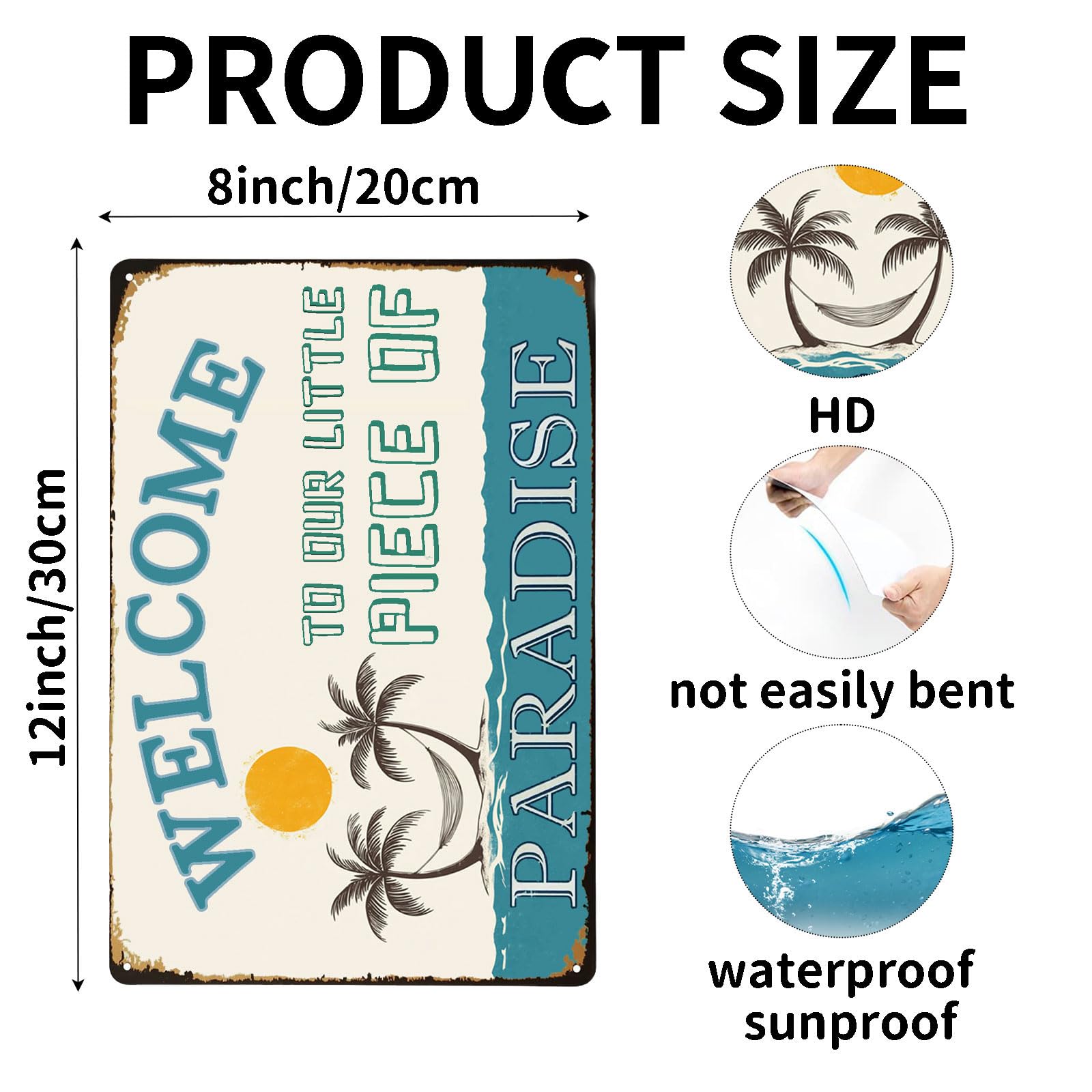 Funny Sign: vintage tin signs with a funny phrase: ‘Welcome To Our Little Piece of Paradise’, the language is simple and humorous, every time you see it can make you smile, not only suitable for you to decorate your own space, but also suitable to give to friends who like humour