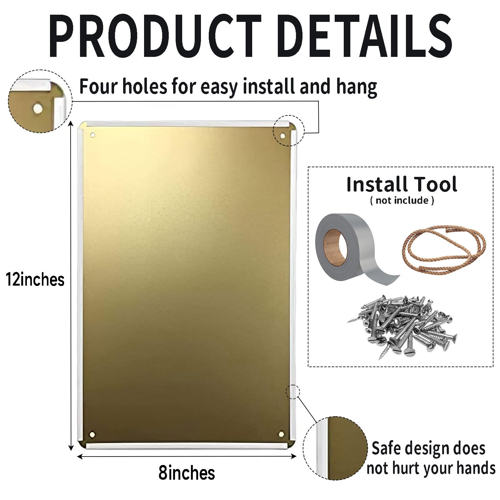 Easy installation: Our sign is 12×8 inches, we are pre-drilled four holes in tin sign, can used nails, screws, and tape installation and mount, the retro signs rolled edge design is safe and doesn't hurt your hands