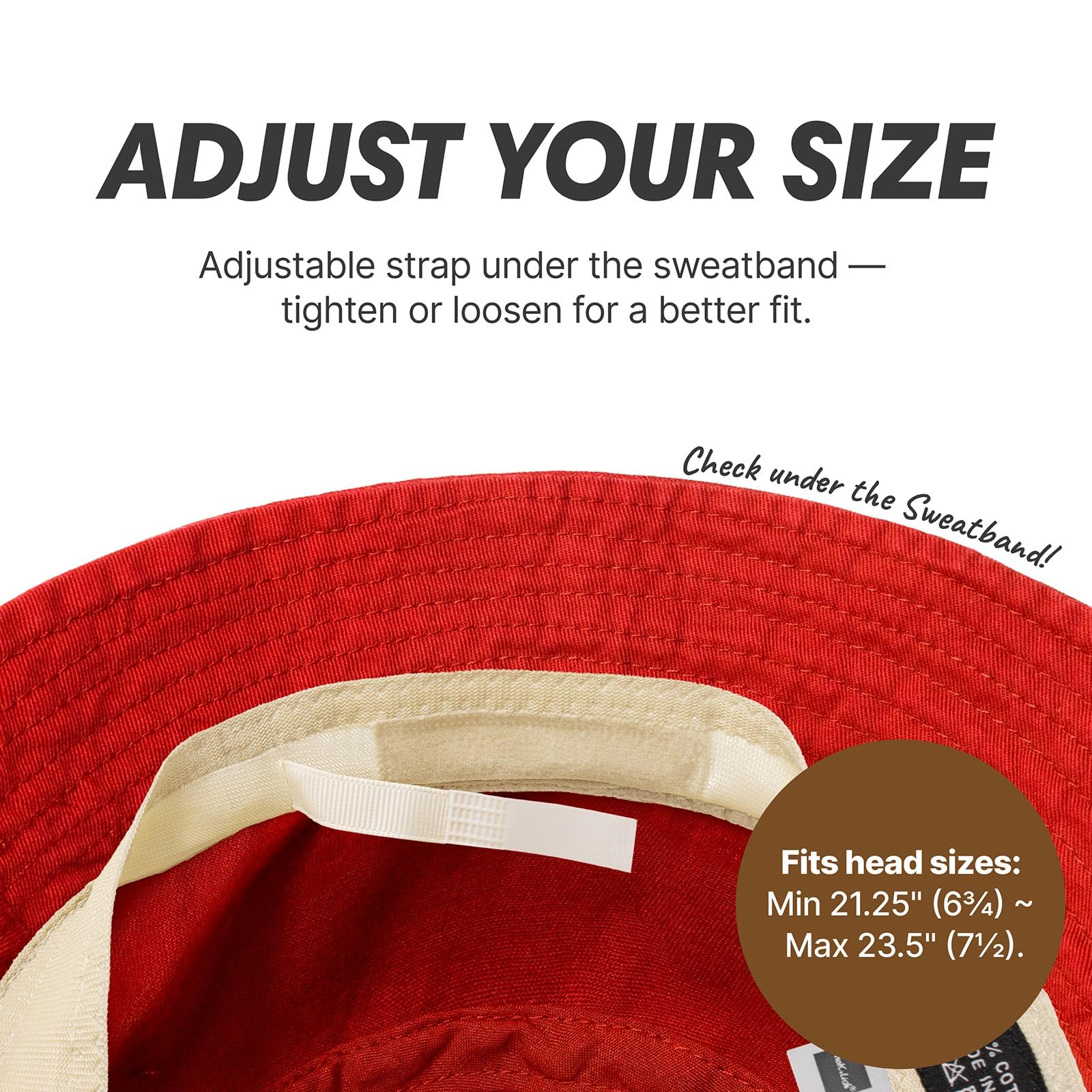 [ADJUSTABLE COMFORT] – Hidden inside the sweatband is a clever hook-and-loop strap that lets you tighten or loosen the fit. Whether you're heading to the beach or the city, enjoy a hat that moves with you and never feels off-size.