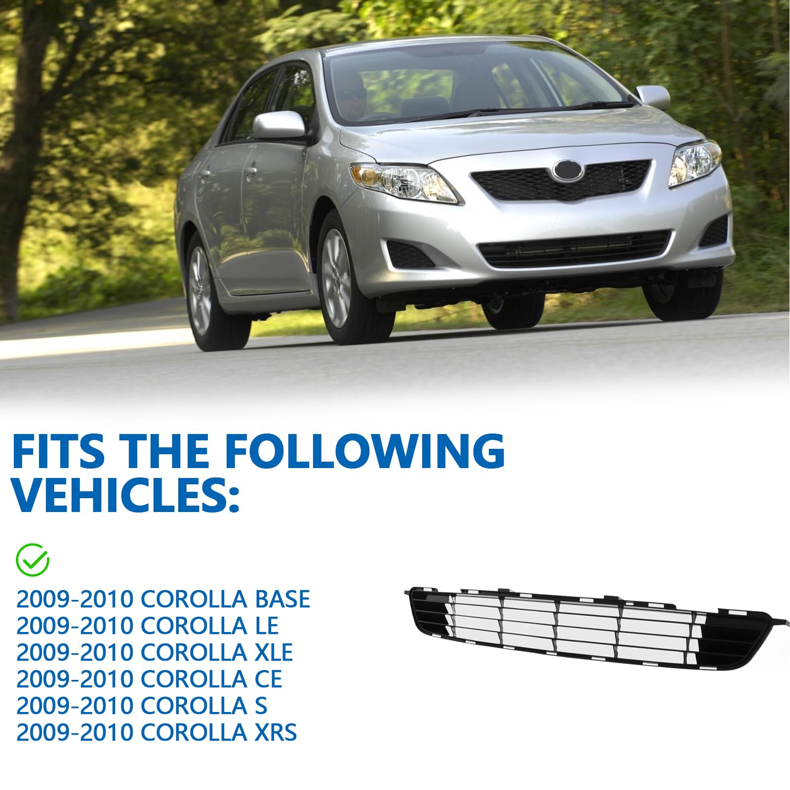 Fitment : Compatible With 2009 2010 TOYOTA Corolla CE/LE/S/XLE/XRS Front Bumper Lower Grille