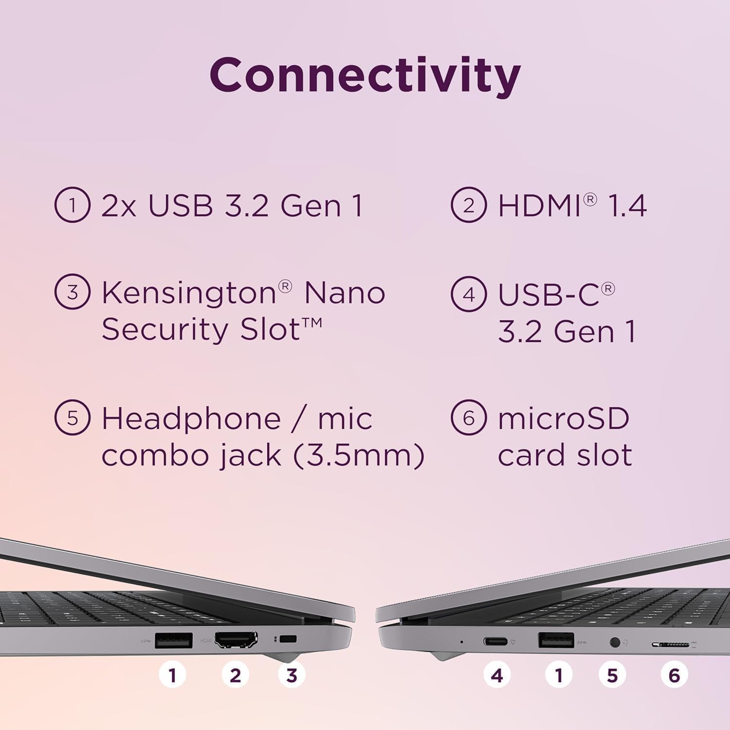 VERSATILE CONNECTIVITY - USB-C 3.2 Gen 1, 2x USB 3.2 Gen 1, HDMI, microSD card reader, Headphone / microphone combo jack, Kensington Nano Security Slot; Wi-Fi 6, 802.11ax 2x2 + Bluetooth 5.2; Super long battery life, up to 10 hours.