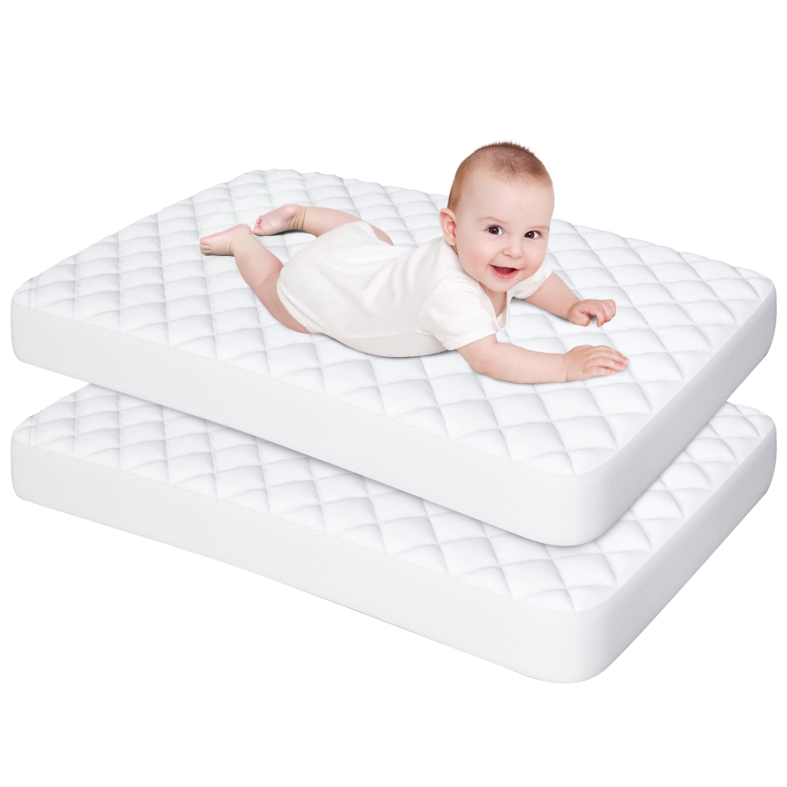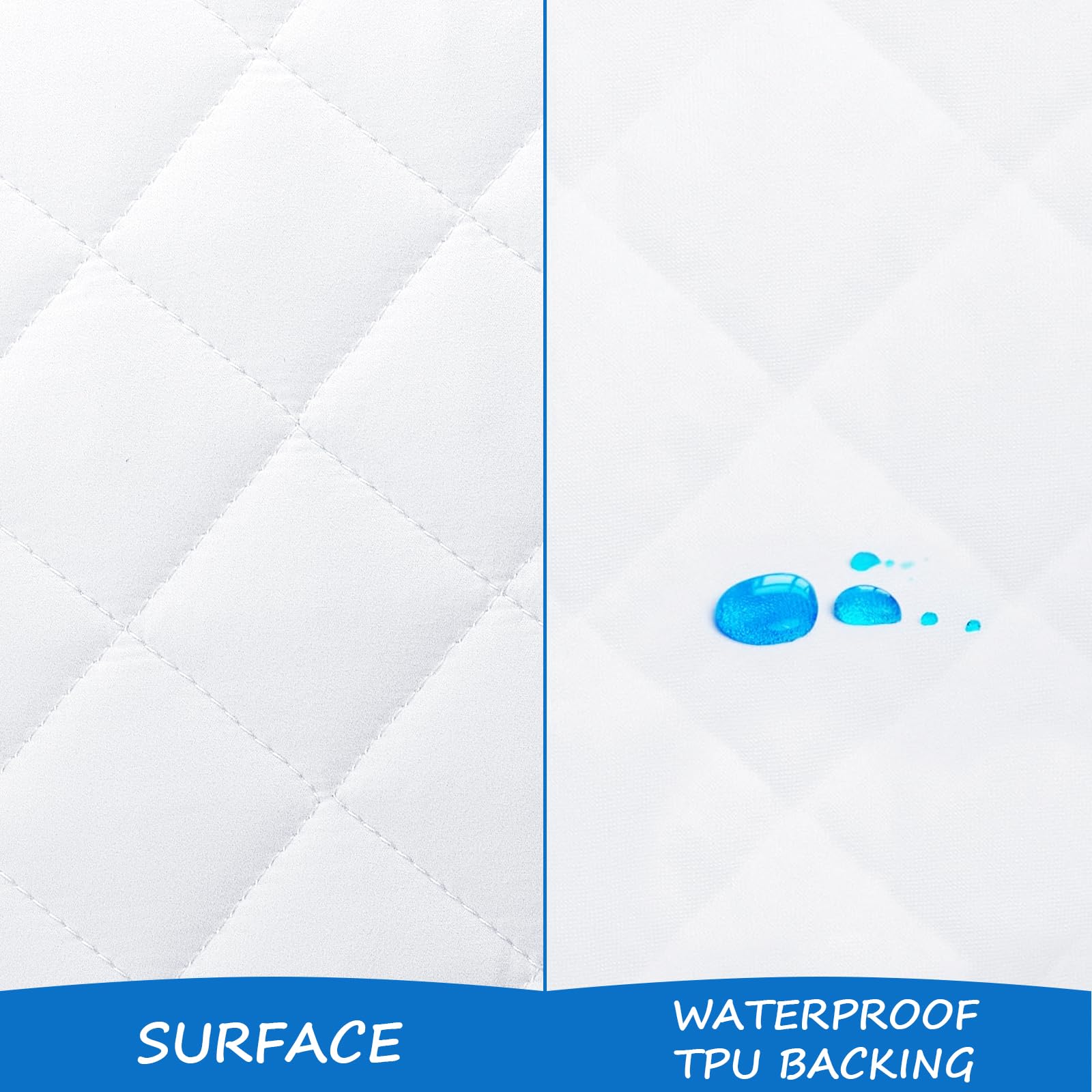 2 Pack. Ultra Soft Microfiber Surface, Waterproof Tpu Layer, Quilted and Absorbent Fiber Filling.