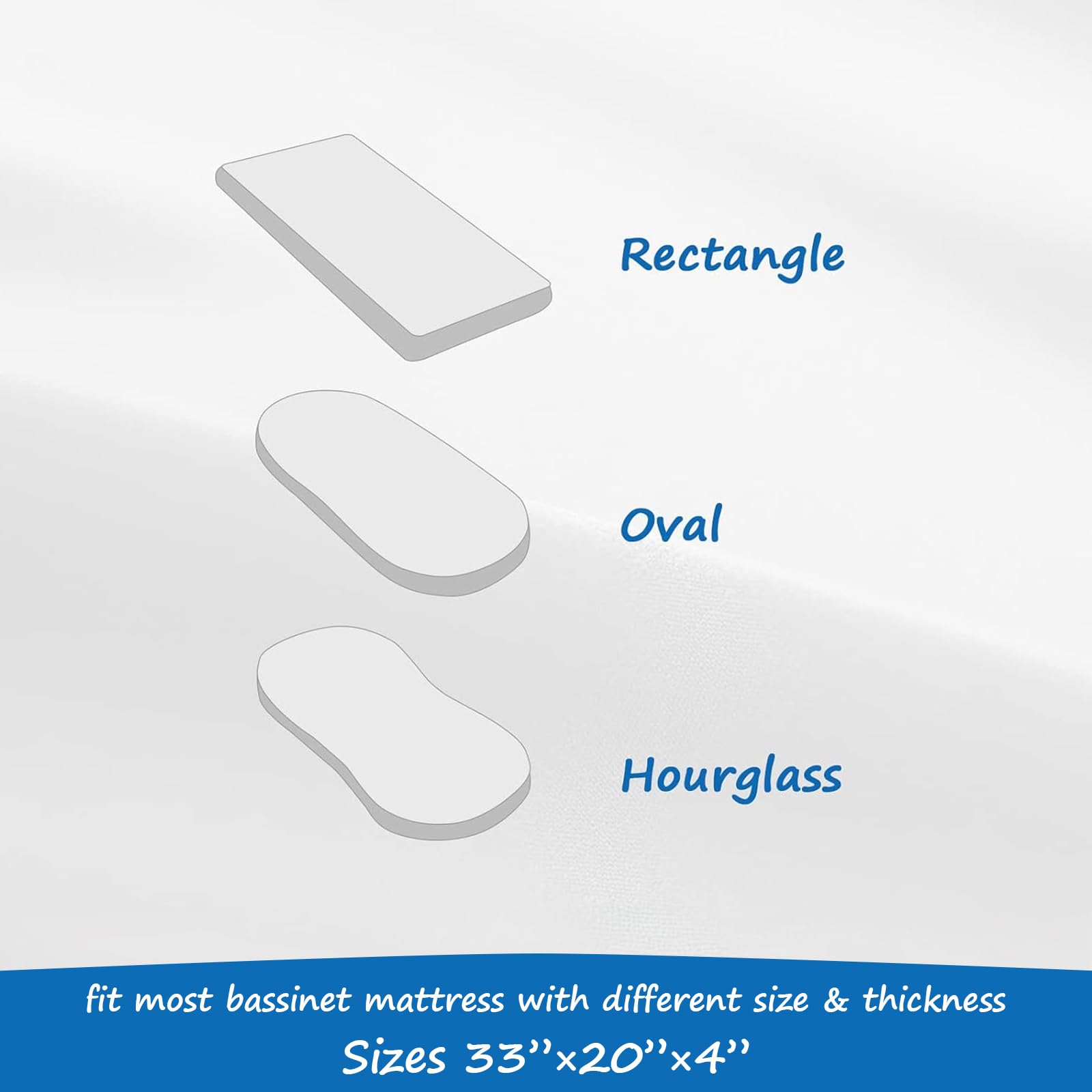 Waterproof and Noiseless: 100% Protection against URINE, MILK, SWEAT and other liquids soaking into the valuable mattress. The Waterproof layer of the bassinet mattress pad is skin friendly which is made of food-grade TPU, and we perfectly control the thickness of membrane that keeps the bassinet mattress protector soft and silent, it remains quiet however your child turns.