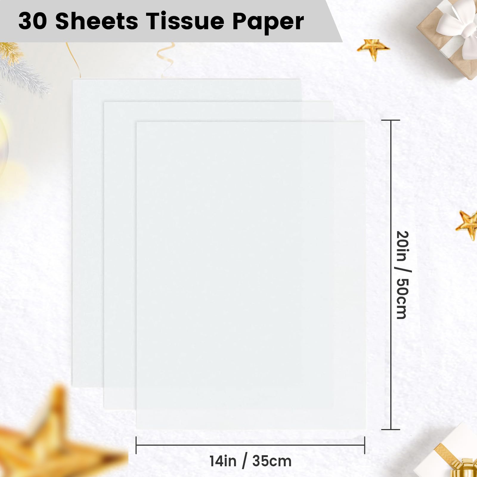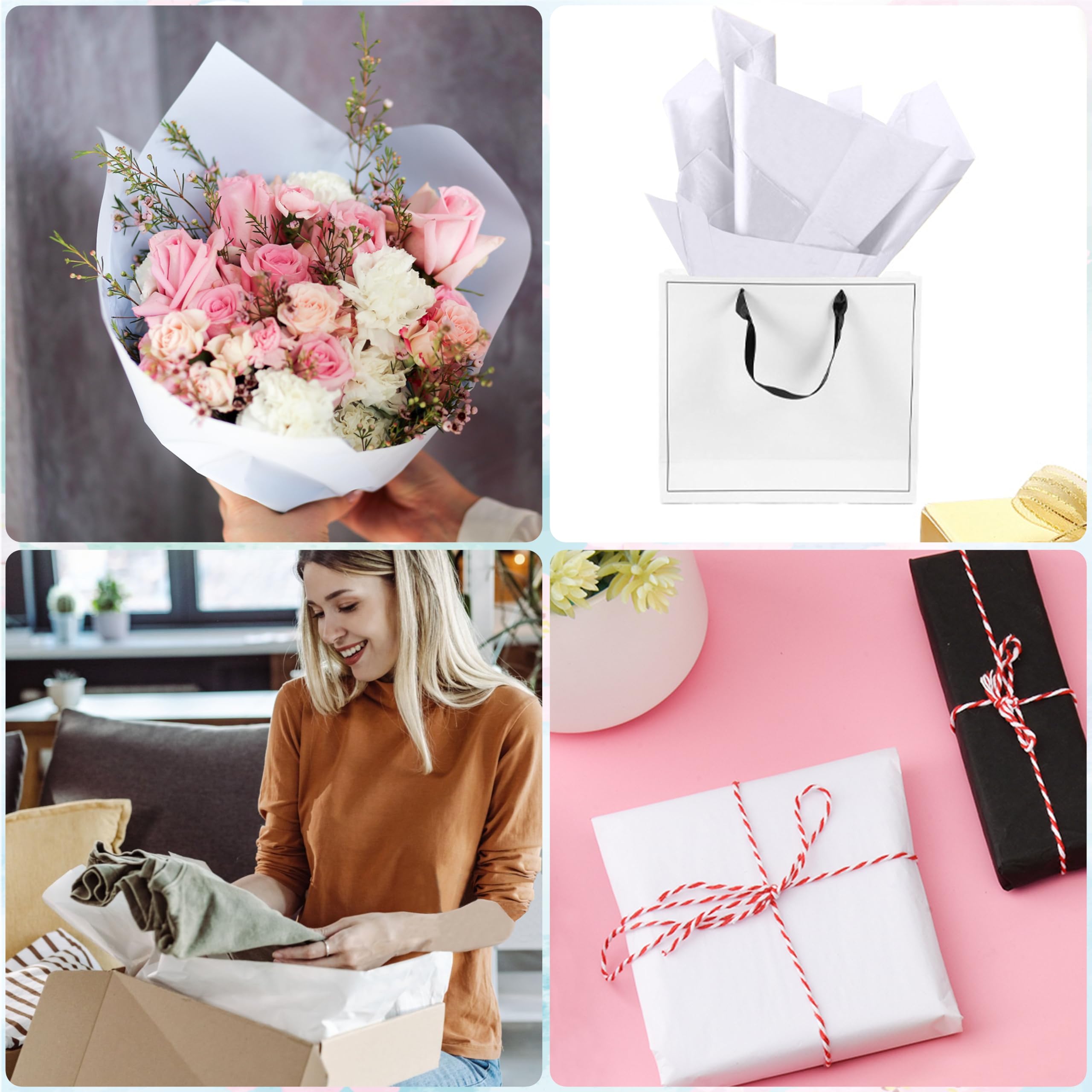 【Practical Size Design】- The size of the white wrapping tissue paper is W 14" x H 20" (35cm x 50cm). Our white tissue paper for crafts is the most widely used size in applications. No need to crop, you can use it directly.
