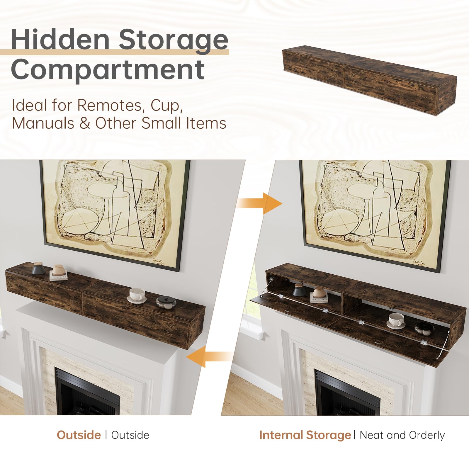 Versatile Use – Perfect as a fireplace mantel, decorative display shelf, or hidden storage ledge for living rooms, bedrooms, and entryways etc.