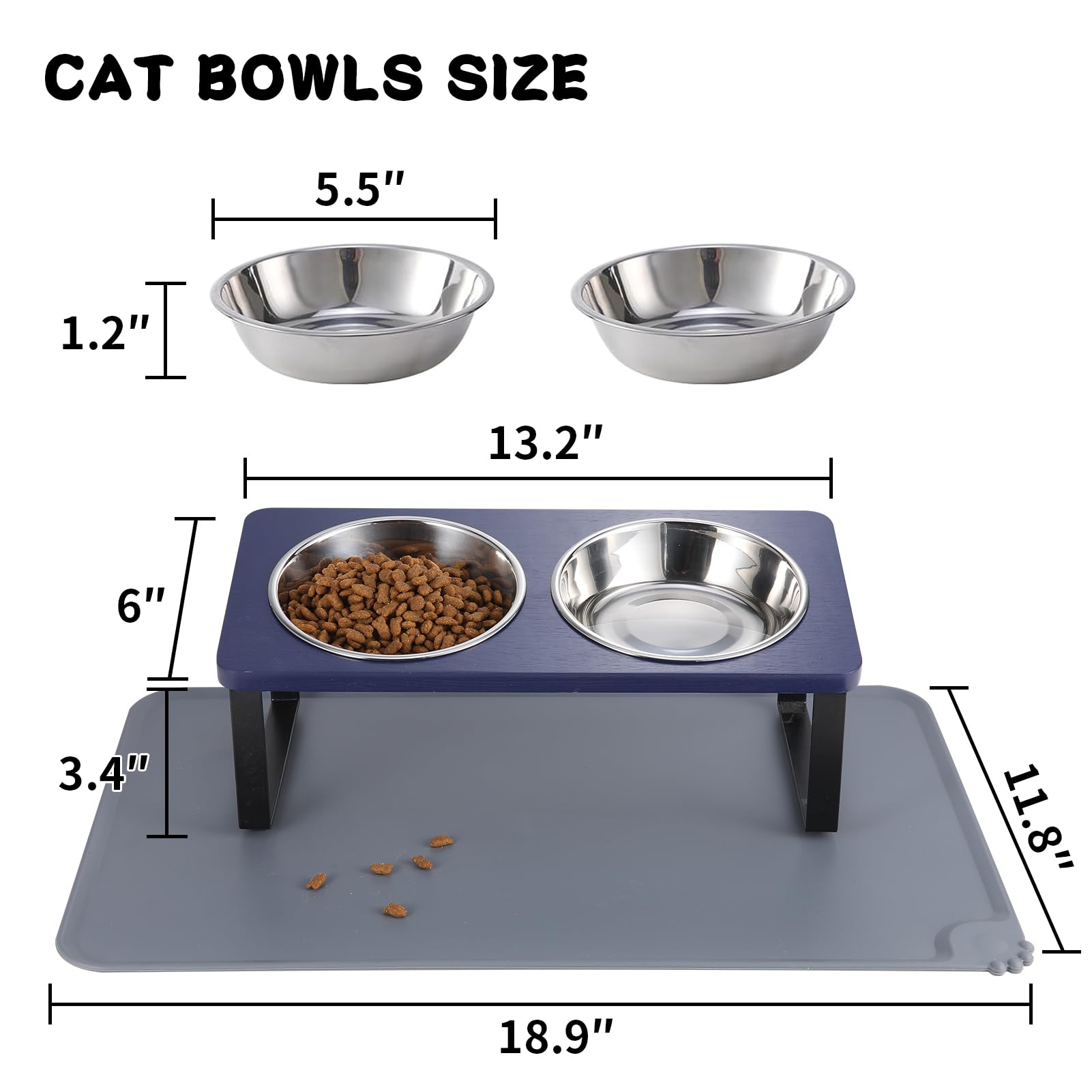 【Pet Safe Material】The cat food and water bowl set are made of premium food-grade stainless steel bowls which are rust-resistant and removable. Dishwashers safe and easy to clean. Natural and odor-free wood is waterproof and durable
