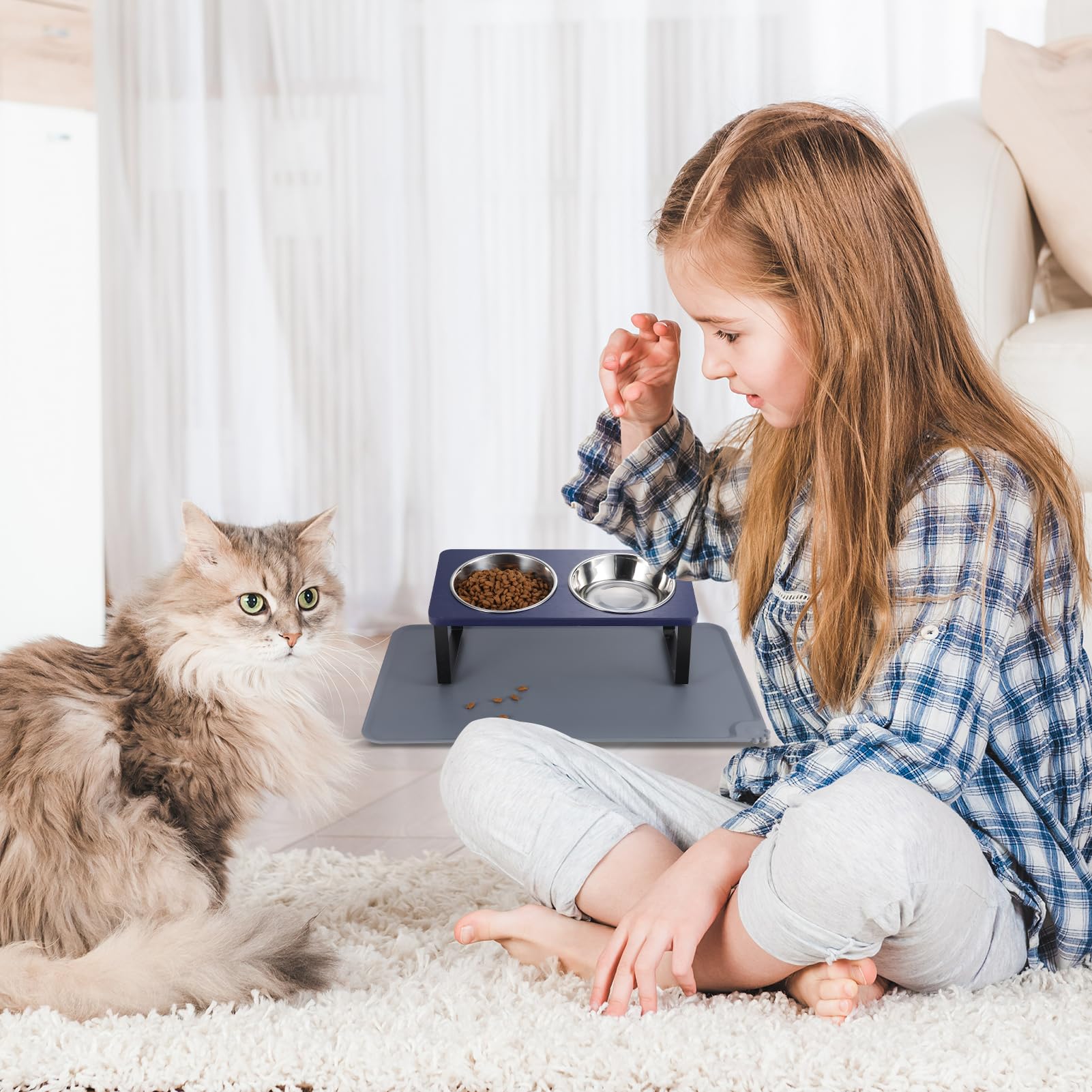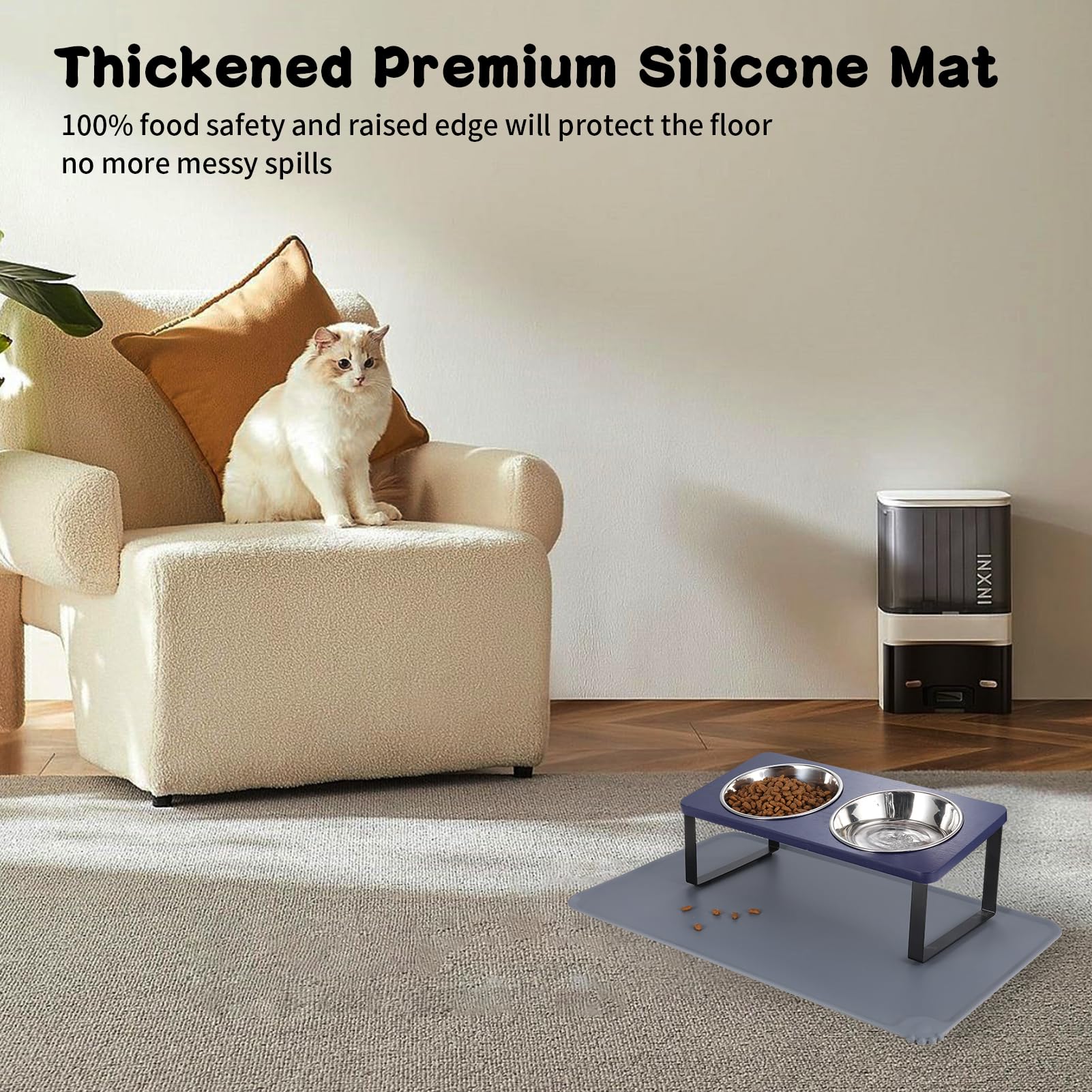 【Silicone Food Mat】Pet feeding bowl with silicone bowl mat can prevent cats and puppies from spilling food residue on the floor while feeding, keep the room or carpet clean and hygienic. Great Value Matching, Mat Size:18.9*11.8 inches
