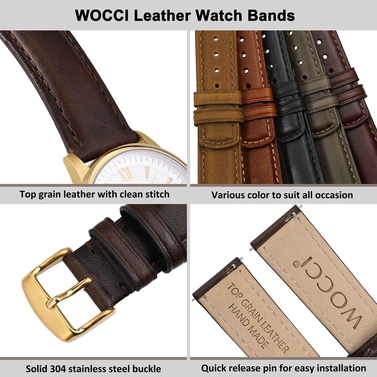 Watch Strap Material: Made of top grain leather in distressed workmanship and the lower layer that touches the wrist is comfortable suede calfskin lining, with classic tone to tone stitch and solid stainless steel buckle. These bands strike the perfect balance between durability and style, making them suitable for both casual and formal occasions