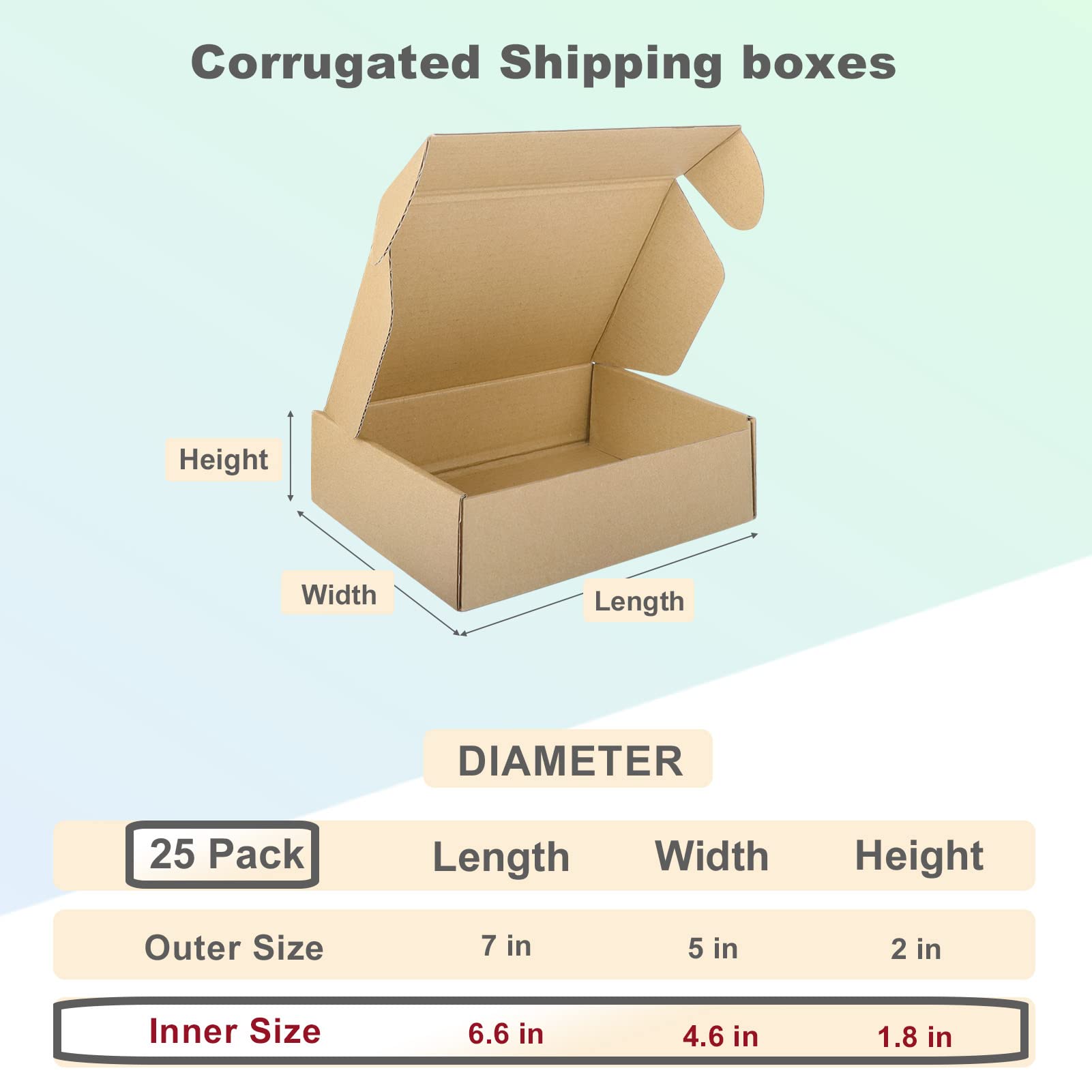 Pack of 25: All 7x5x2 shipping boxes are 25 PACKED IN A BIGGER CARTON to prevent damage during transit, and SHIPS FLAT to save your space.