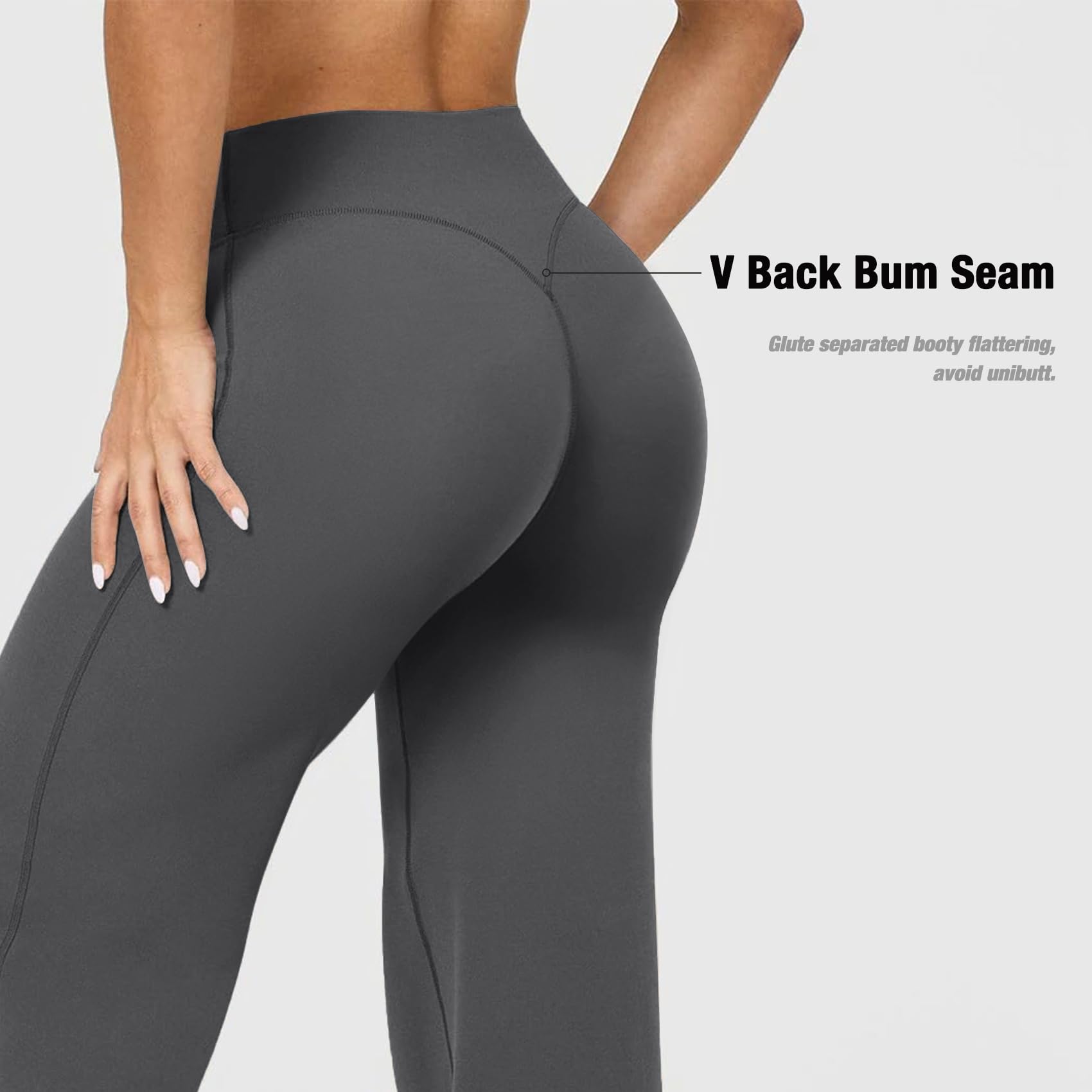 Booty Lifting Gym Leggings: The no front seam design prevents camel toeing, while a strategic V-back seam combo with glute separation detail naturally sculpts a rounded butt shape without compromising comfort during walk,workouts,lunge and squats