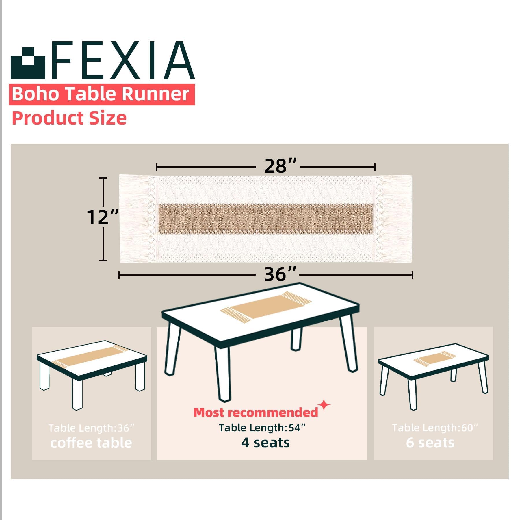[Perfect 36 Inches Long] Our macrame table runner with tassels measures 12 x 36 inch, fits a dining table that seats 4-8 people. It can give your tables a rustic and boho look. (Because it is folded in the bag, when you take it out, the table runner will have creases, which will affect your measurement. So, please make sure the table runner is placed neatly and flat before measuring)