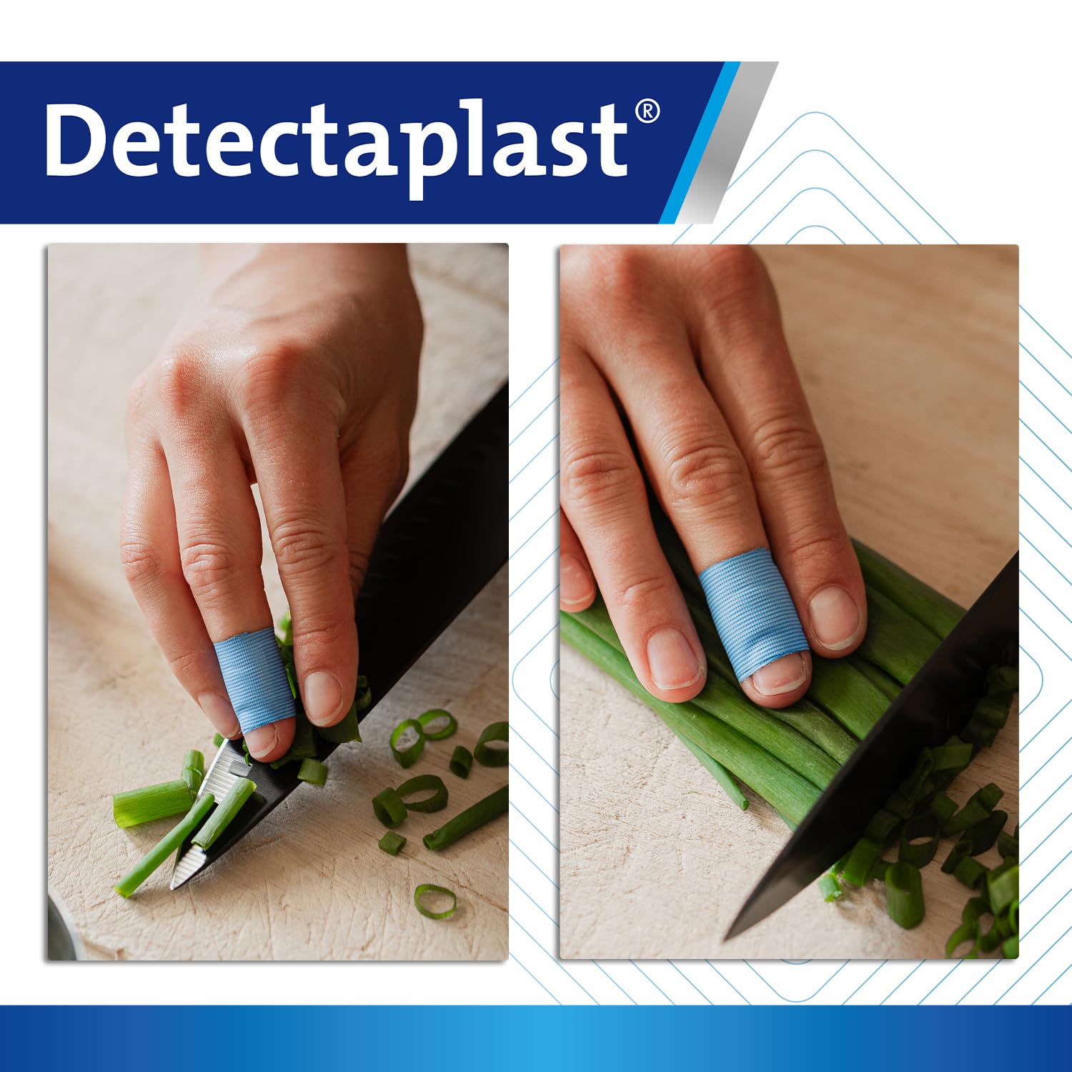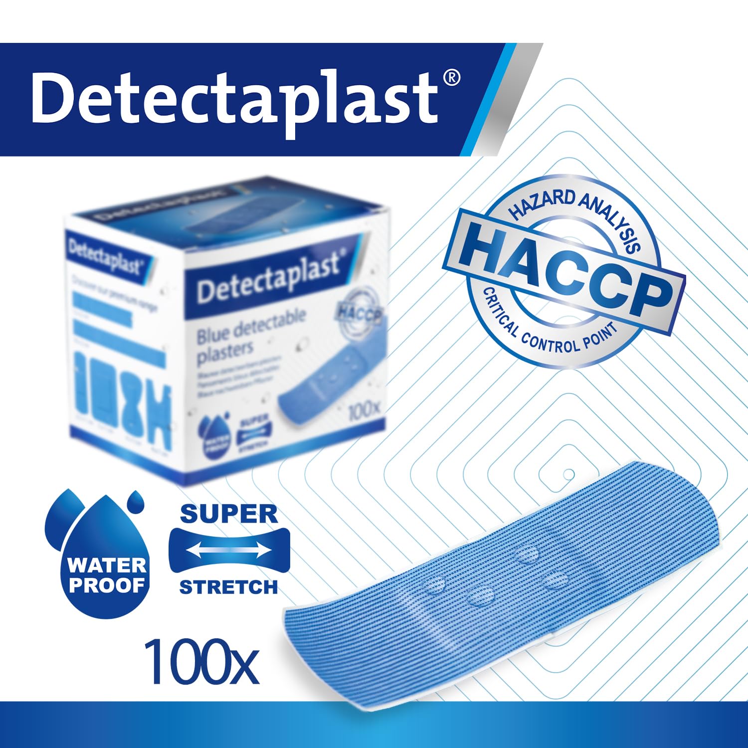 METAL DETECTABLE Thanks to its blue colour and aluminium strip, the bandaids are visually and electromagnetically detectable. They can be quickly taken out of the production process. The bandaids first aid are indispensable in catering equipment.