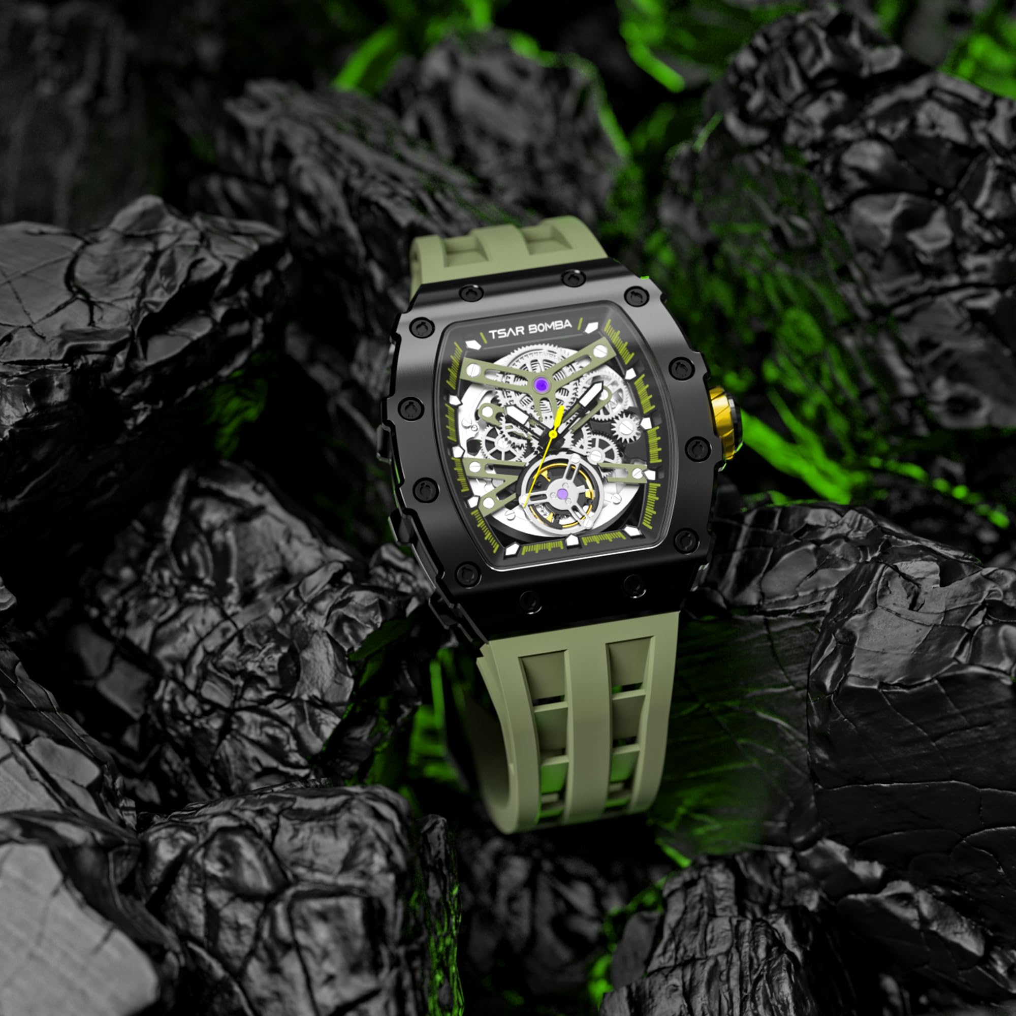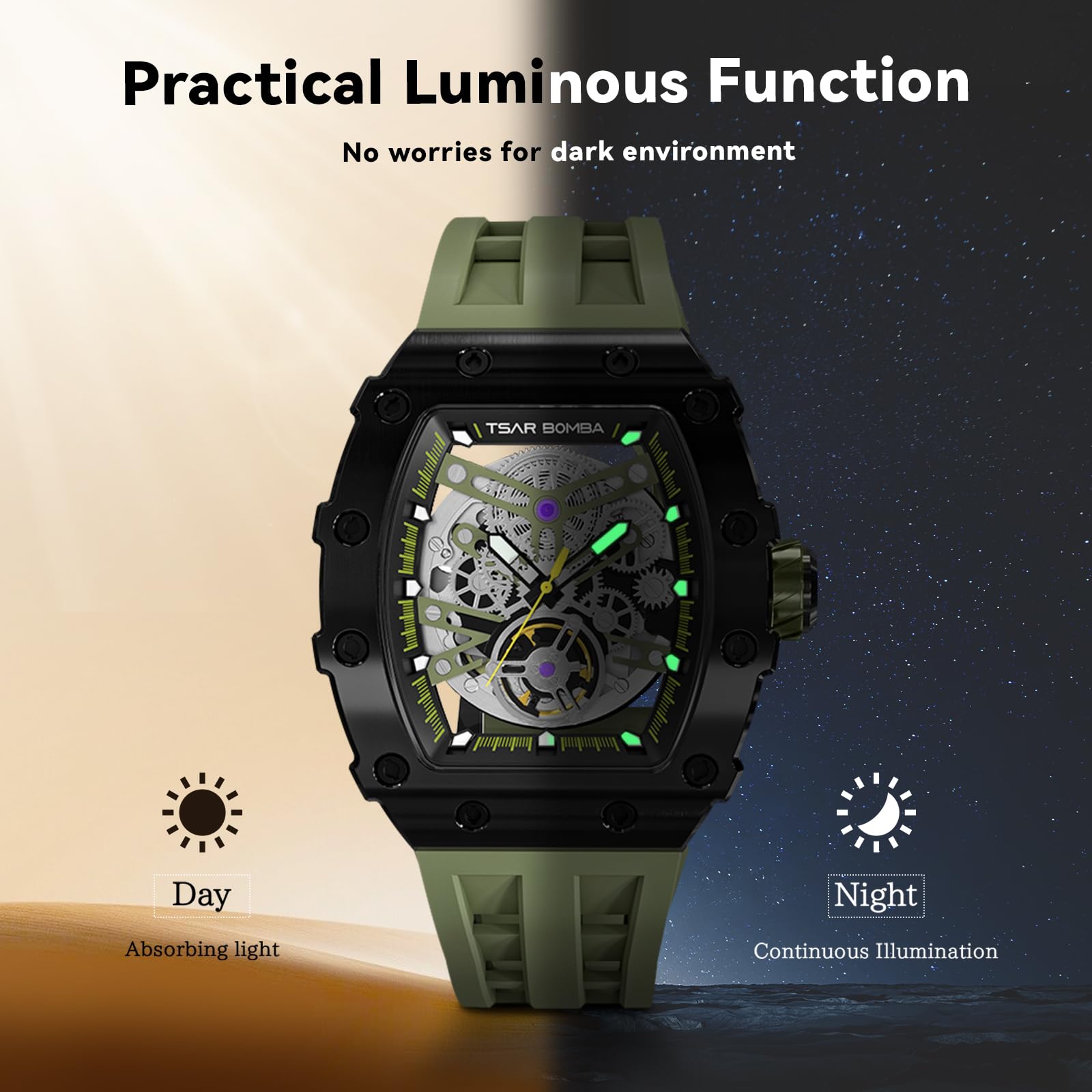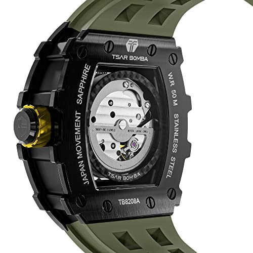 Japanese Movement & Nice Gift:Provides a precise time and a storage of energy over 48 hours.The skeletonized dial works to give you a direct view of the movement, all in stunning detail.Whether it is Father's Day, Christmas, Thanksgiving, Valentine's Day or a birthday, anniversary, wedding. This authentic watch will offer you a sparkling experience and look. A good watch is a reflection of the constant search for quality, TSAR BOMBA is the best gift for a loved one or for yourself.
