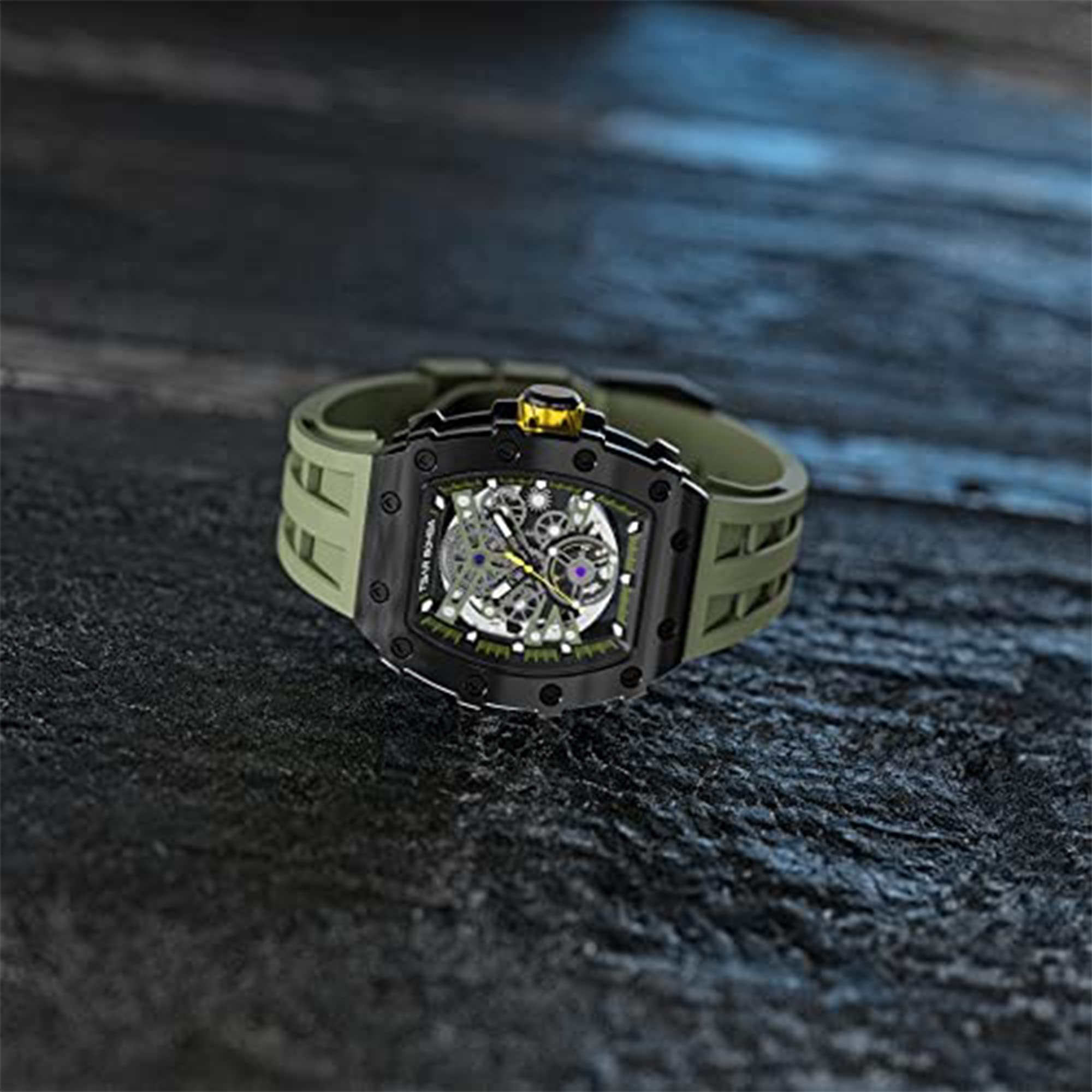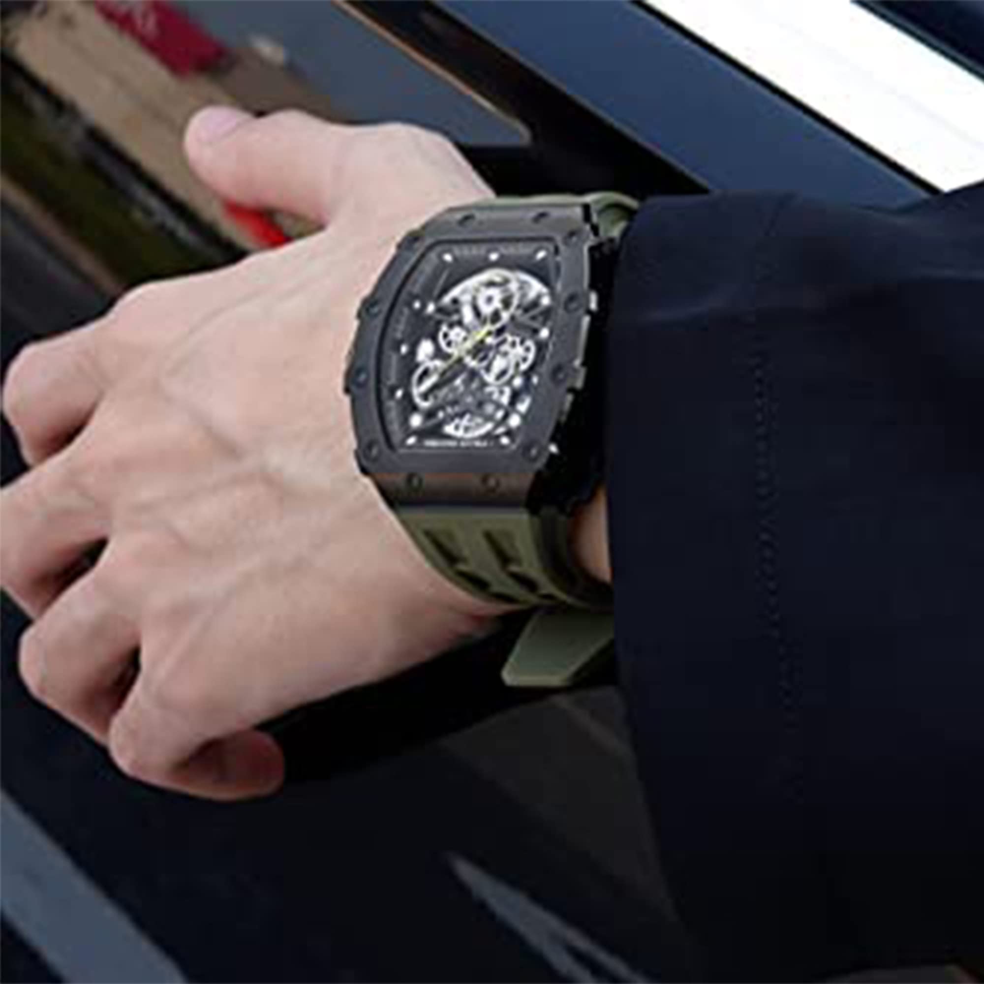 Automatic Watches for Men:Born in the Sino-German Force Lab. Based on mechanical mechanics,innovative materials,and precision manufacturing,it integrates oriental aesthetics and strives to make continuous breakthroughs in tech. Adopts an ergonomic double bridge design. Each case has undergone 202 processes to make the watch more fit the human wrist, greatly enhance the matching experience.A visual feast of simple luxury that brings out the best of men's style.