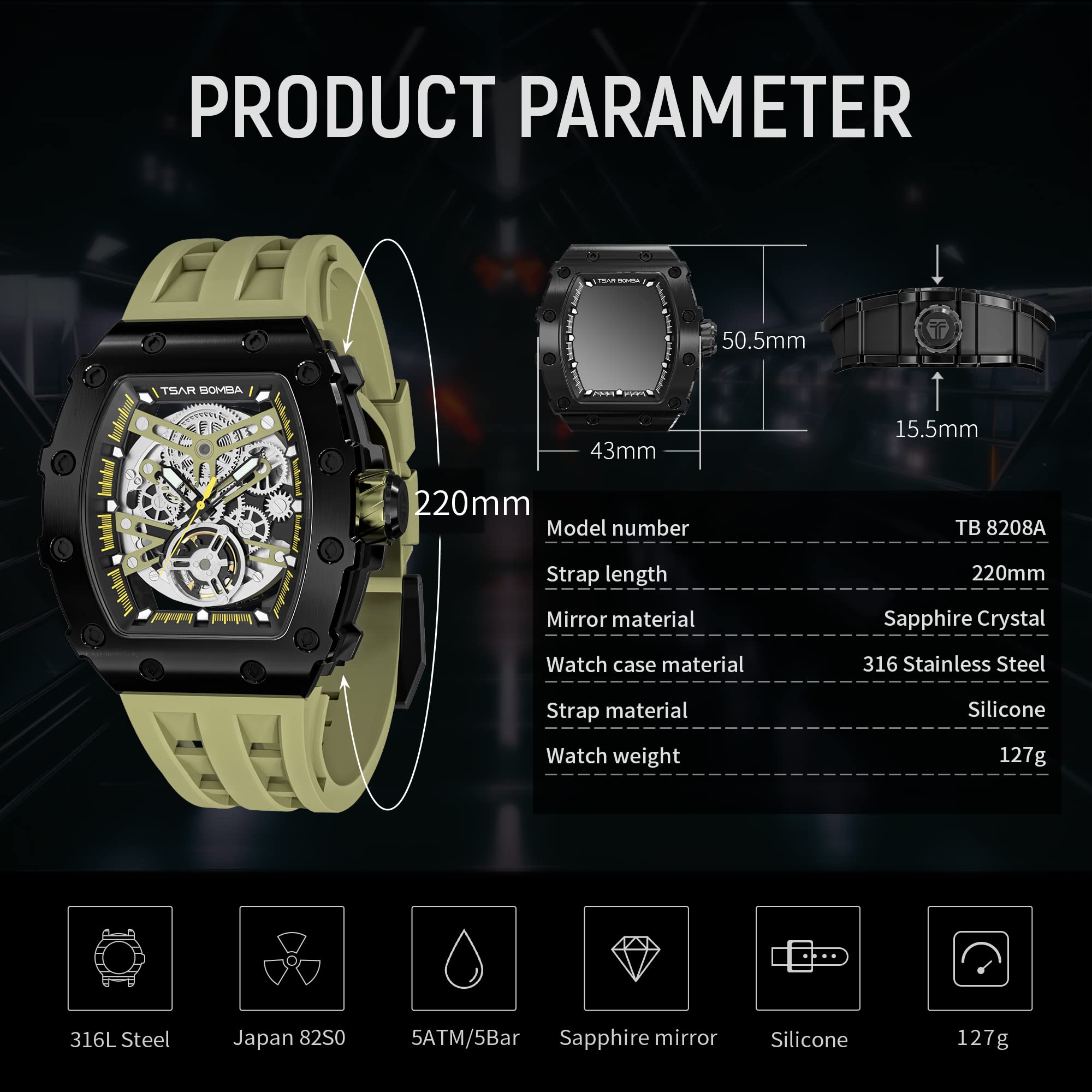 CUSTOMER SATISFACTION: TSAR BOMBA provides a 2-years after-sales service for any watch problems and pledges to offer high-quality watches that are rigorously tested and quality controlled for precision and durability. If you have any questions about our men’s watch, please contact us by e-mail and we will provide you with a satisfactory solution.