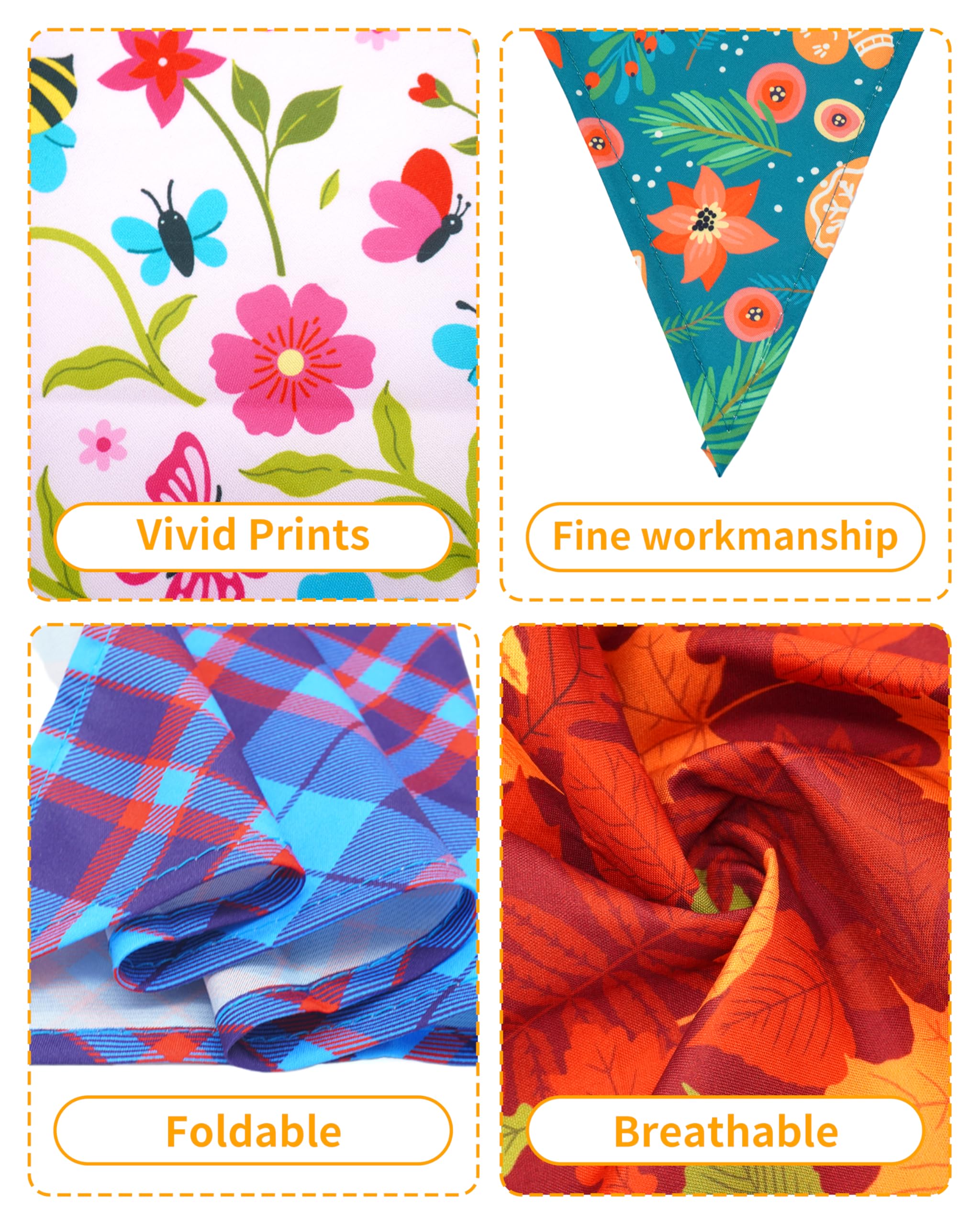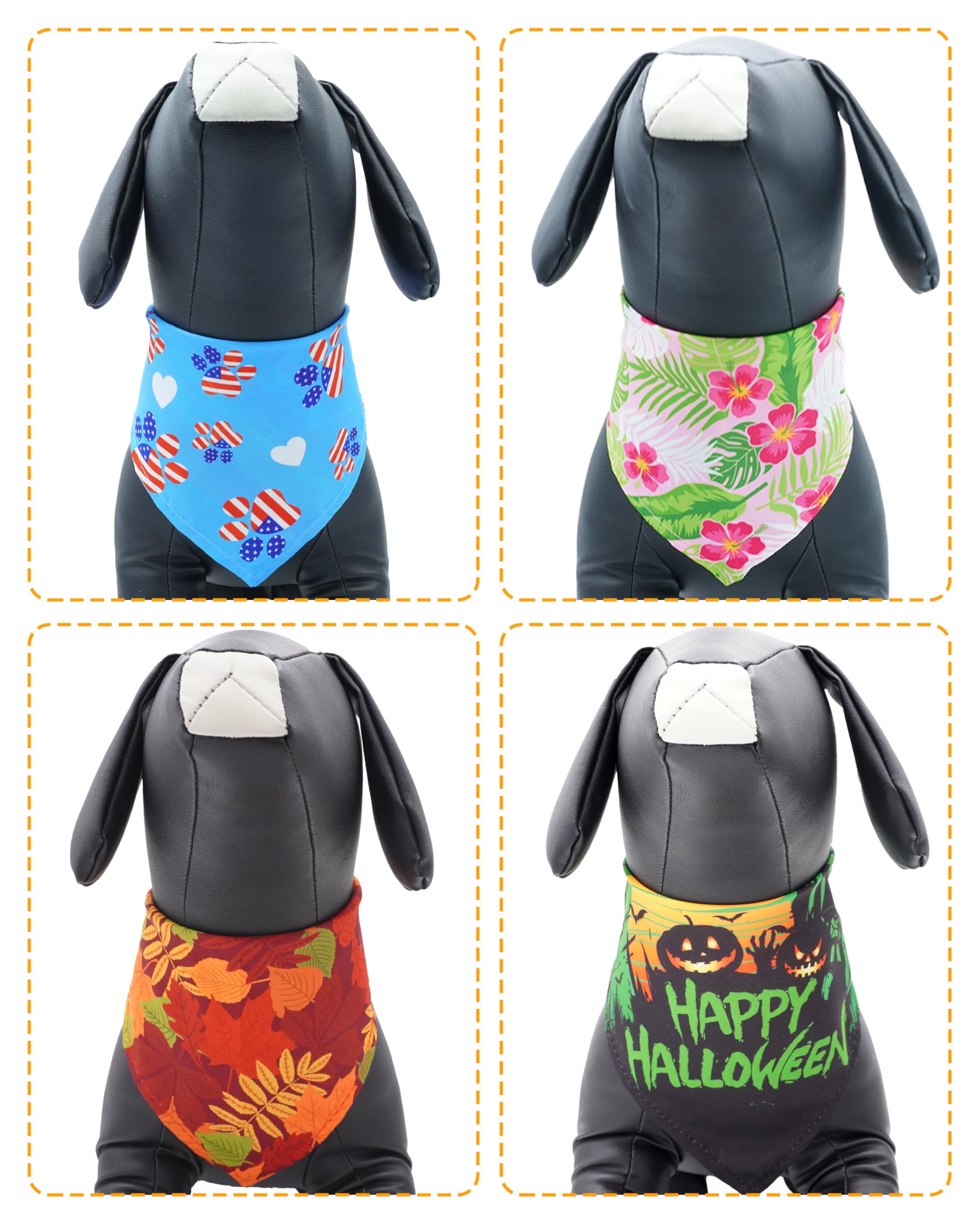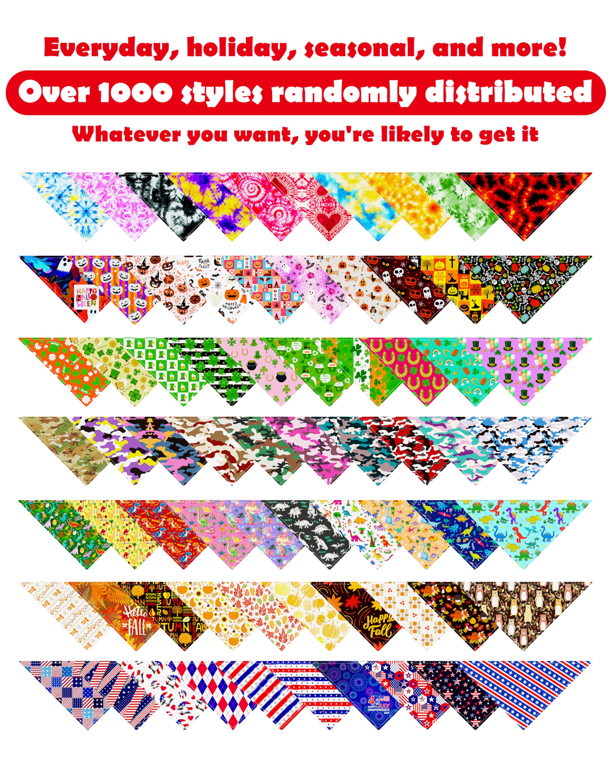 Bulk QTY: There are 50pcs/pack triangle dog bandanas in the package. Please note these dog bandanas are assorted styles and you can gift it as a blind box which include daily and holiday bibs like Christmas/Easter/Halloween/4th of July/Mother's Day/Father's Day etc. for pets. They are great for multi-pets families to choose