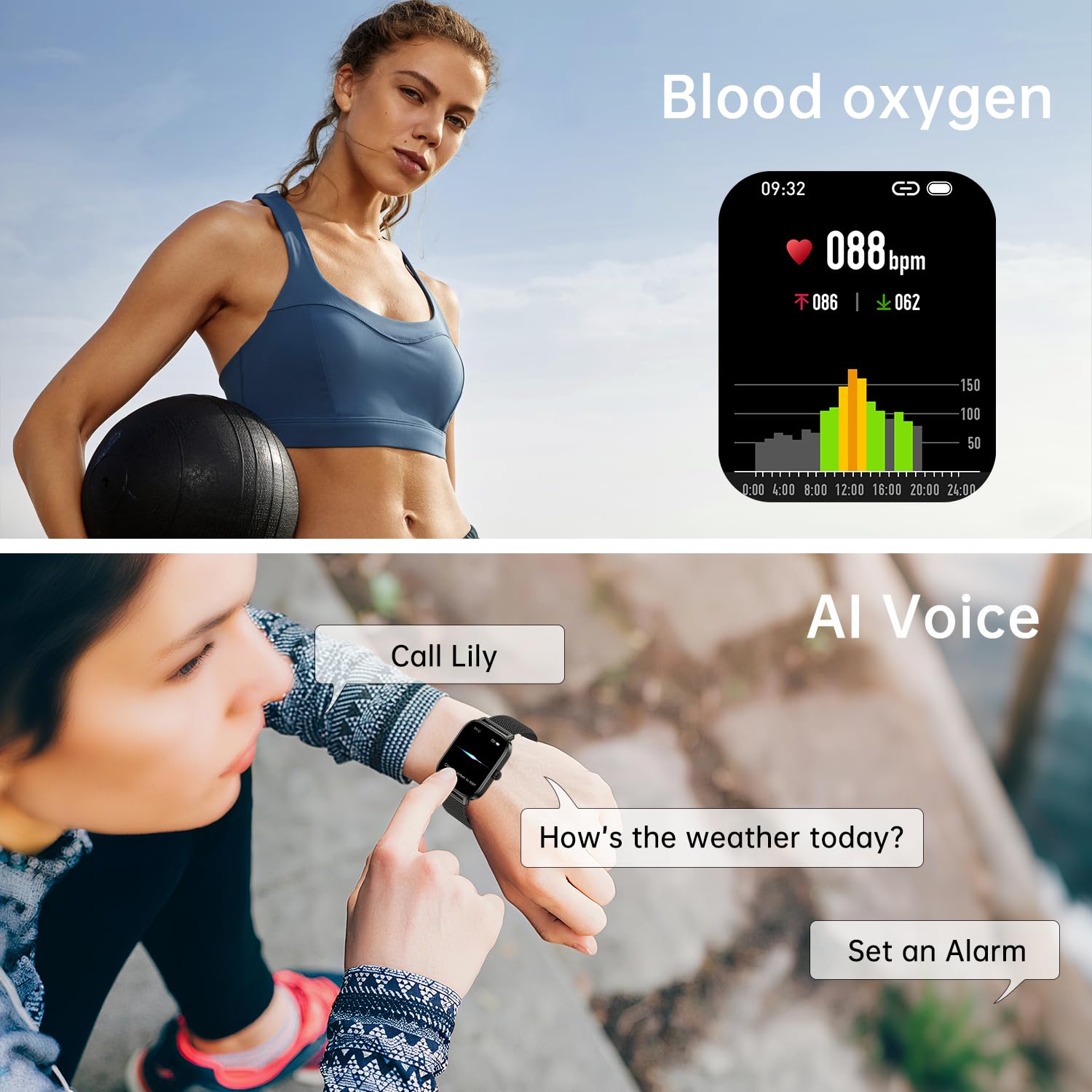 All-Day Health Monitoring: Heart rate monitor watch is equipped with advanced optical sensor that supports 24h real-time heart rate monitoring, helping you stay informed about your physical condition.Health watches for men womens watch also intelligently analyzes sleep quality, accurately identifying deep sleep, light sleep, and awake phases to help improve your sleep habits.Paired with its dedicated app, you can view long-term health trends to gradually develop a healthier lifestyle