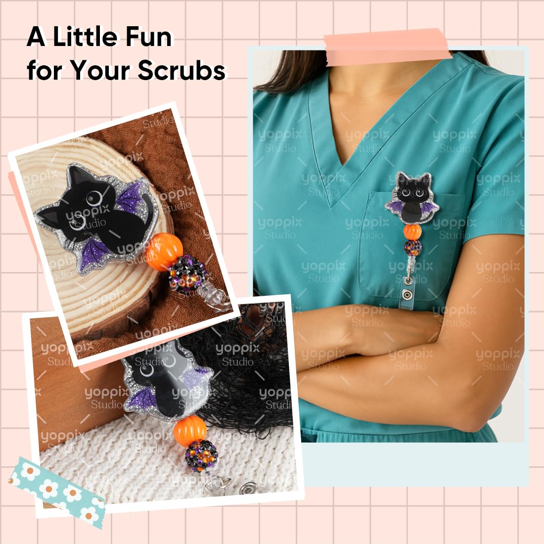 This halloween bat badge reels make an excellent gift or add personality of your own to your scrubs or uniform. They make super fun and useful gifts for any person in any profession. A great gift choice for nurses, teachers, students, medical staff, office staff, and anyone who is required to wear an identification badge.