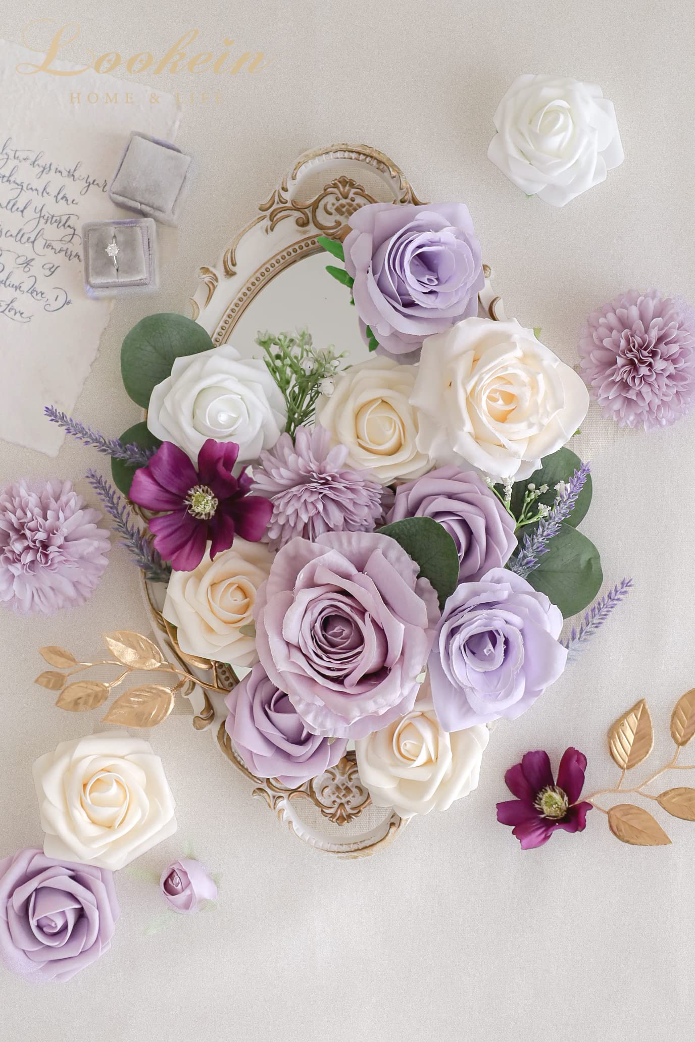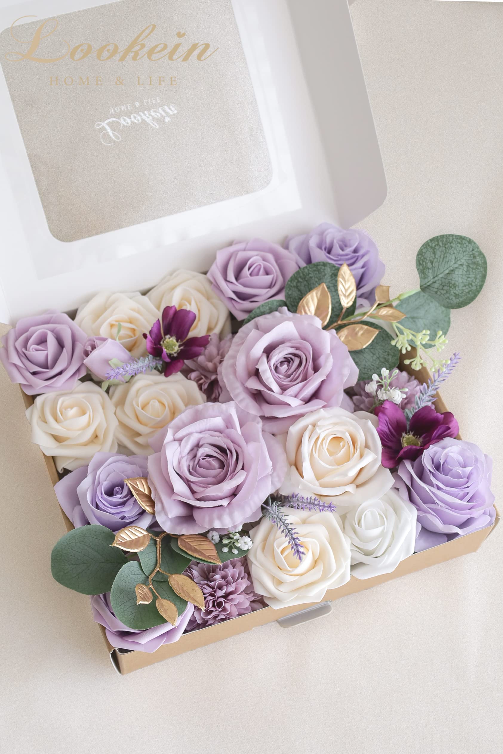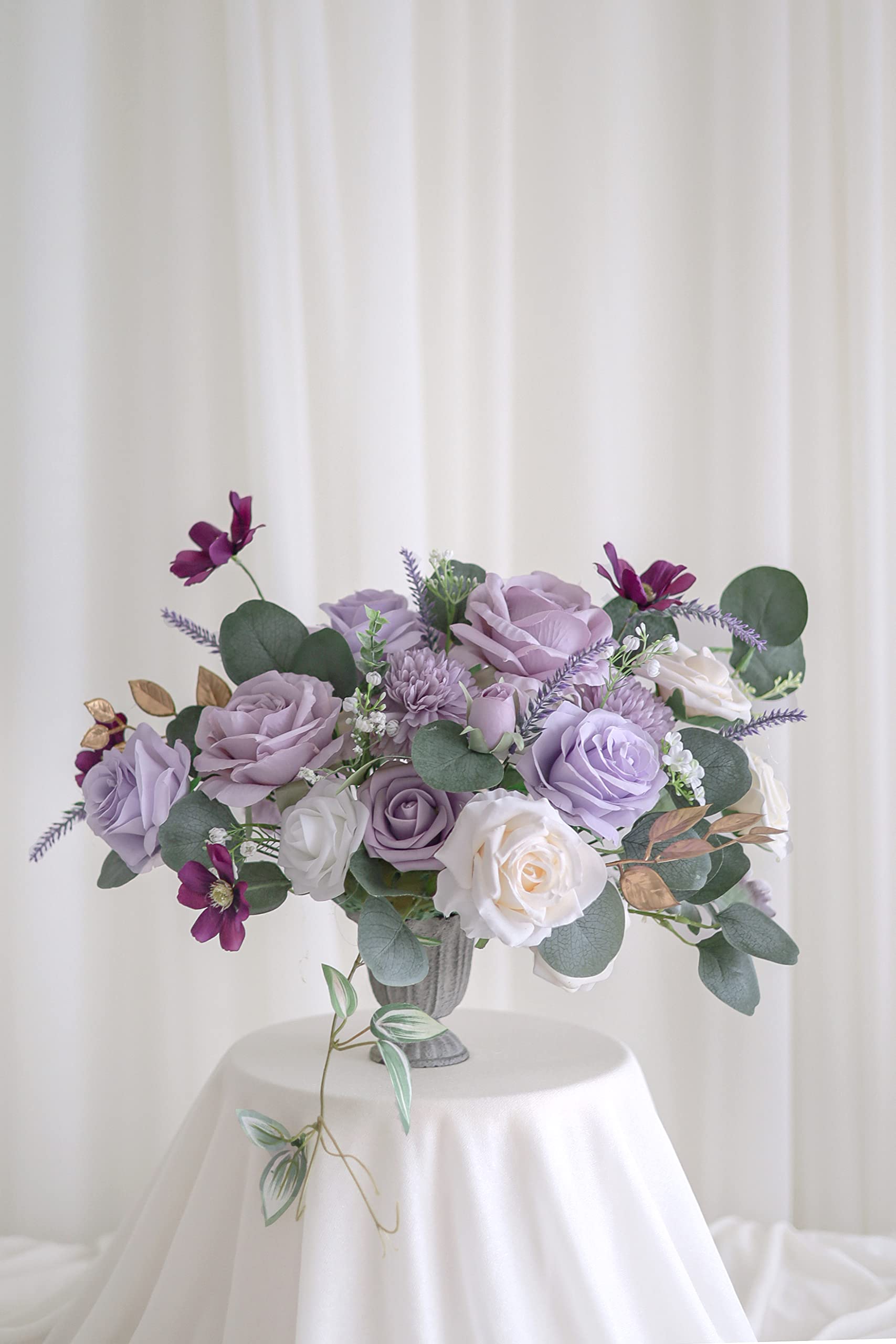 Specific Combo Pack: This artificial flower box set is combined with a variety of flowers and greeneries in a specific color scheme, which is perfect for your statement floral arrangement, making your event take on character easily.