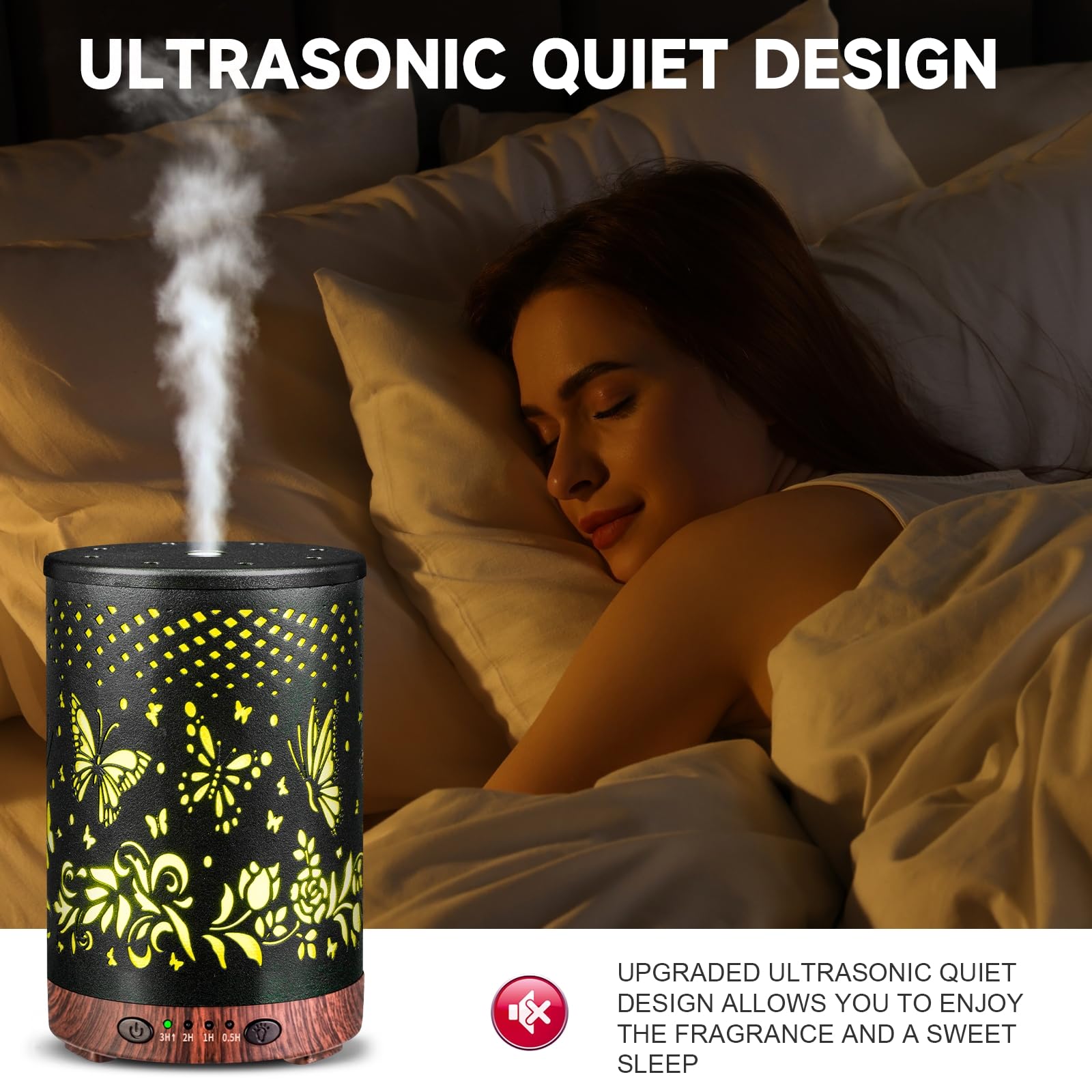 Whisper Quiet Ultrasonic Technology: Utilizing advanced ultrasonic technology, our aroma diffuser operates quietly without disturbing noise, making it perfect for use while sleeping or working. It fills the room with a lovely fragrance that uplifts spirits and relieves stress from a tiring day.