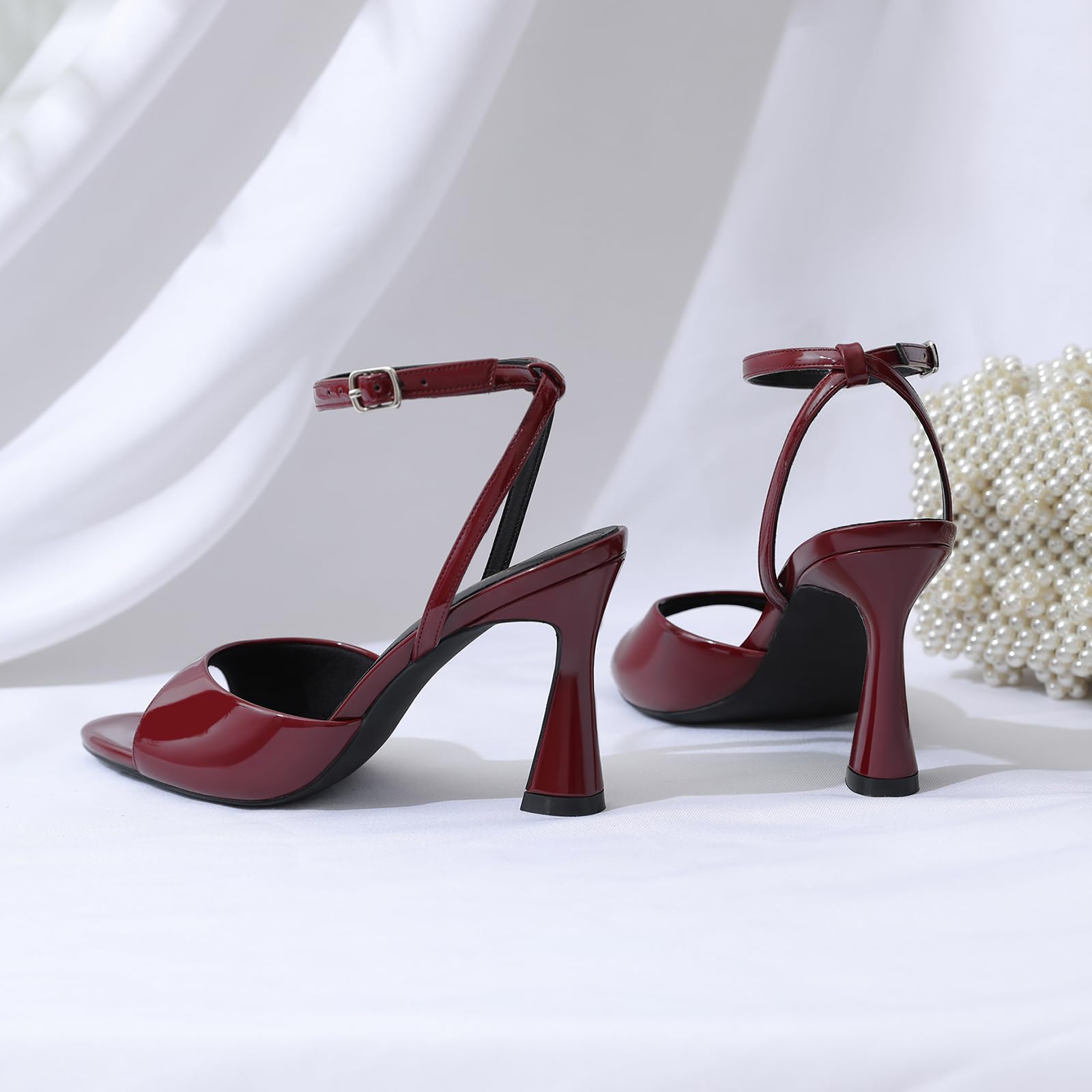 Fashion Design: Burgundy Heeled sandals feature a Pointed open toe and strappy design, adding a touch of sophistication to any outfit.