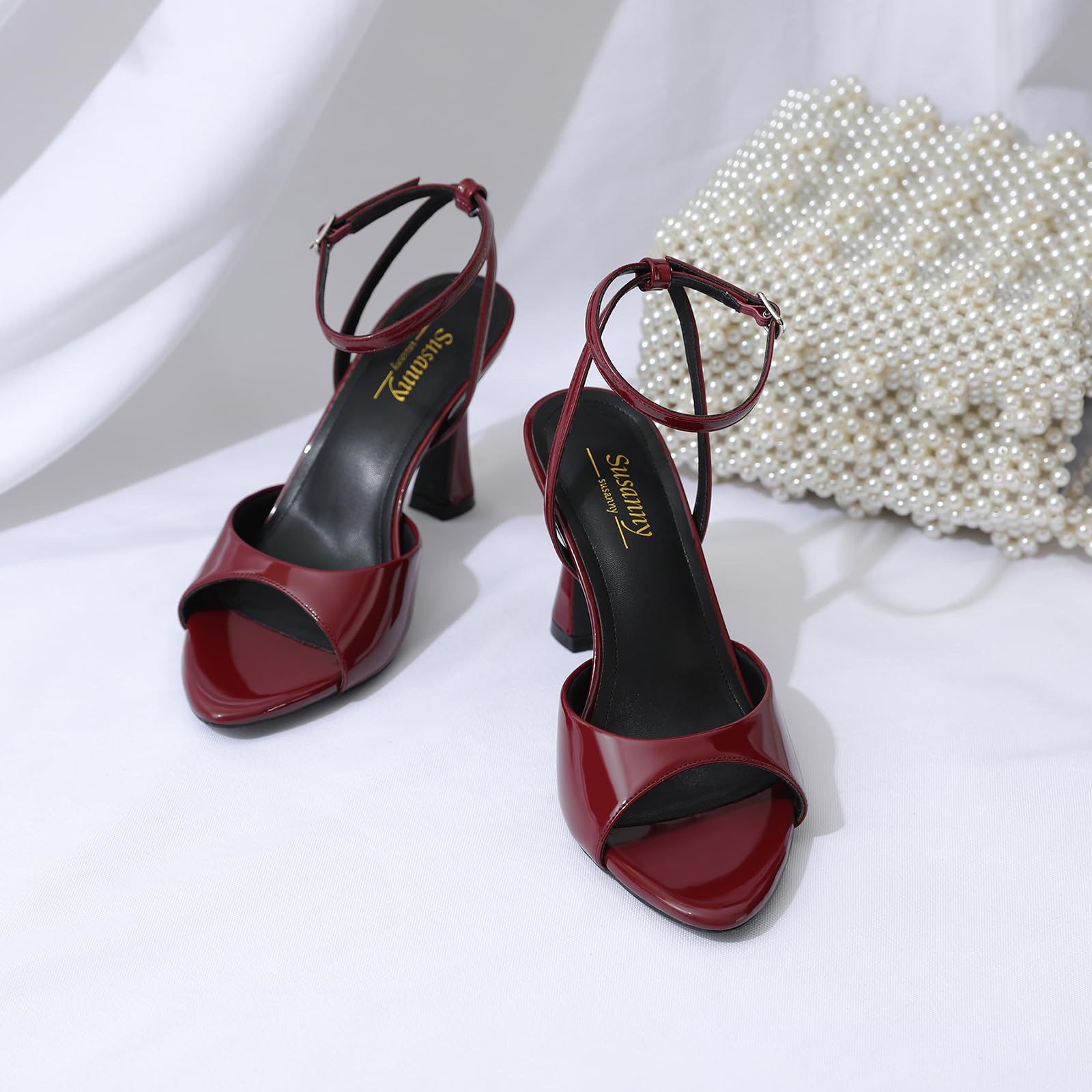 Description High Heels for Women Pointed Open Toe Strappy Chunky Block Heels Ankle Strap Stiletto Kitten Heeled Sandals Wedding Bridal Party Prom Sexy Dress Shoes
