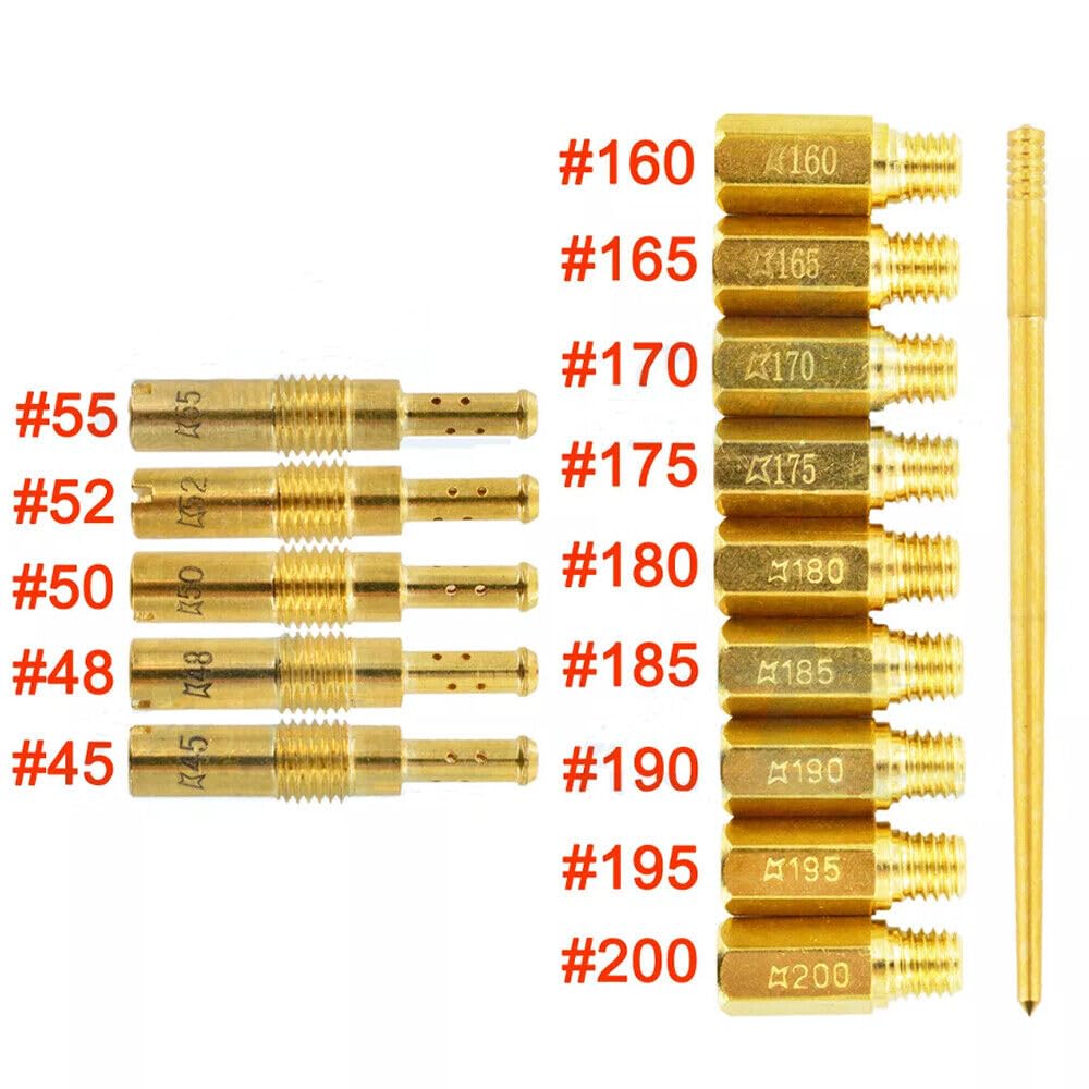 Package Include: 18 Main Jets.(#160#165#170#175#180#185#190#195#200);Two of each style; 10 Pilot Jets.(#45#48#50#52#55); Two of each style; 2 Jet Needle.
