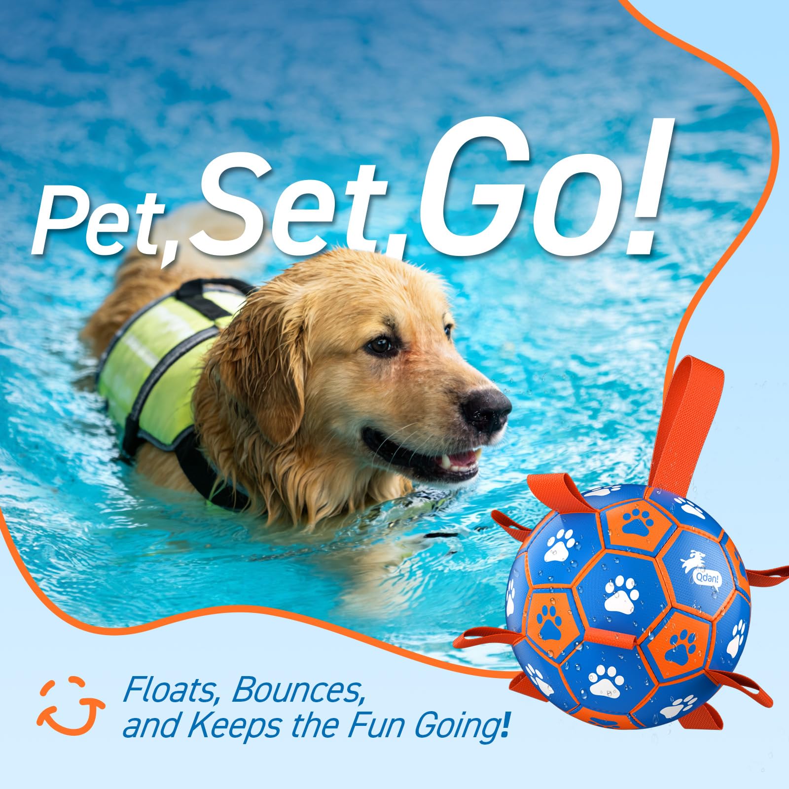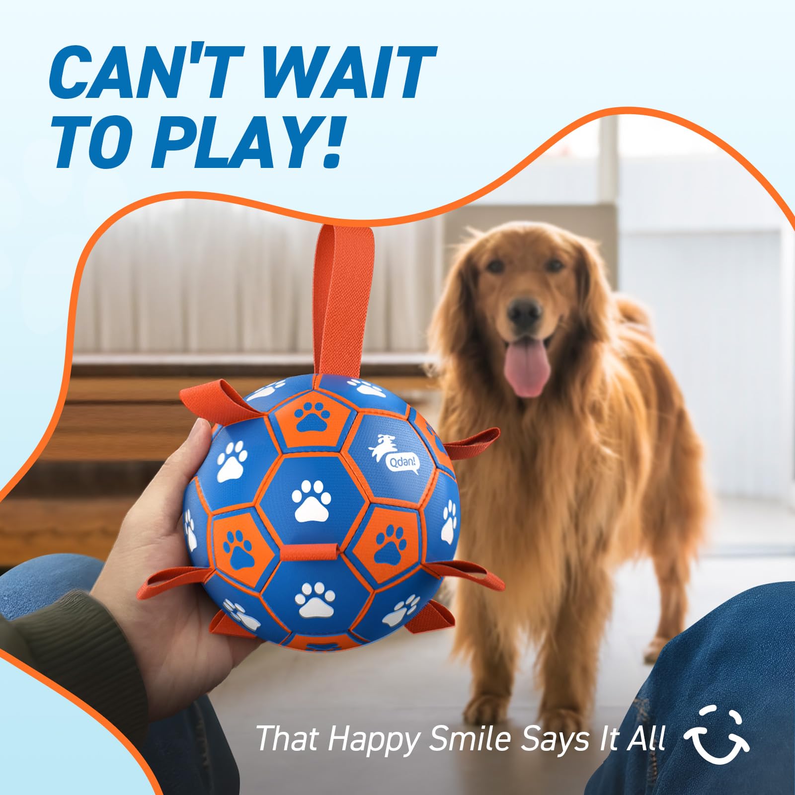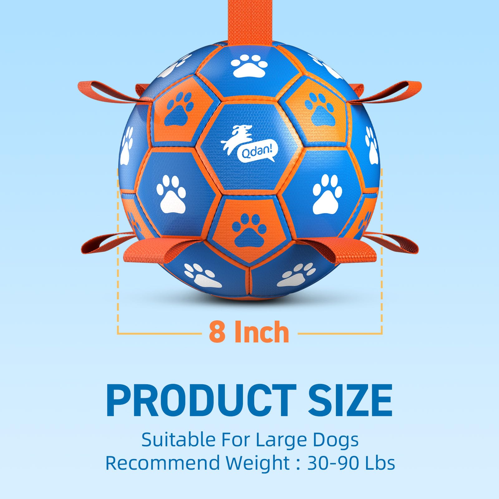 QDAN Dog Soccer Ball Best Git For Your Dog - Send your dog a bithday gift. House and Outdoor Dog Toyscan be played in the llving room,pool.lake and beach,because it ls also Water Toys Bal,no water absorption.noseepage,no deformation,lightweight,easy to float in water. Dog Soccer Ball with Grab straps are great for dog catching