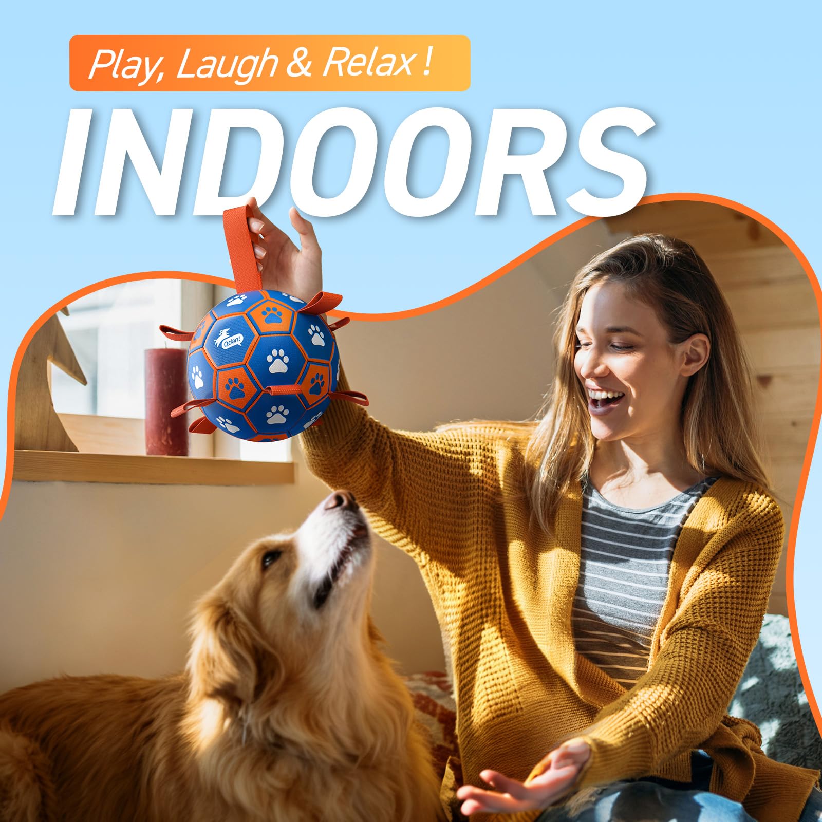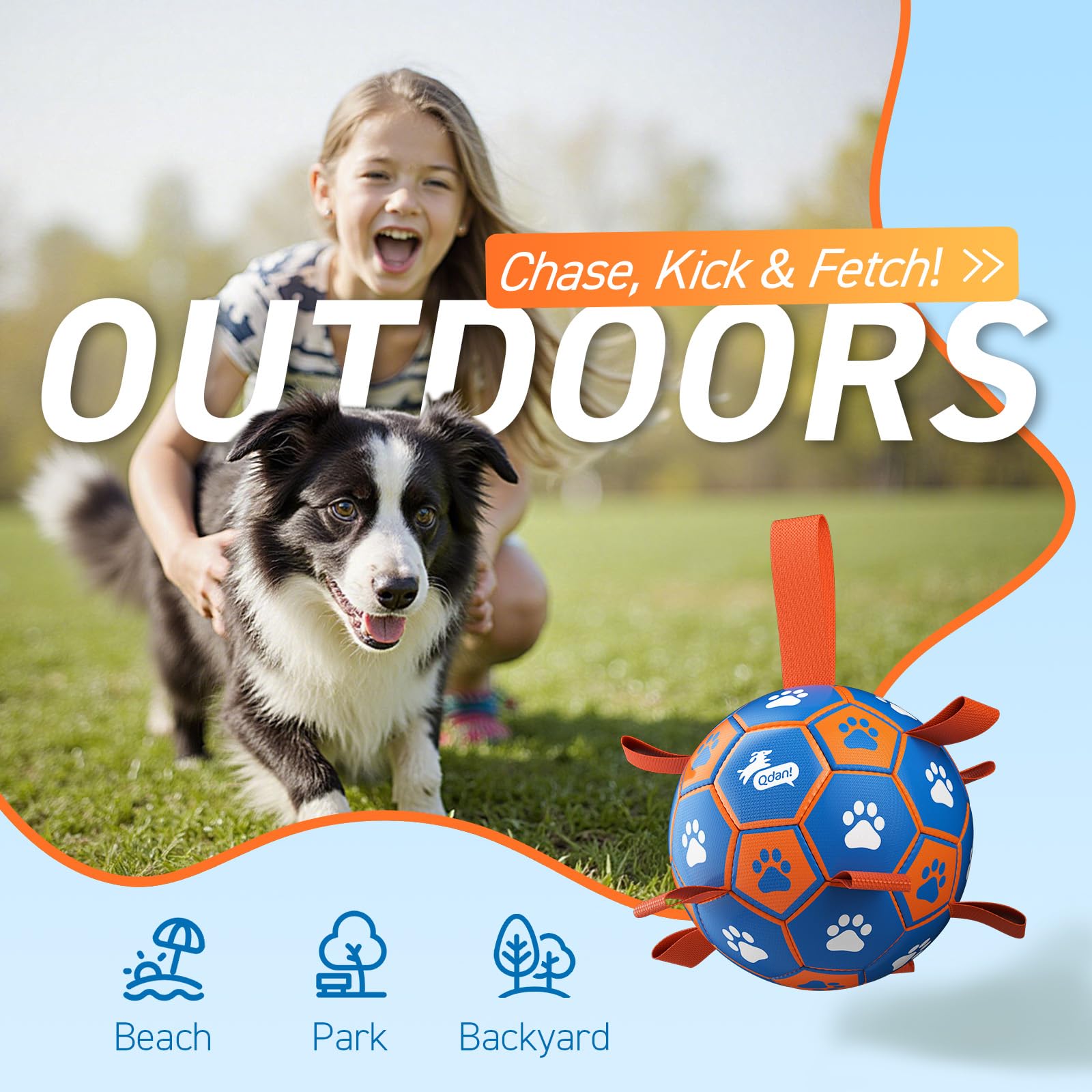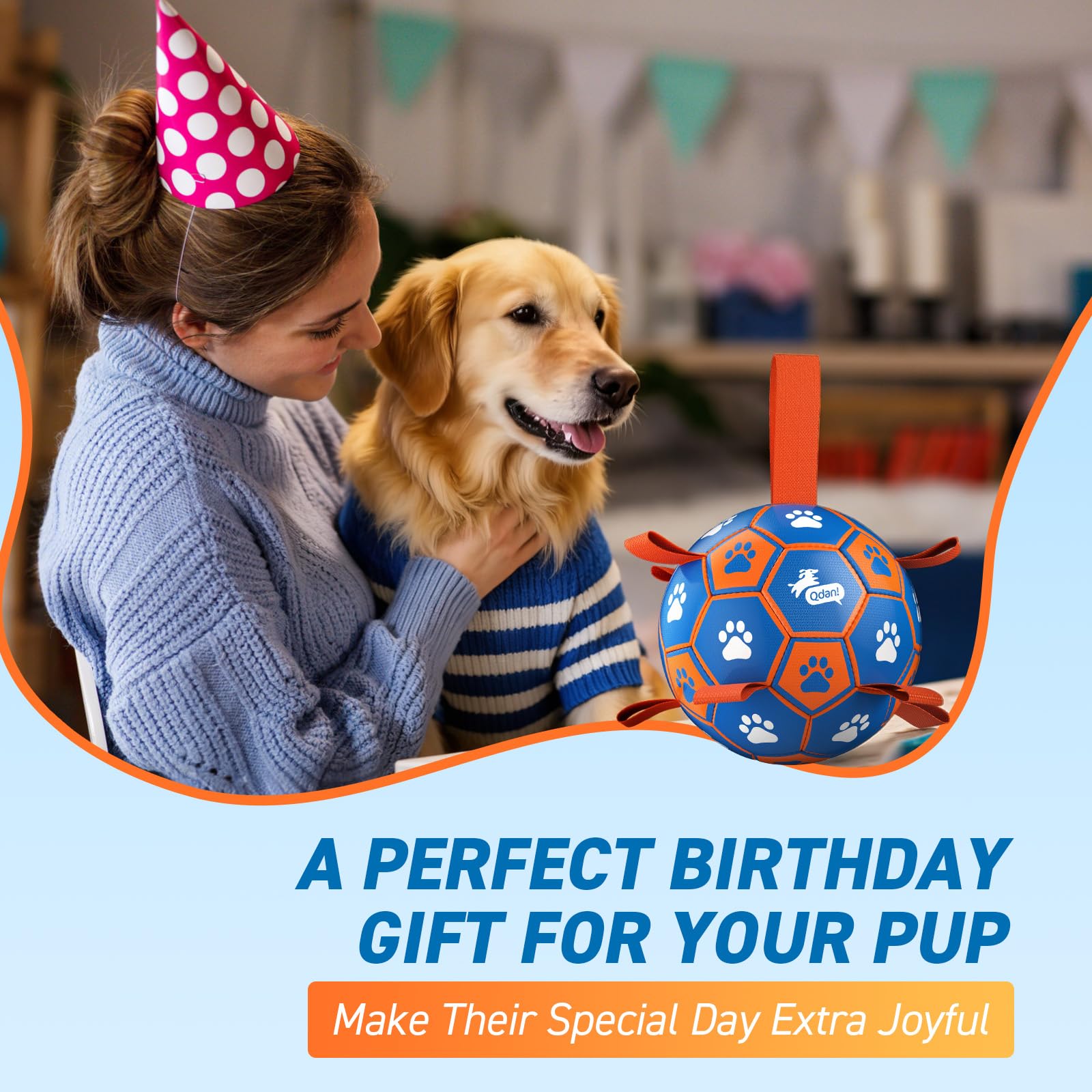 QDAN Dog Soccer Ball Best Git For Your Dog - Send your dog a bithday gift. House and Outdoor Dog Toyscan be played in the llving room,pool.lake and beach,because it ls also Water Toys Bal,no water absorption.noseepage,no deformation,lightweight,easy to float in water. Dog Soccer Ball with Grab straps are great for dog catching