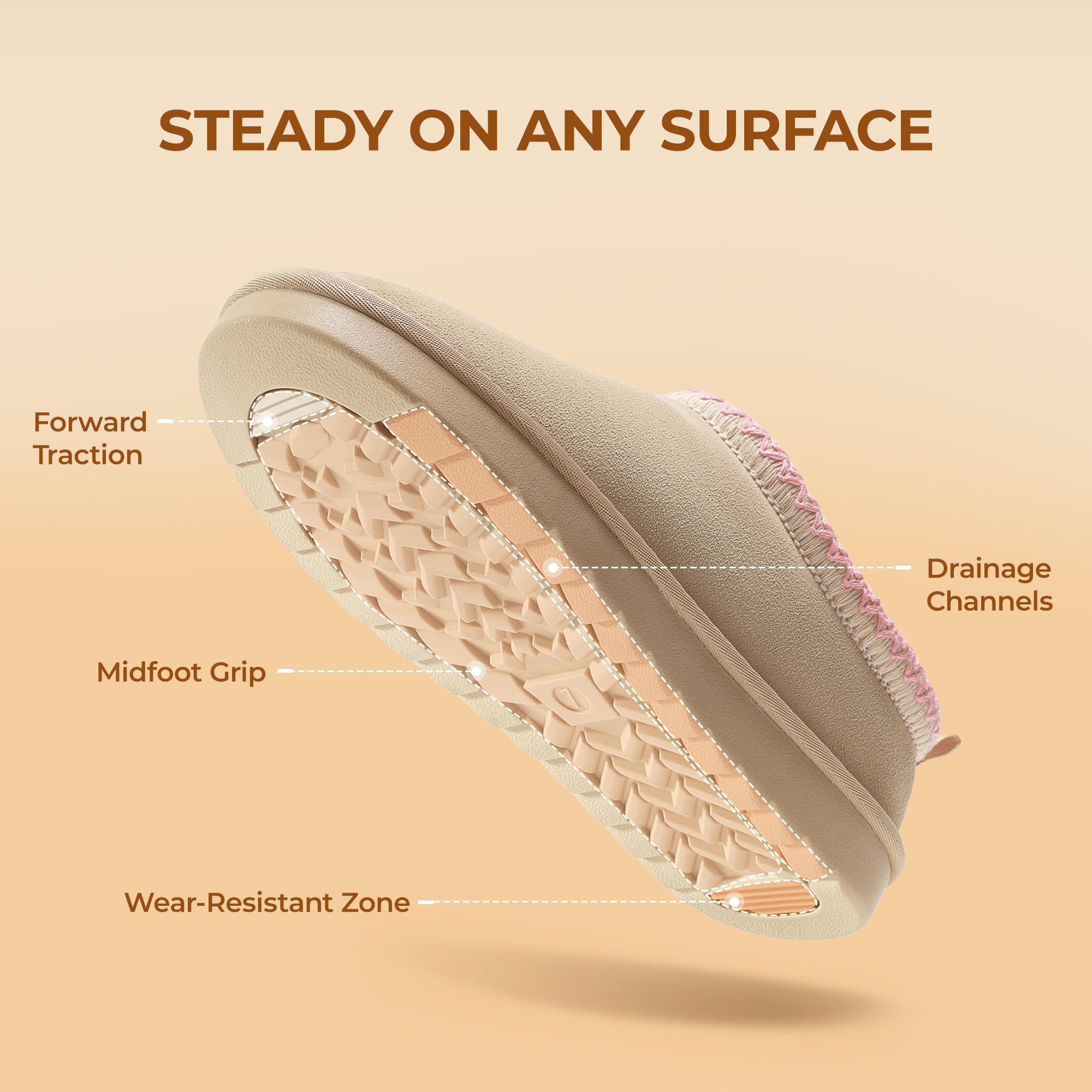 Non-Slip TPR Outsole: Embrace the winter chill confidently in these winter shoes. The slip-resistant outsole of these winter slippers offers traction and grip to keep your feet stable on any surface.