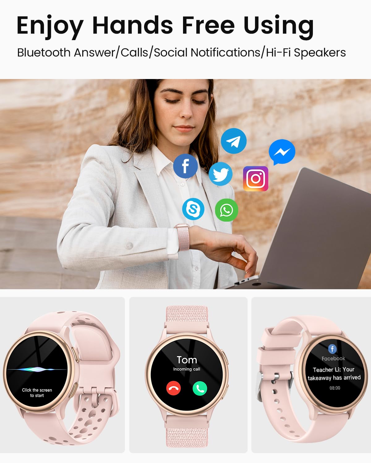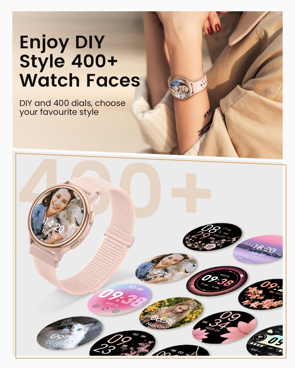 【1.27" AMOLED Screen & 400+ Watch Faces】Enjoy a vibrant visual experience with the 1.27-inch AMOLED display. Choose from 400+ watch faces or customize your own with personal photos.Watches for women and men combines functionality with fashion, adapting to any style or occasion.