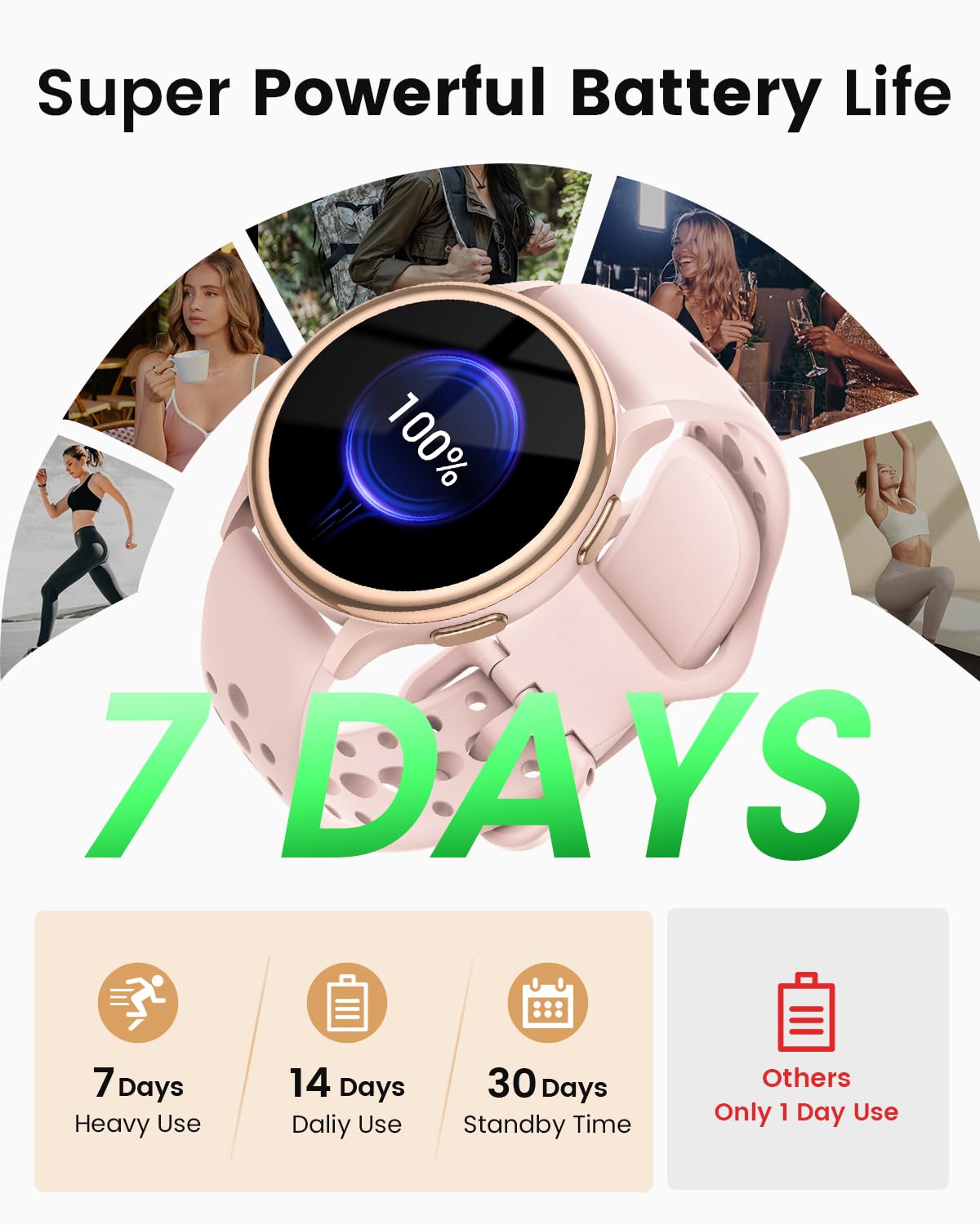 【24/7 Health Monitoring】Smart watches for women track your heart rate, blood oxygen levels (SpO2), and sleep quality automatically with this health smart watch. Analyze your sleep stages (deep, light, REM) and receive insights to improve rest quality. Watches for women men help you stay informed about your body’s condition and maintain a healthier lifestyle.