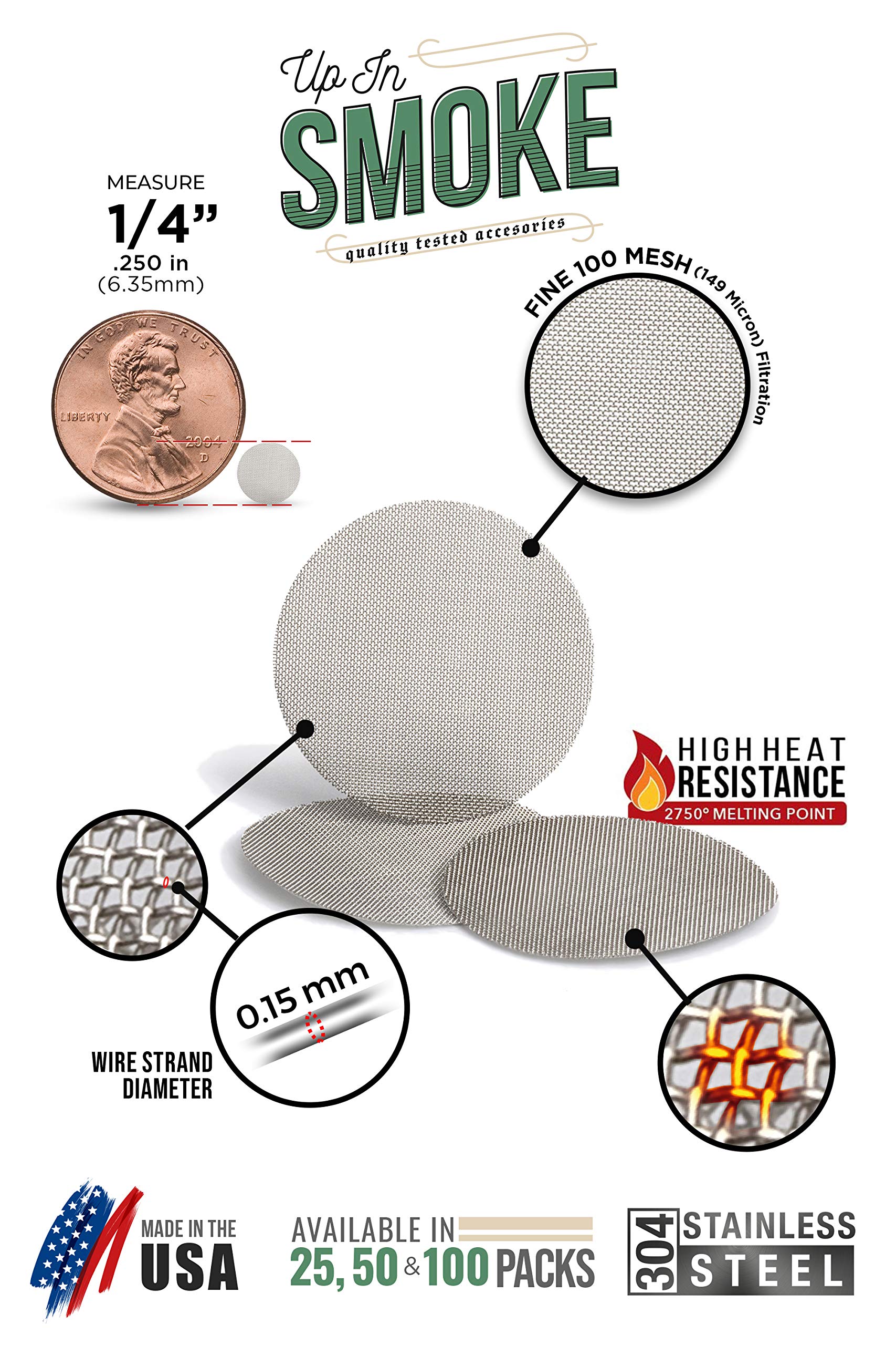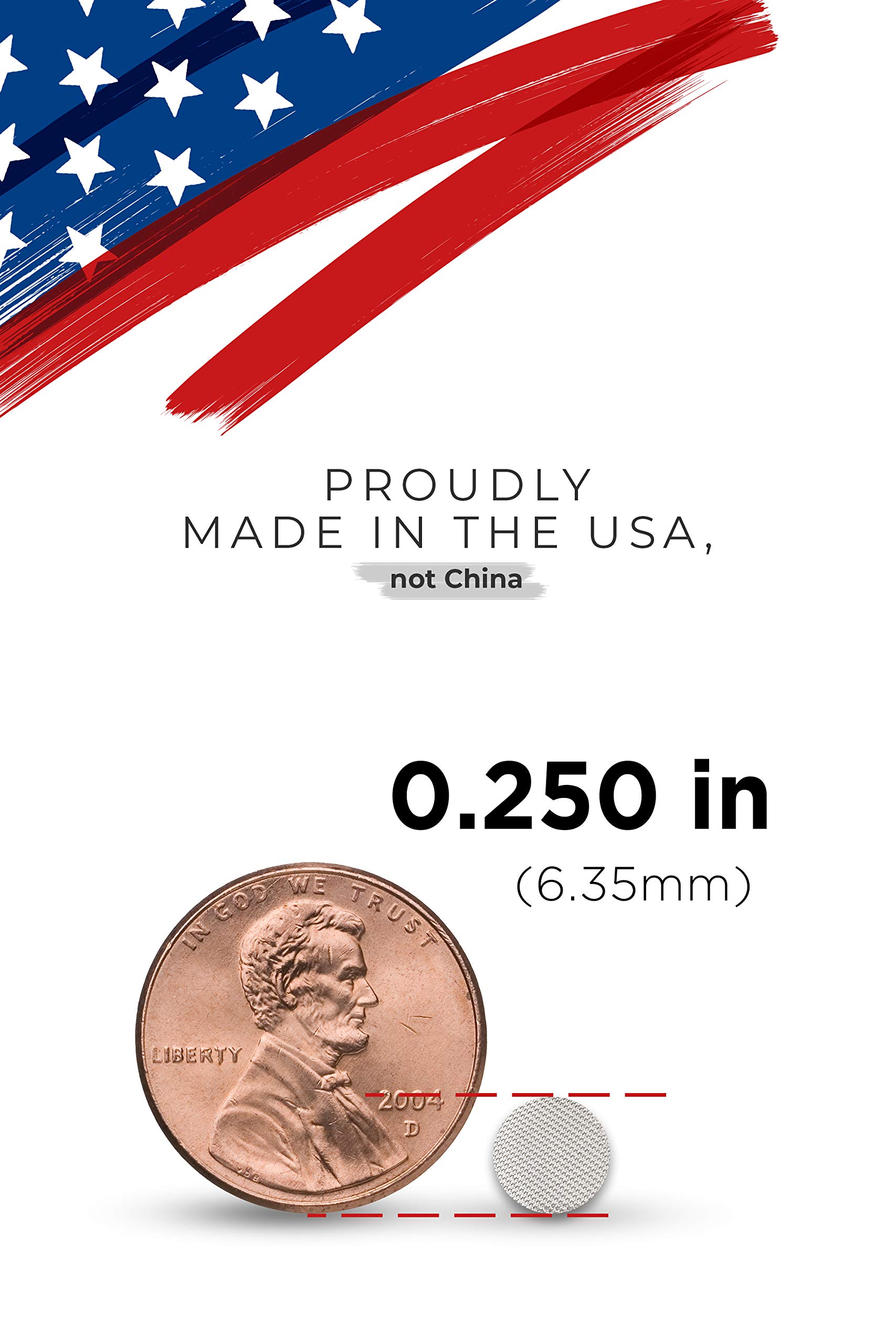 πΊπΈ 100+ Pipe Screens per Pack - Size 1/4 inch ( .25 " | 6.35 mm ) Proudly Made in the USA - 304 Stainless Steel Wire Mesh Filters ( 60 Mesh - 250 Micron - 0.15 mm Wire )