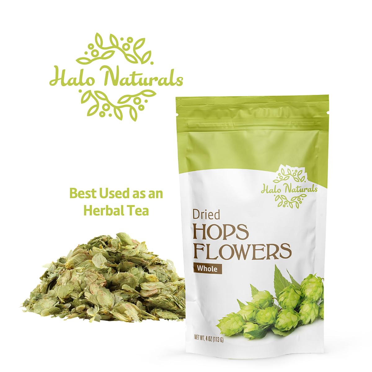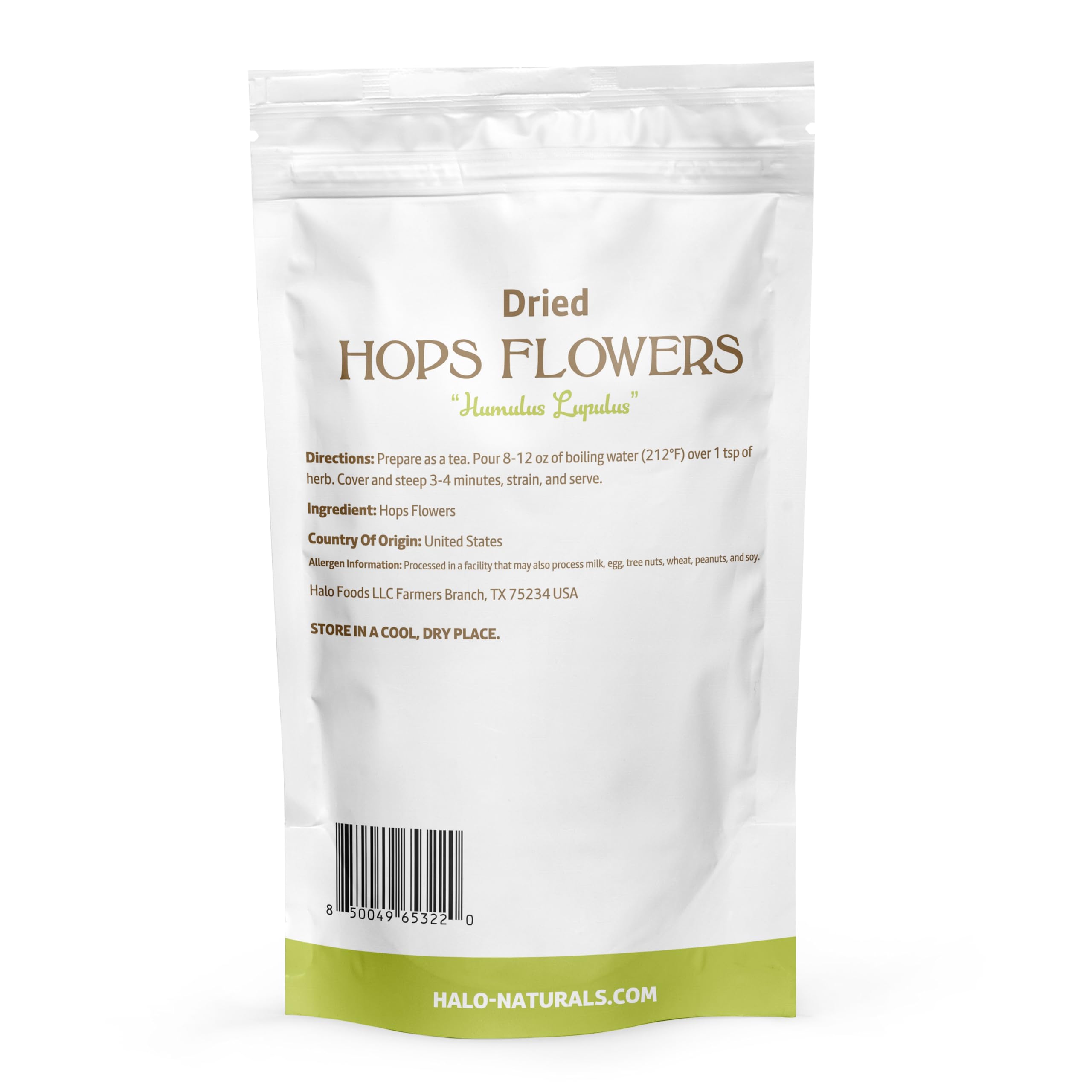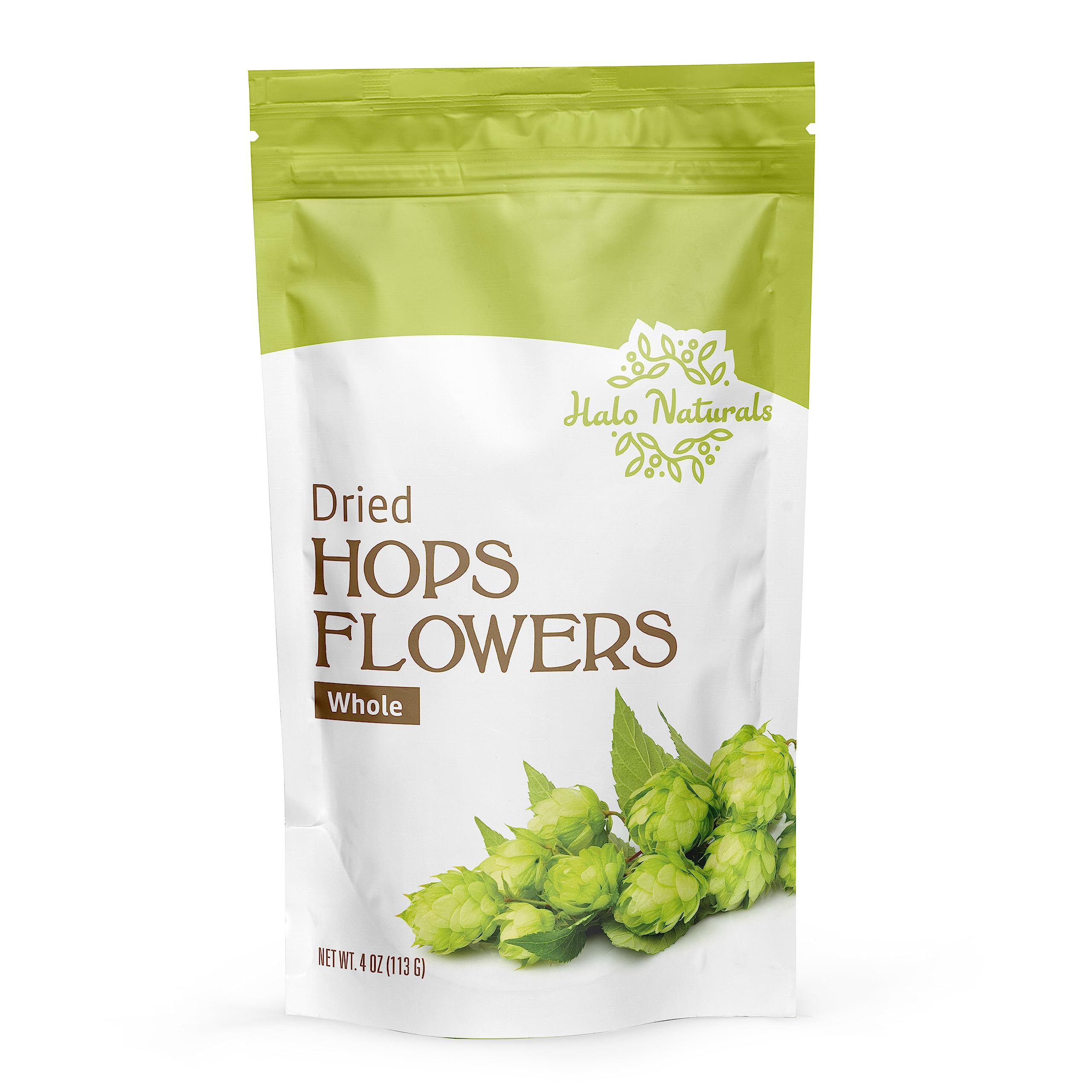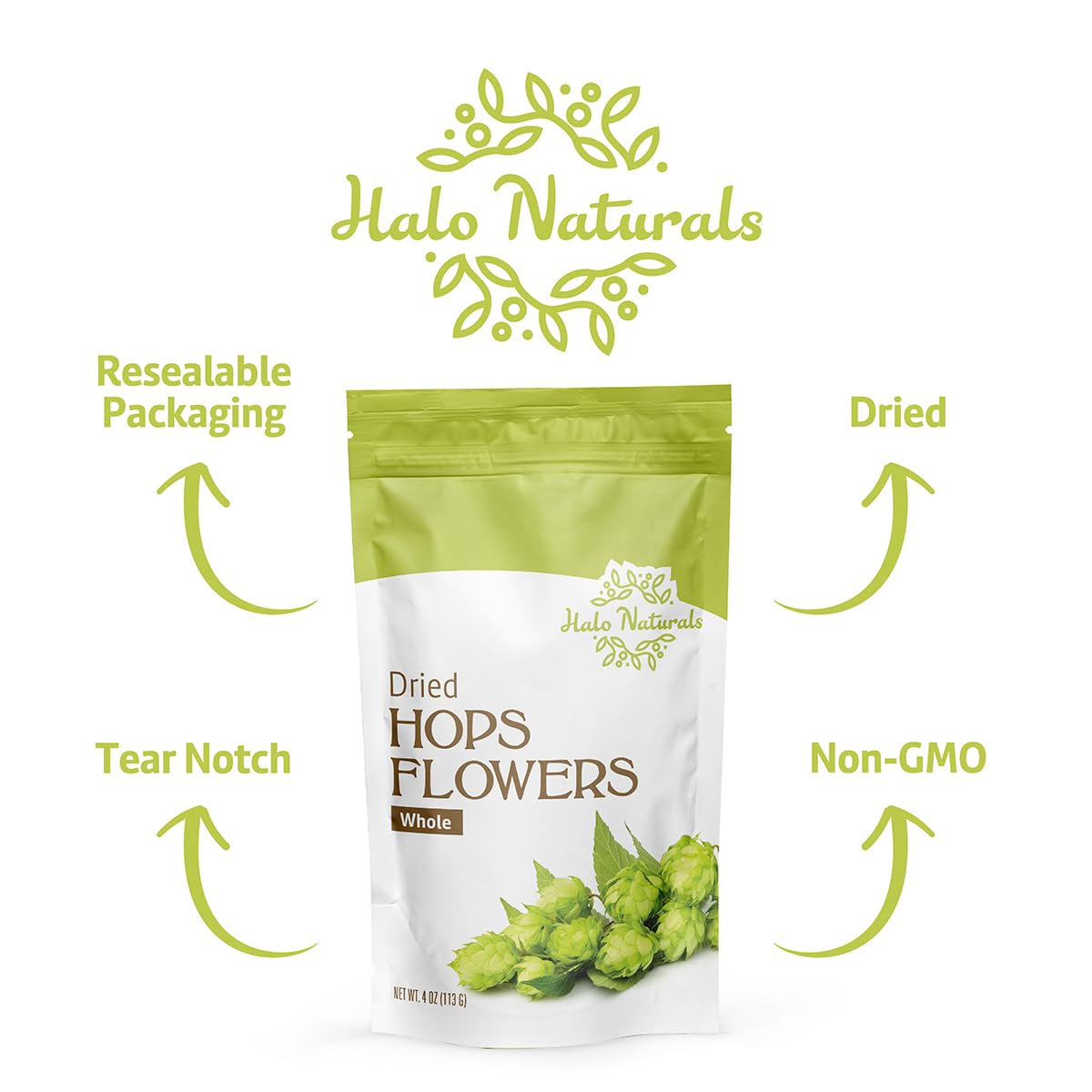 Halo Naturals Hops Flowers Whole (Humulus lupulus) Resealable Pouch| Packaged in The USA