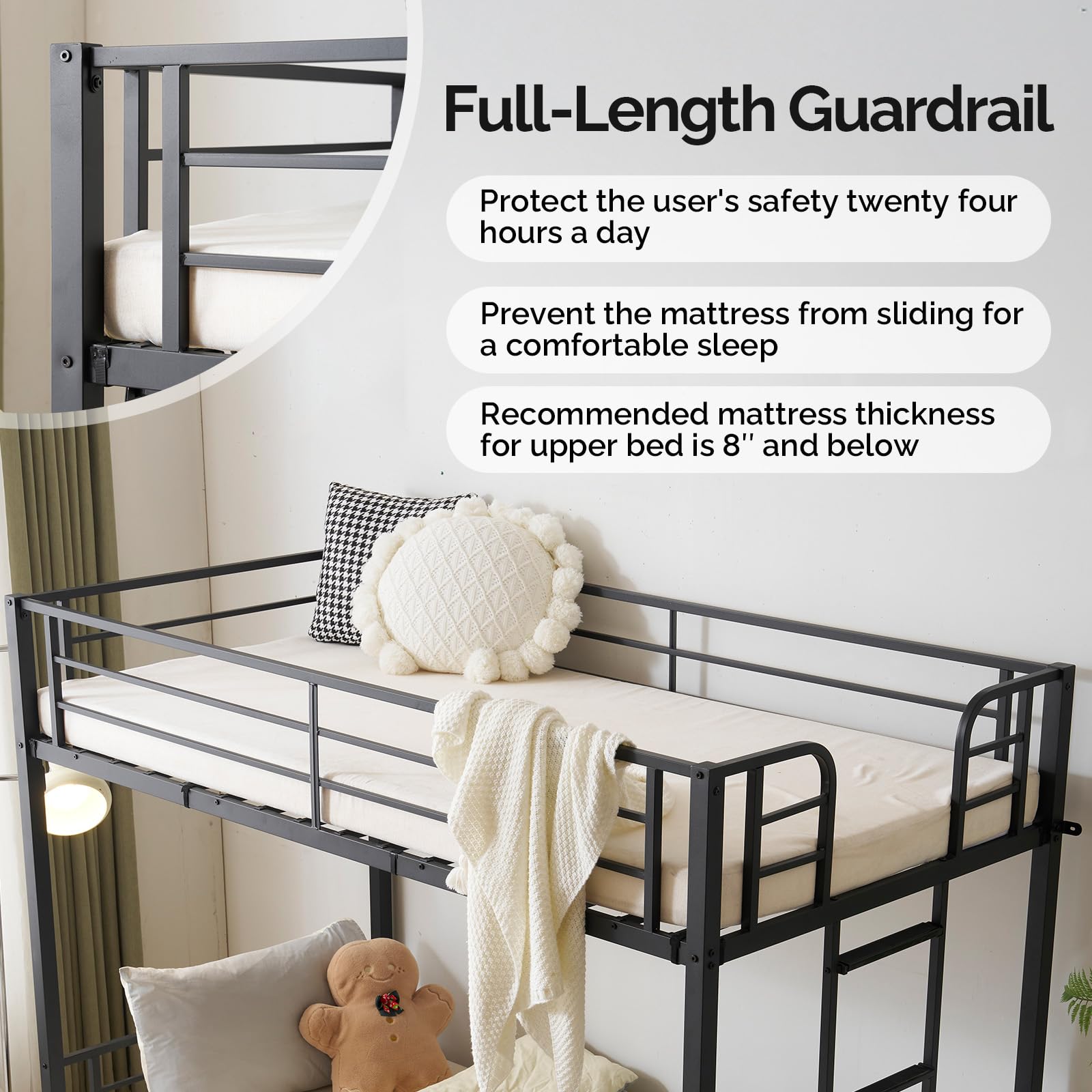 【DIMENSIONS & EASY INSTALLATION】:Twin size 78.0" L X 41.3" W X 63.2" H. Slat installation with a snap-on design for convenience. Along with the twin bunk bed, you will receive detailed instructions and all the necessary installation tools, ensuring that you can set up your bed with ease.